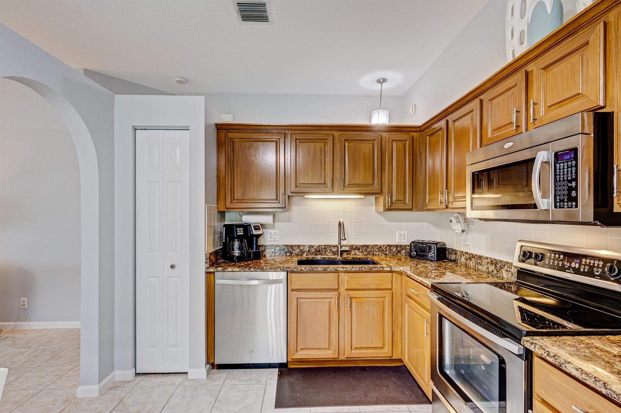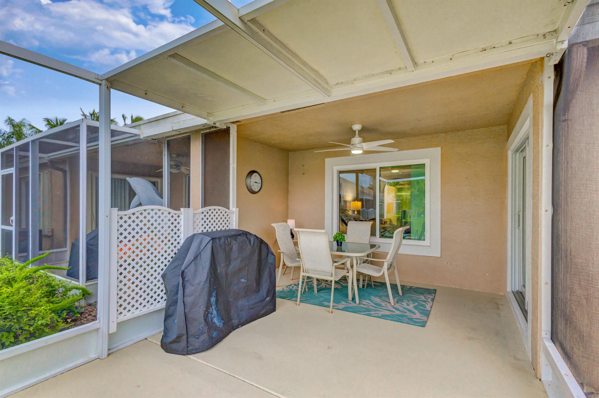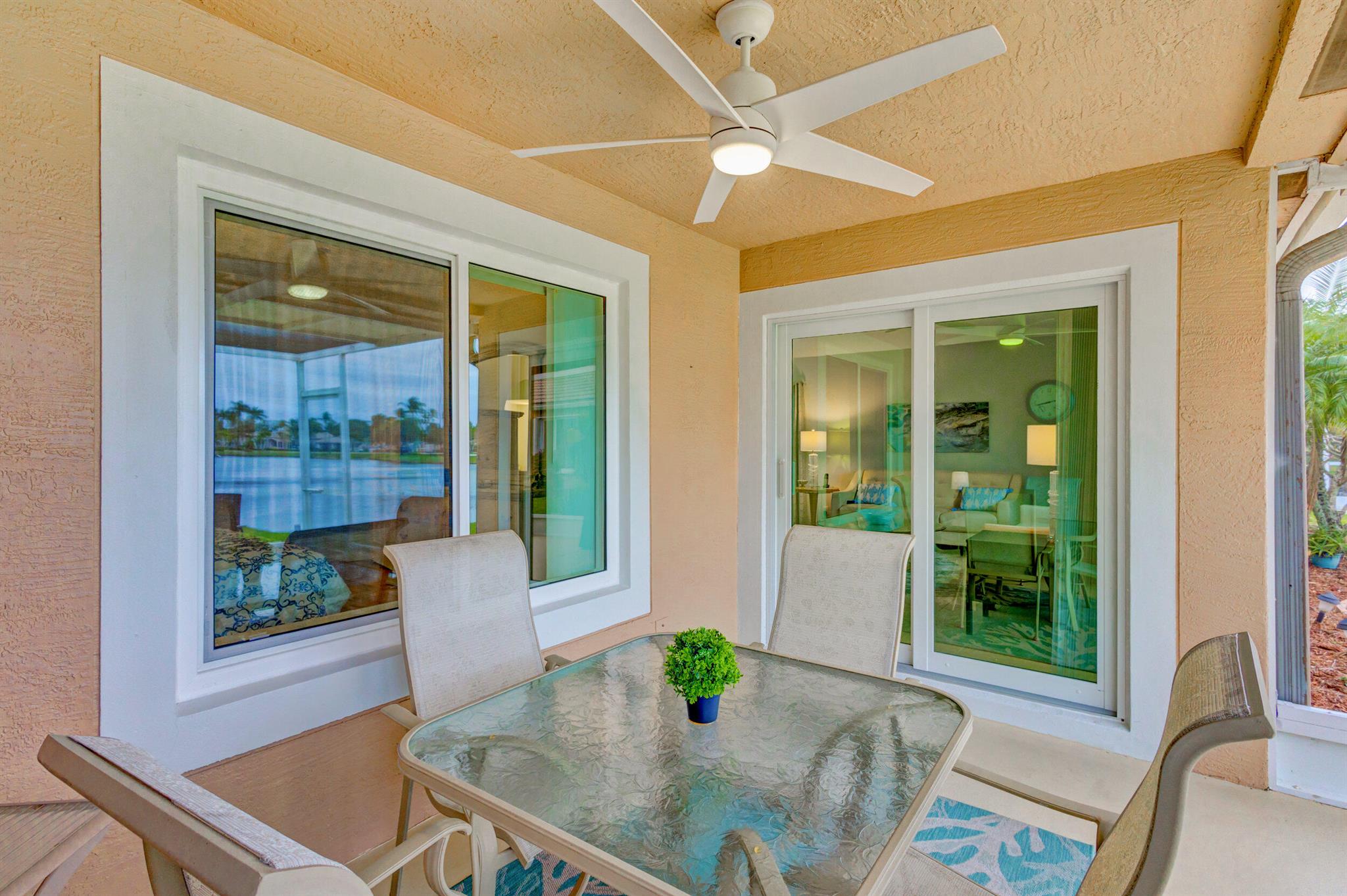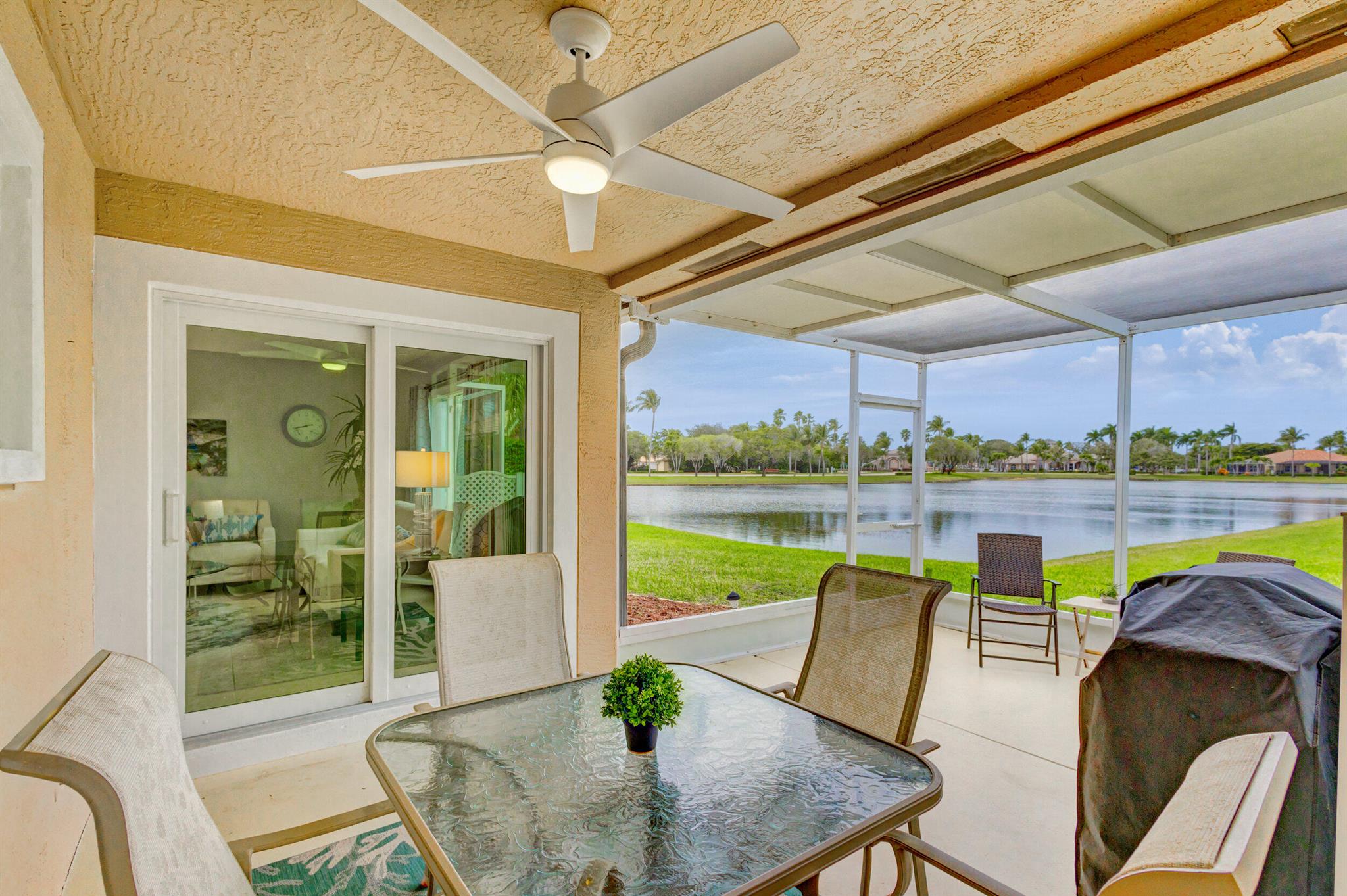 Rare, Pristine 3/2/2 Villa in Ultra Convenient Andros Isle. Pride of Ownership abounds. Fussy Buyers welcome! Hurricane Impact windows. Updated Kitchen (Granite, SS Appliances +), Extended Covered and Screened Patio. Long water views. North exposure for patio, MBR and Great Room means protection from afternoon sun, less stress on A/C. No carpeting. Customized PC Work Station off MBR. Was a little used snowbird residence for lifetime of unit. HOA includes lawncare, tree, shrubbery trimming, irrigation from lake, exterior painting, regular roof pressure cleaning, Basic CATV, WiFi, Broadband, 24/7 staffed gate, monitored home security, award winning clubhouse w huge heated pool, large fitness center., sauna, tennis, bocce and pickleball. Playground at clubhouse.