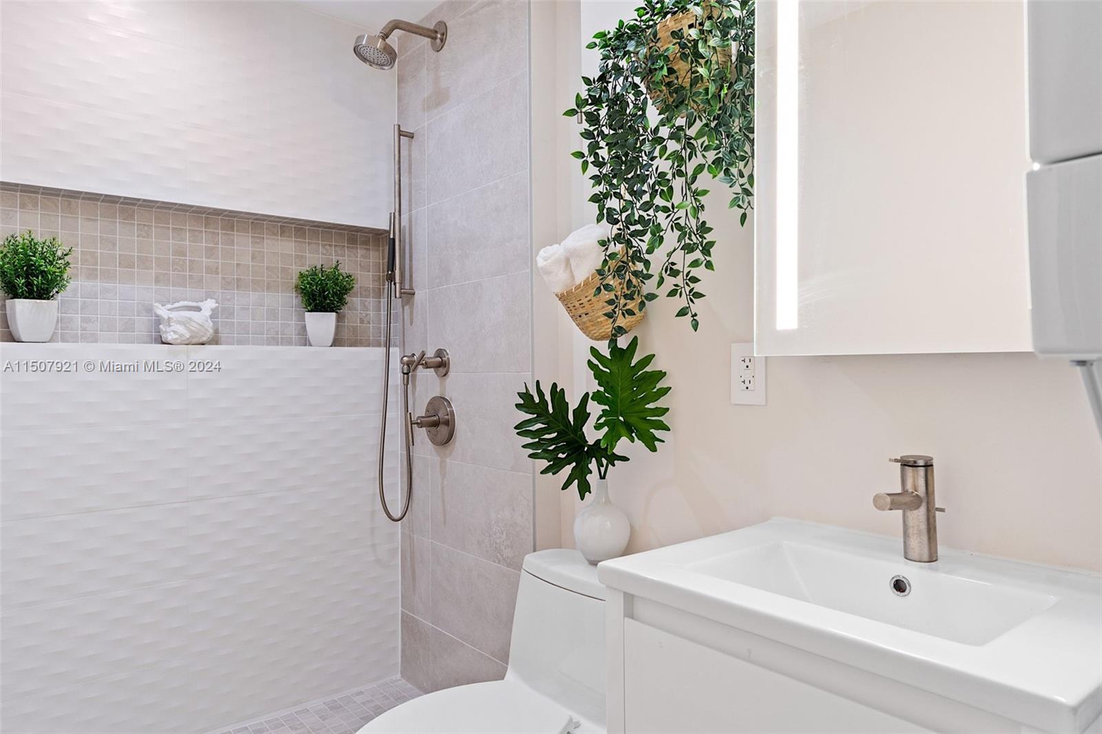 Fabulous location in the heart of SoBe. Imagine a stunning light filled renovated turn key apt nestled in a lush landscaped secure gated garden. Situated on the desirable oak tree lined Meridian Ave at the entrance to the famous Flamingo park & all its sports amenities & sprawling greenery. Mins walk away from the beach, eclectic restaurants, shops & bars. This modern home has been elegantly designed w/ a state of the art kitchen, beautiful bathroom & its own W/D. Intelligent design details incorporate duct less mini HVAC, w/ creative lighting, tall ceilings, fine cabinetry & custom doors. Discerning buyers will appreciate high end Bosch appliances & the quality workmanship all in a romantic setting that brings the best of celebrated art Dêco originality w/modern well appointed luxury.