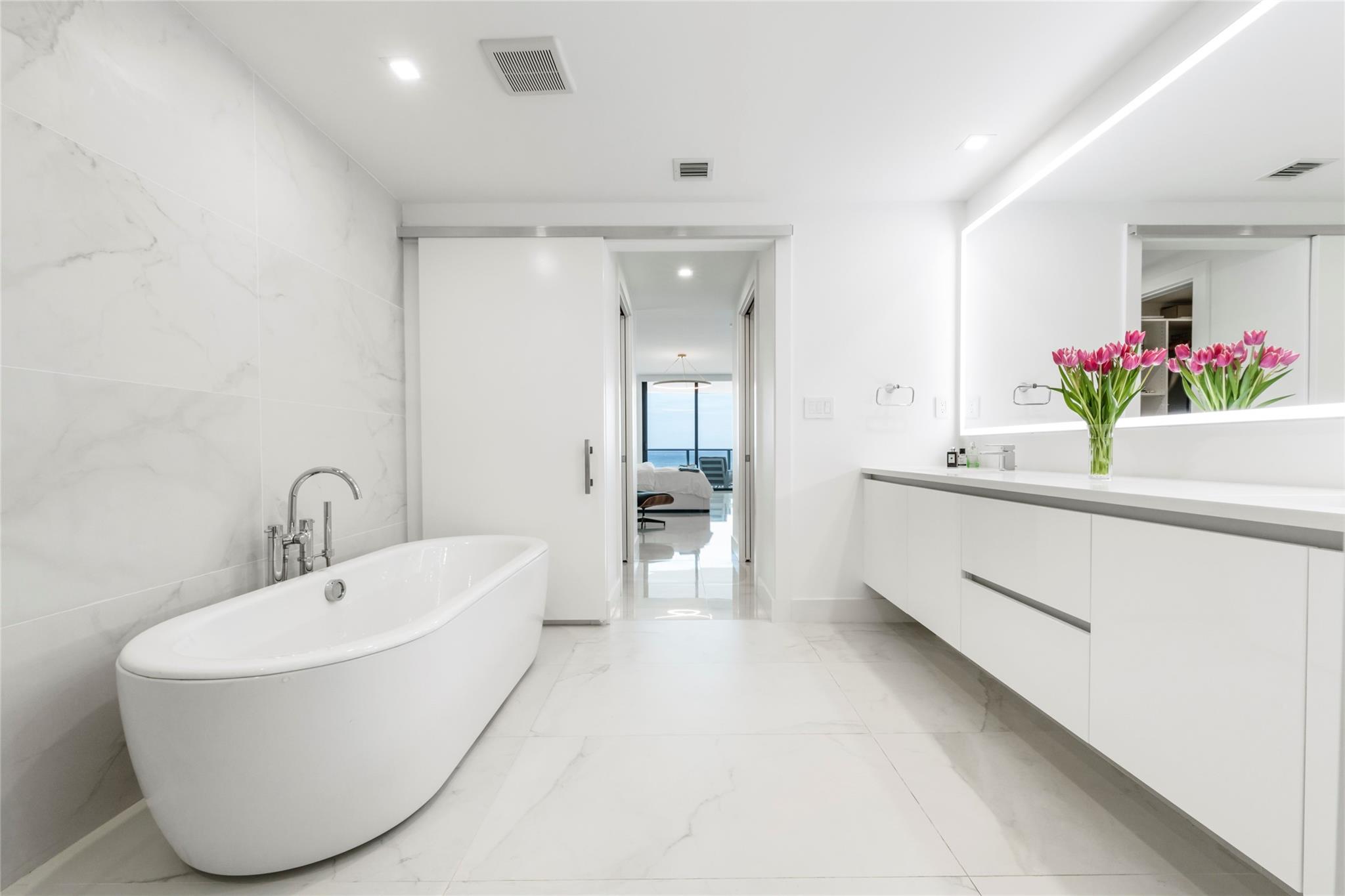 Experience luxury oceanfront living at Sabbia Beach with a private elevator to your stunning 3-bed, 2.5-bath estate. Enjoy gorgeous views from your 440ft balcony & floor to ceiling windows in every room. Upgrades include custom JL walk-in closets, high ceilings, upgraded marble floors, TOTO smart toilet, stand alone tub & custom mirrors. The sleek kitchen boasts Italian cabinets & Miele appliances. Custom smart control blinds & lightning throughout, custom JL Murphy bed & crystal chandeliers from Restoration Hardware. Luxury 5-star building with state-of-the-art amenities including a fitness center, spa, 24/7 valet, pool with cabanas, and beach service. Excellent location at the heart of Pompano Beach, near nightlife, world-class dining, shopping, airports, & easy access to main roads.