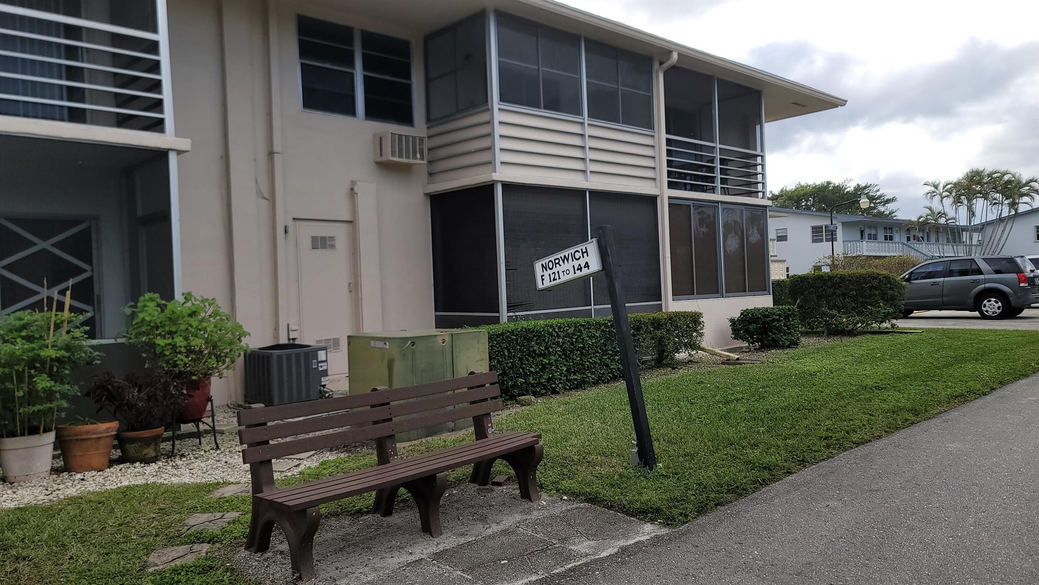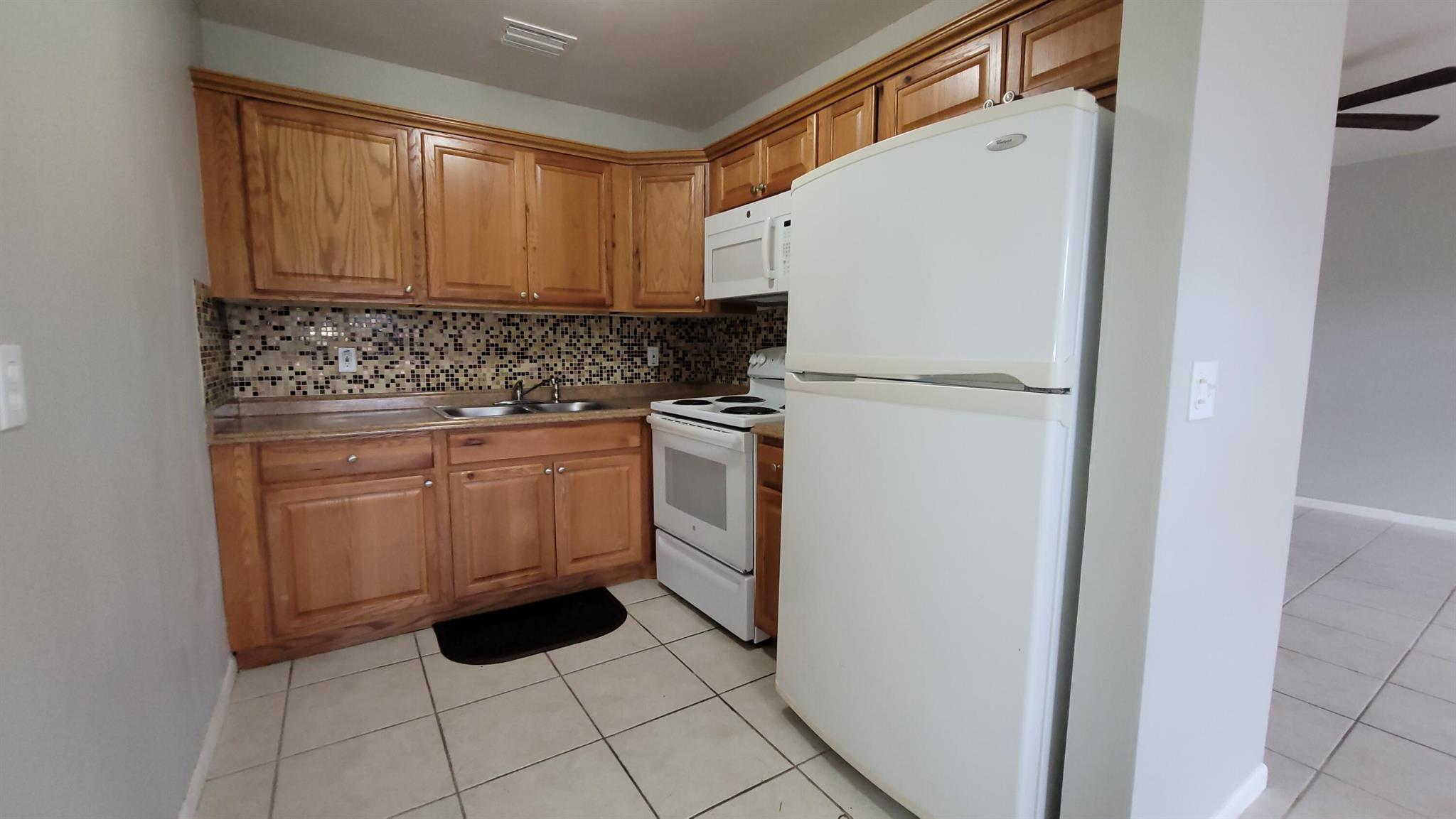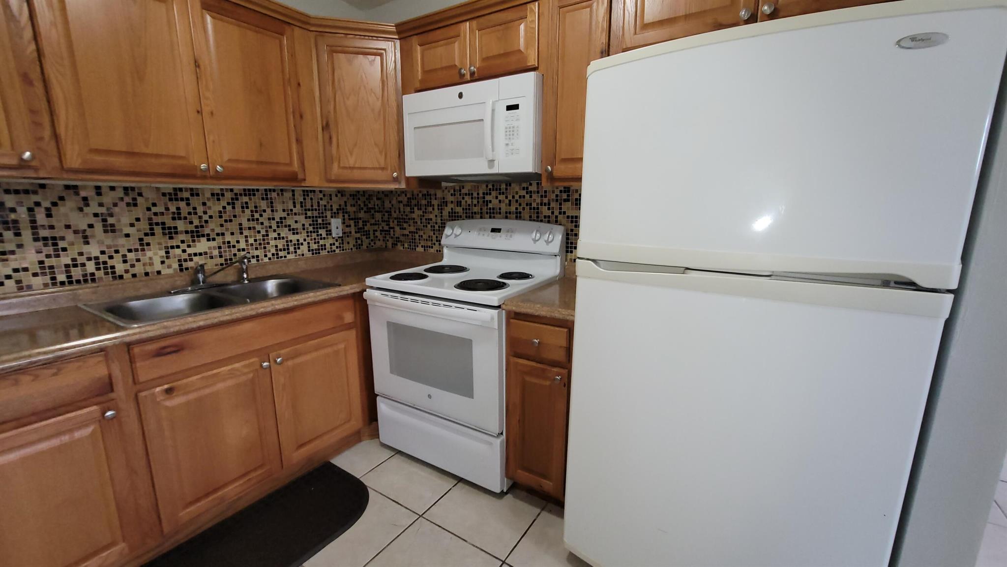 Welcome to the paradise of South Florida, resort-style social living at its absolute best. Enjoy this beautifully renovated second floor, two bedroom, one bath condo located in sunny West Palm Beach Florida, and experience the distinct Century Village ''way of life'' with luxurious recreational facilities and abundant social activities. Renovations include the addition of central air conditioning, tile & wood laminate floors, bathroom ceramic tile and conversion to walk-in shower, kitchen cabinets, backsplash and countertop, and newer appliances, and newer water heater. The building is in excellent shape, recently painted and with non-slip walkways.