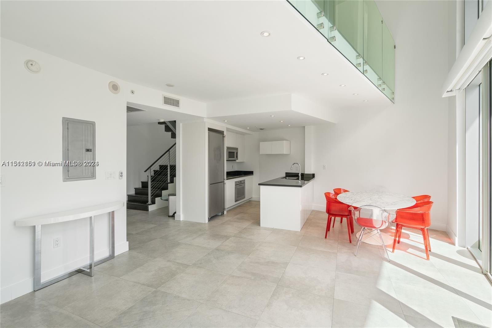 Welcome to luxury living in the heart of Brickell. This 2-story apartment loft offers 2 beds, 3 full baths, built-in closets, washer/dryer, Italian appliances, custom blackouts, and Spacious terrace with River and Brickell City Center views.The kitchen is a chef's dream, featuring top-of-the-line stainless steel appliances, custom cabinetry, and exquisite marble countertops. electric blackouts, built-in closets, washer/dryer, top of the line bathrooms including a state-of-the-art fitness center, a heated swimming pool, and 24-hour concierge service and security. Just steps away from world-class dining, entertainment, and cultural experiences. Heated pool, fitness center, pool table, meditation garden. Steps away from boutiques, a dine-in movie theater, restaurants, and bars
