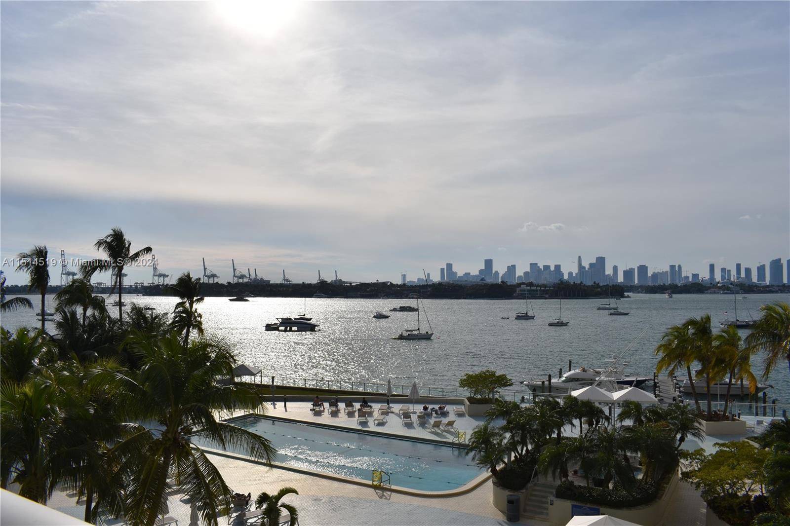 Best studio condo views in Miami Beach! Direct vistas over Biscayne Bay with stunning sunsets and the iconic Miami skyline. Ideal for investor, pied-á-terre, or full-time owner. The spacious layout includes a private balcony overlooking the inviting pool deck. Ample storage with walk-in closet and two additional closets. Situated in a prime South Beach location, this friendly building offers full-service amenities with front desk security, valet, convenience store, swimming pool, hot tub, BBQ area, business center, game room and a large gym with water views. HOA includes internet, cable, water and reserves. Seller will pay current special assessment. Conveniently located within walking distance to grocery stores, restaurants, Lincoln Road, and public transportation. A pleasure to show!