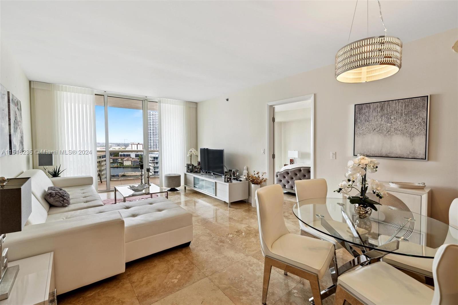 Breathtaking Intracoastal and city views await you from this 1 bed plus den/1 bath, 1,086 Sq. Ft unit with a newly updated kitchen featuring state-of-the-art appliances and elegant finishes. Marble floors throughout. It also includes a walk-in closet and a 195 Sq. Ft. balcony. Located directly on the ocean, the building offers a 40,000 sq. ft. full-service spa & fitness center, restaurant, bar with pool service, 24 hr. valet parking, and security. "NED Air Conditioner was just install"