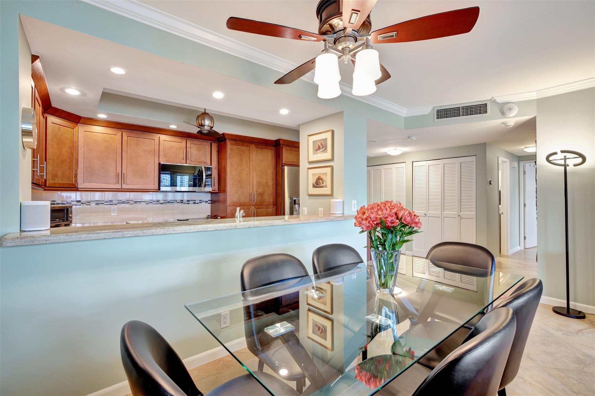 Move IN READY. This significantly remodeled 2 bedroom beauty offers sweeping views of the ocean, pool and 5 surrounding acres. Immerse yourself in the serenity of the sea and the allure of a crystal-clear pool from the comfort of your own living space. Entertaining is more fun with this Chef's kitchen featuring all LG appliances, granite counter tops, soft close wood cabinetry and a snack counter. The bedrooms are equipped with California closets, ensuring both style and organization. Indulge in the convenience of a huge walk-in closet, providing ample storage space for your wardrobe. Building is A+ insurance rated, physically and financially sound, all work completed and paid for. Internet & cable included in maintenance. 55+ community, cash only, no renting.