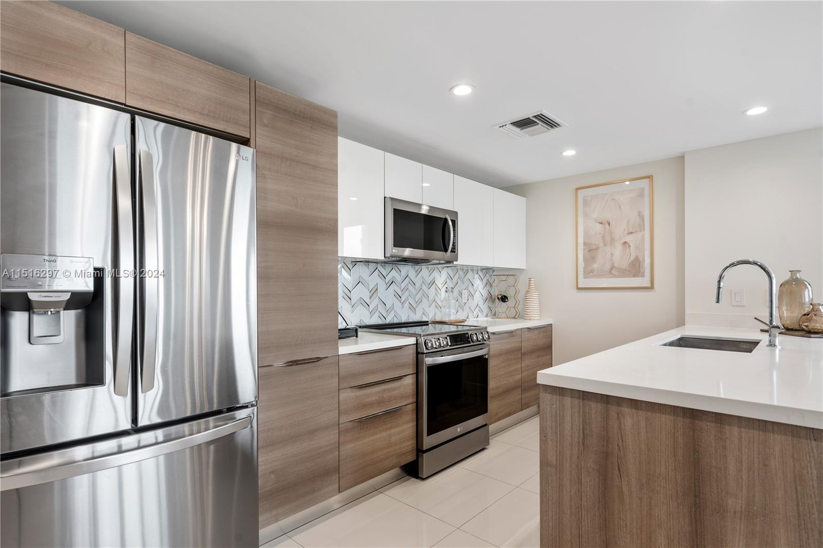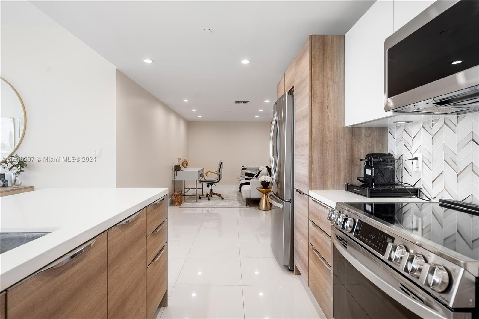 Life at Kai At Bay Harbor is truly year round vacation living! From the moment you step into this designer upgraded unit you are greeted by abundant natural sunlight that fills every corner of the condo. This spacious 1,330 sf apt features 2beds, 2full baths and a den/office space that can easily be converted to a 3rd bedroom. The open style kitchen showcases a beautiful tile backsplash and brand new LG appliances. The smart layout lends itself to comfortable & separate dining and living areas. Step onto the terrace to breathe in the expansive water and city views. Bldg amenities include: fitness center, rooftop deck with magnificent infinity edge pool, hot tub, lounge and bbq area, 24 hr front desk & concierge. Conveniently located near shops, restaurants, Bal Harbor Shops & the beach.