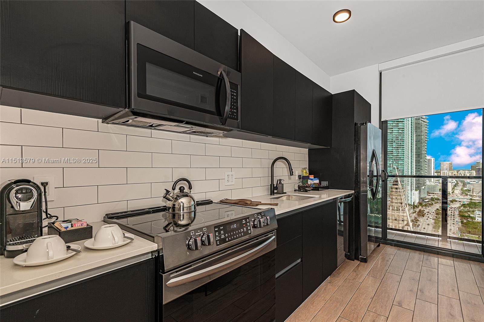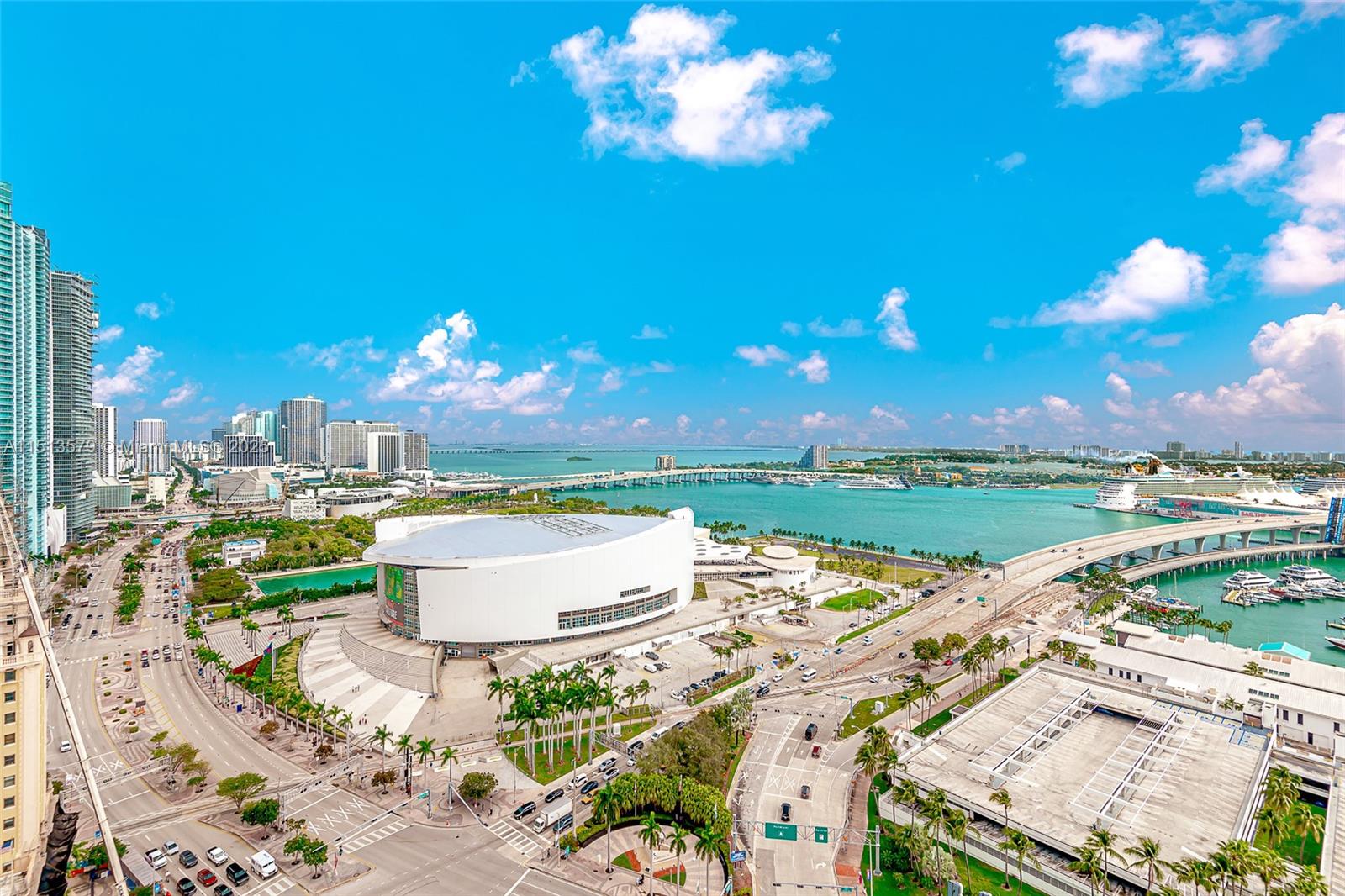 Daily Rentals Accepted! if you are looking for an an income producing property or looking to live at a residence with the best views of Miami, this spectacular condo offers both an income-generating opportunity and a luxurious living experience. Completely furnished with sophisticated designs, created for exceptional vibrant living. Full Kitchen, King size bed, pull out couch for extra room, washer and dryer inside the unit, huge flat screen TV, and all essentials included. It has amazing views of Biscayne Bay and Downtown Miami. Conveniently located within walking distance to key attractions like Kaseya Center, Bayside Market Place, the new Miami World Center, and the Brightline Train station. Don't miss the chance to own this brand new luxury condo with million-dollar views!