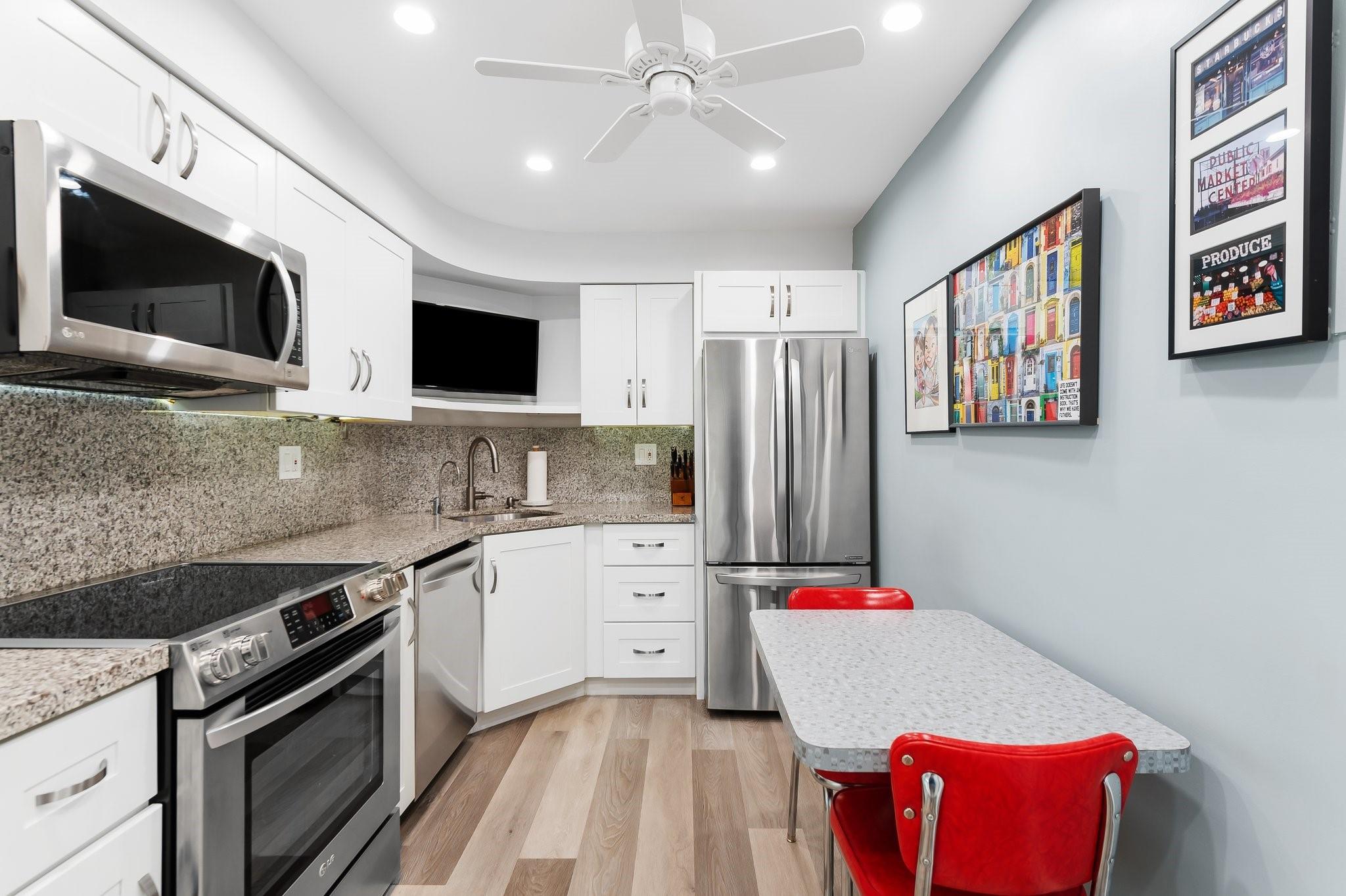 BEAUTIFUL CORNER UNIT. 2 BED 2 BATH. Great place, Fabulous building, Incredible views! Watch the boats go by on the IntraCoastal and see the sun come up over the ocean. The best of both worlds PLUS a great view over the pool. This spacious kitchen is pleasing to be in with granite counter tops and soft close cabinetry. Tons of storage PLUS room for bistro seating. Dining/Living room combo. King size beds fit in both bedrooms plus extra sitting areas. Bathrooms are modern. Building is A+ insurance rated, physically and financially sound, all work completed and paid for. Internet & cable included in maintenance. 55+ community, cash only, no renting.
