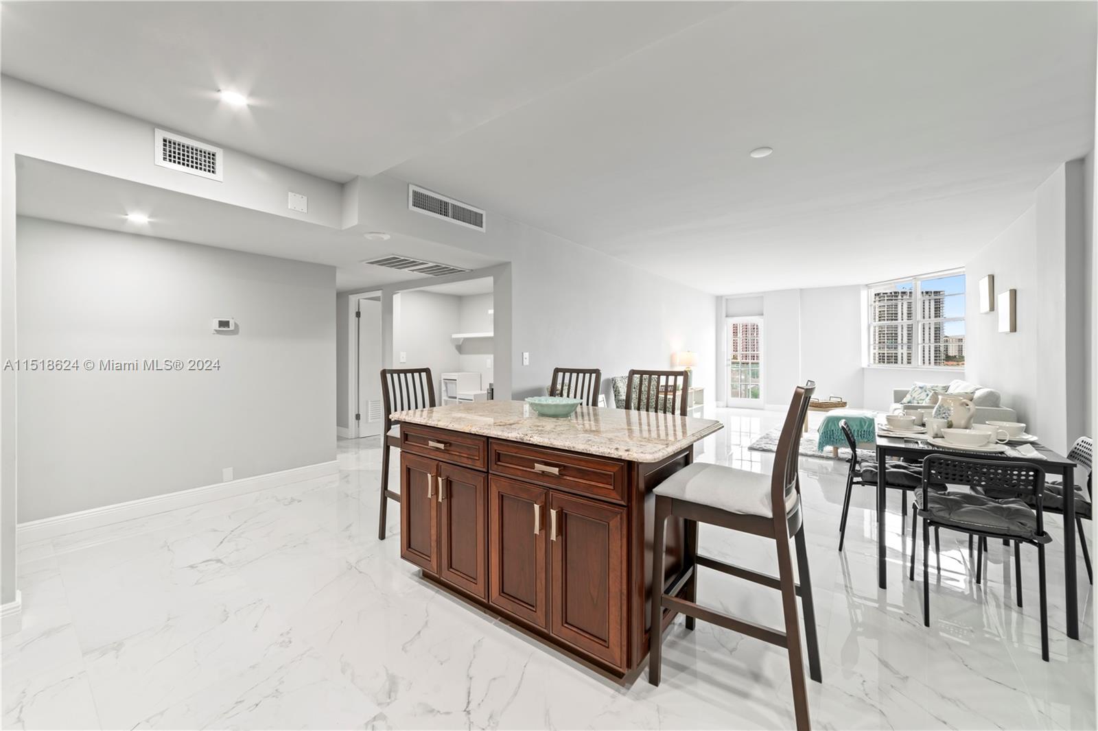 Explore the most affordable 2-bedroom gem in the building, spanning 1,526 sq ft! Perfect as a second home or investment property with permitted vacation rentals. This furnished corner unit boasts 2 beds, 2 baths, and over 1500 sq ft of upgraded luxury. Recently renovated, it features stylish porcelain floors, a modern kitchen with granite countertops, and stainless steel appliances. Delight in the privacy of your balcony, offering stunning views of both the ocean and the bay. Located in a rental-friendly building with amenities like a gym, pool, convenience store, cafeteria, and tennis courts. Airbnb-approved, this property allows for seasonal, daily, or short-term rentals, providing an opportunity to live near the beach with access to excellent amenities.