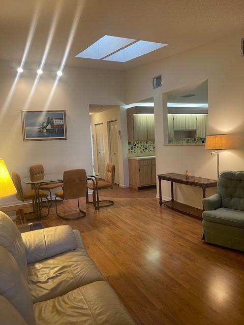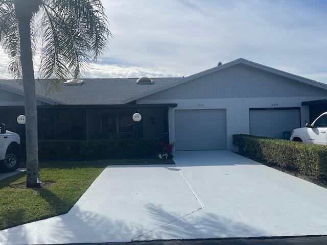 Golf community, with a 2 bed, 2 bath spacious villa with a 1 car garage and washer and dryer in in the unit. Bright and light with a sky light in the living room. New Roof on 2021. Enjoy your screened porch and take in the garden views. Feel safe with the hurricane shutters which only take a few minutes to secure. Make the best of all the resort amenities (3, 18 hole) golf courses, tennis and many more amenities.. Centrally located to everything including the Turnpike, I-95 and the airport. This is a 55+ community.