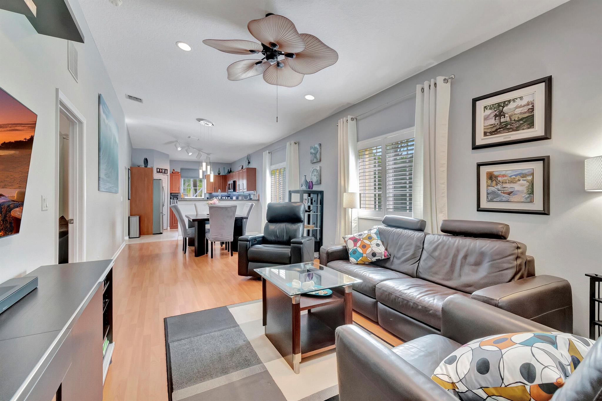 Stunning Lake Views From Extended Screened Lanai, Great Room, Kitchen & MBR in this Amazing Rare Upgraded 3BR 2BA End Unit Villa - Baywinds is a Prestigious 55+ Active Adult Pet-Friendly Resort Style Community. Open Plan, 100% Carpet Free. Elegant Neutral Decor, Spacious, Light & Bright. Large Kitchen w Pantry, Newer SS Appl, Wide, Deep SS Sink, Breakfast Bar. Large En-Suite Primary w walk-In & Xtra Closet. Upgrades in Primary BA, Sep Vanity Area & Pvt Stall Shower & Loo. 2 Guest BR's, Upgrades in Guest BA. Vaulted Ceilings, Ceiling Fans w Lights, Custom Drapes and Window Treatments throughout, Inc. Plantation Shutters. A/C 2022. HWH 2014. Accordion Shutters . Immaculately Maintained Home on Spacious Property, Sumptuous Landscaping. 1-Car Garage w Extra Storage, Attic.