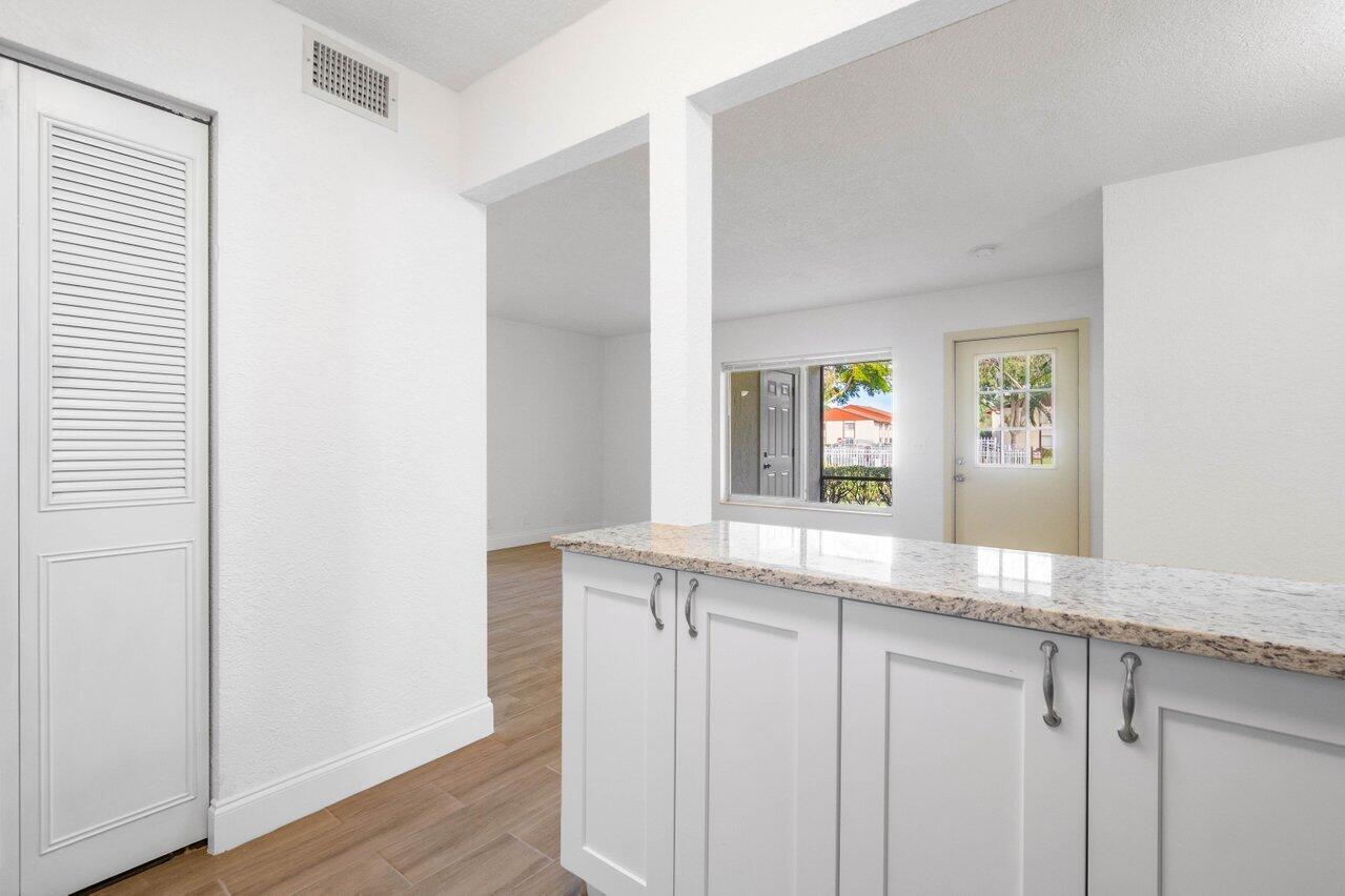 Adorable two bedroom 1 bath FIRST FLOOR condo that has been beautifully updated with a new white kitchen, granite counter tops and stainless steel appliances. The bathroom also has a new vanity, tile and fixtures. New flooring throughout. Screen patio with attached storage. Convenient location close to I95 and the ballpark. Community amenities include pool, tennus, clubhouse and lake trail. Lease min 3 months - maximum 12 months. One pet up to 25 lbs Min credit score 700