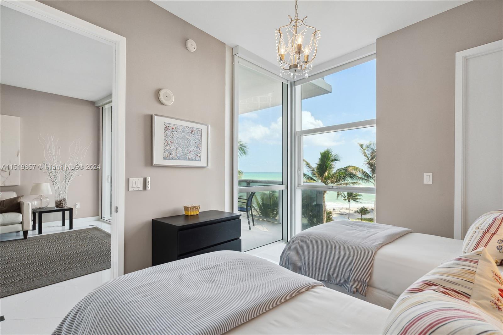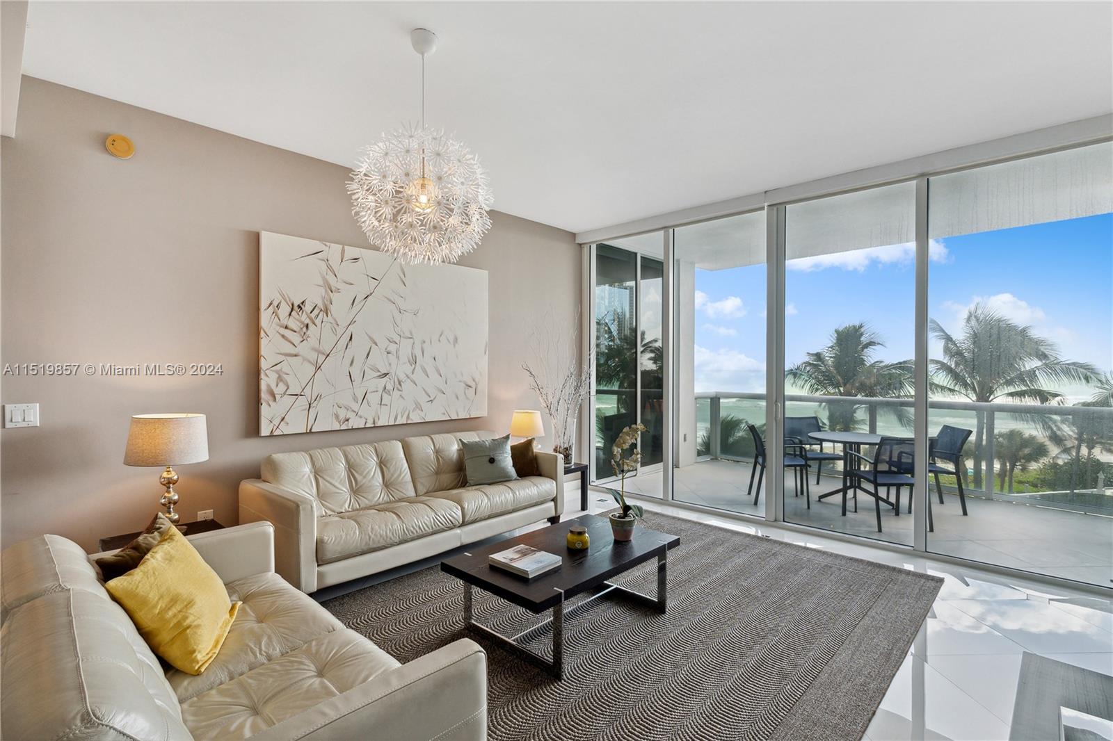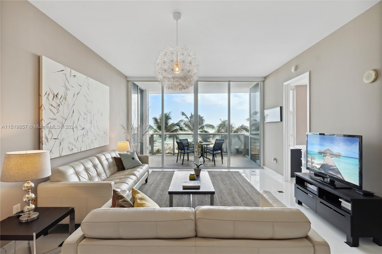 Located in a prime beachfront location and ready to move in, this 2-bedroom, 2.5-bath condo offers pleasant tropical views of the beach and pool. The residence is fully furnished with everything you need, exquisitely decorated with marble floors throughout, and an open kitchen featuring marble counters and appliances by Sub Zero, Miele, and Gaggenau. The building offers an array of first-class amenities, including food and beverage service, room service, beach chairs, towels, and umbrellas. Three pools, tennis courts, a spa, fitness facilities, four on-site restaurants, a salon, a dog park, and play areas for kids. You'll have endless dining options, cafes, and shops just a short walk away. Don't miss the opportunity to experience resort-style living at its finest.