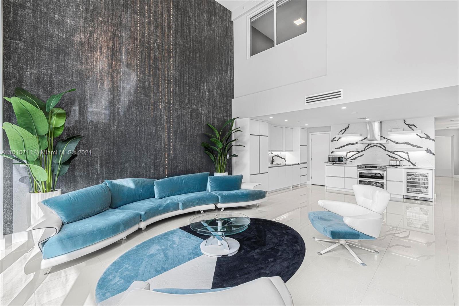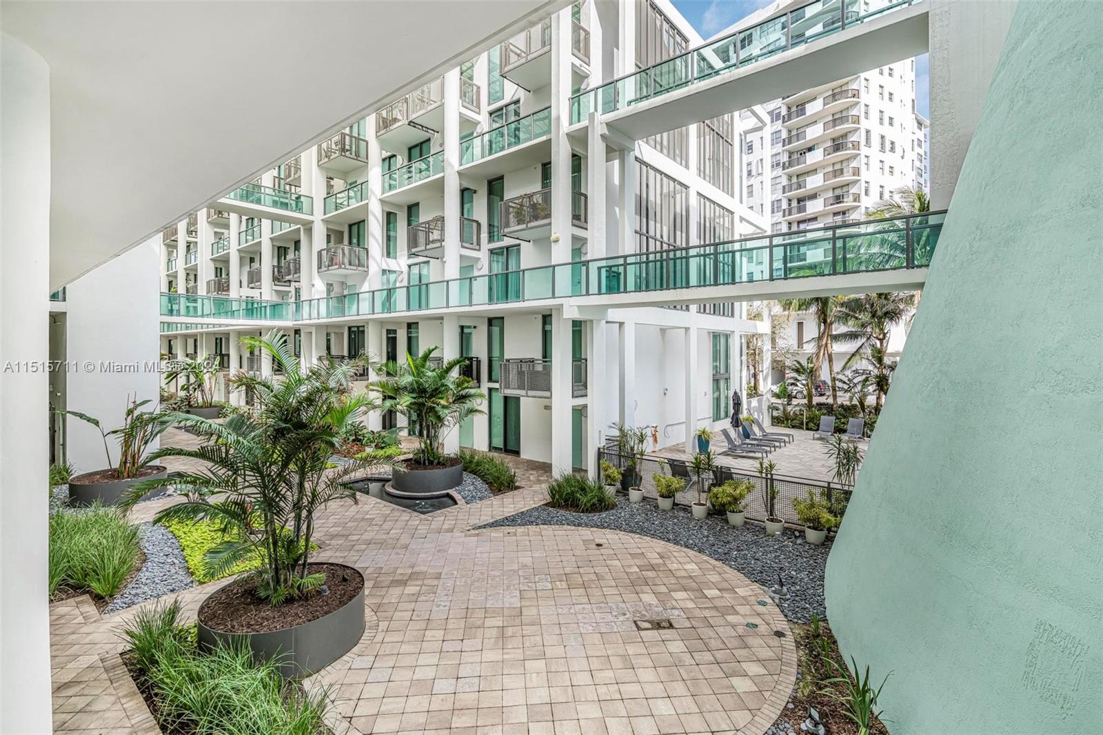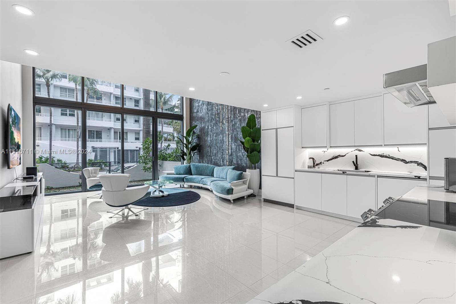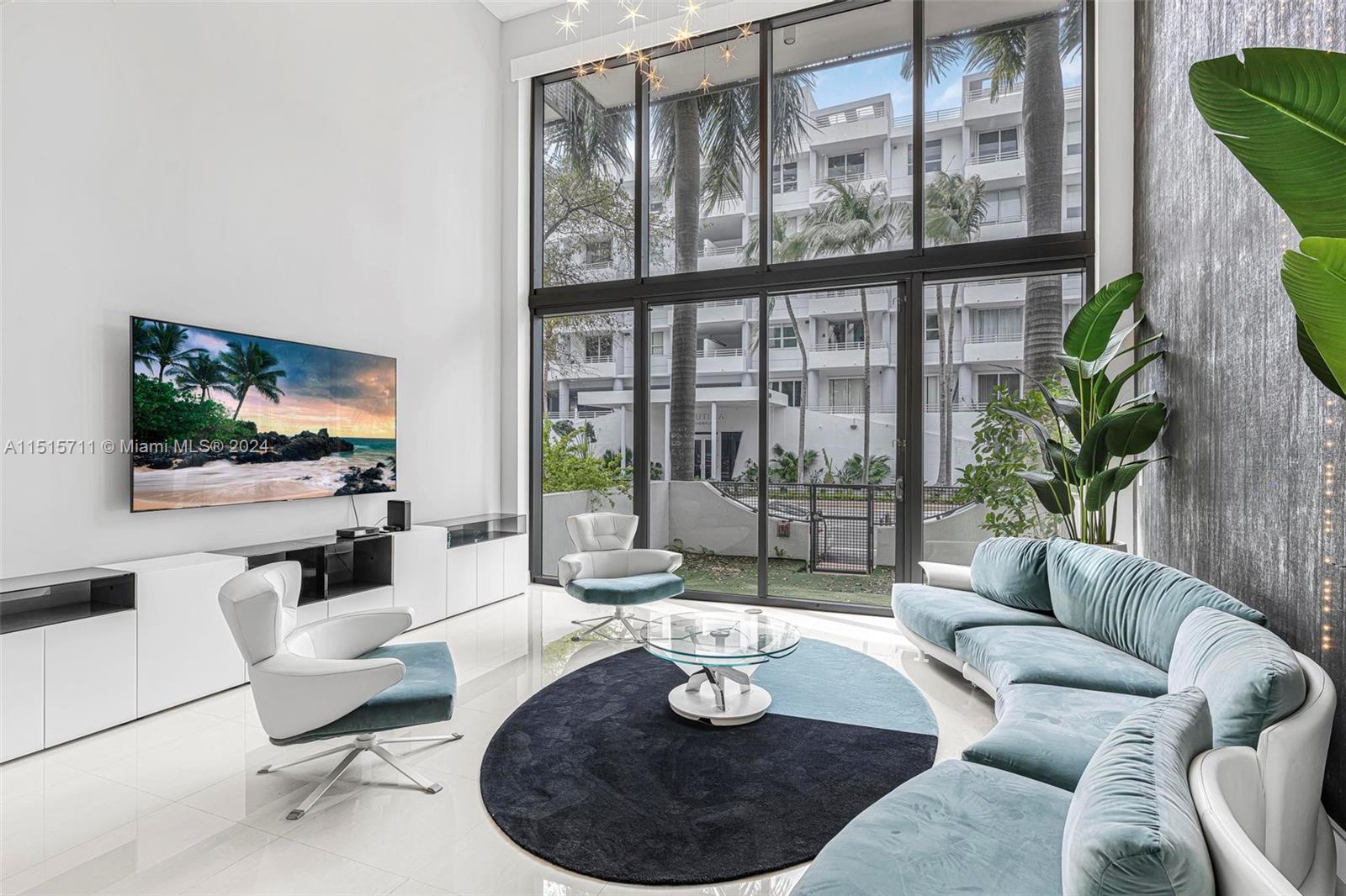 Captivating 2-story loft with thoughtfully designed interiors including Swarovski custom wallpaper from London adorned with over 100 crystals and LED lights, a Crystal Chandelier imported from Italy and illuminated hallways. First floor residence with an outdoor garden accessible directly from the living room leading out to the street and floor-to-ceiling hurricane impact windows complete with electric shades and a custom-designed kitchen. Living space and a guest suite conveniently located on the lower level, while the upper level houses the primary suite and enclosed den, perfect for a home office or third bedroom. Terra Beachside amenities include a swimming pool, fitness center, and lounge.