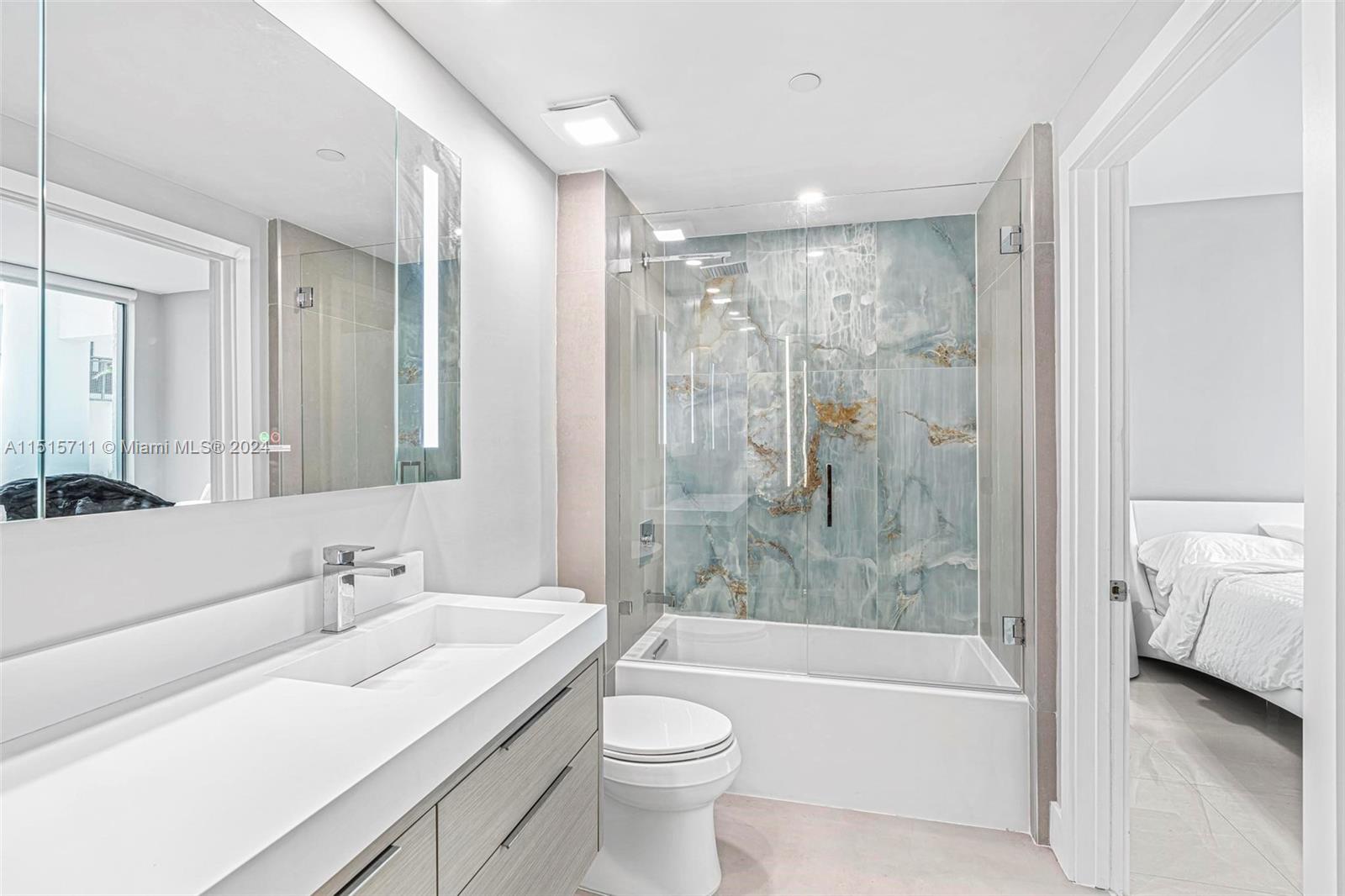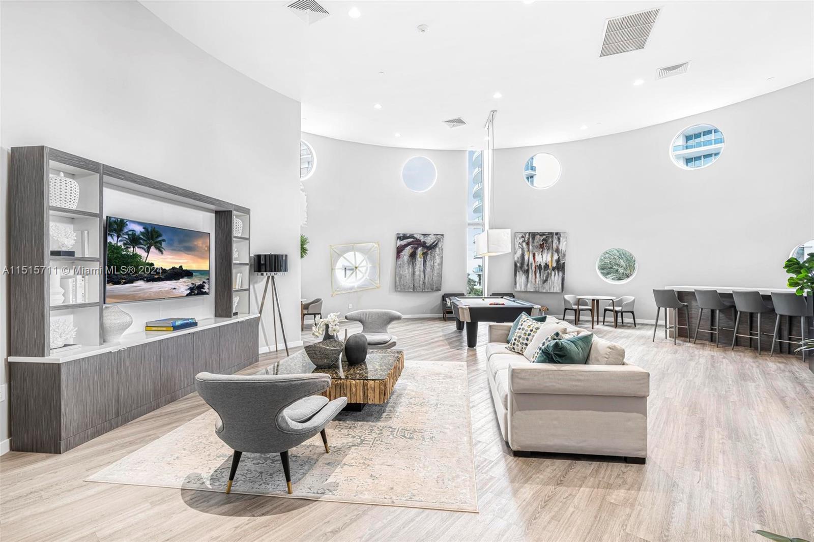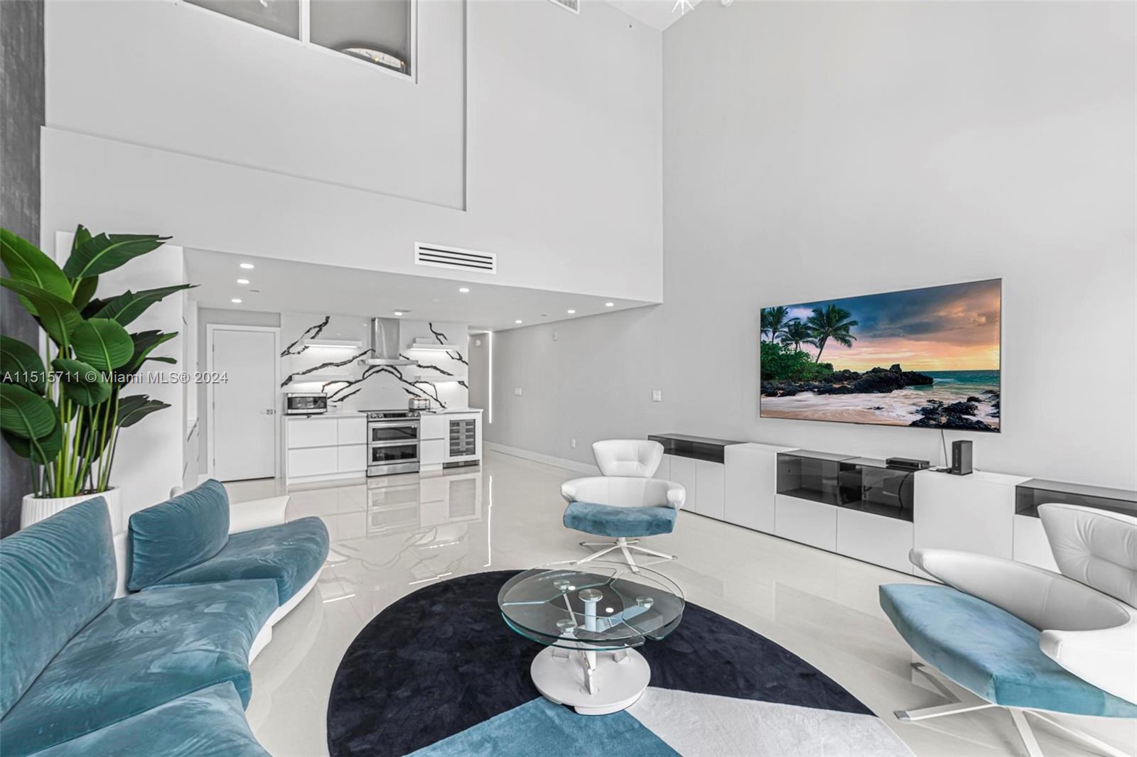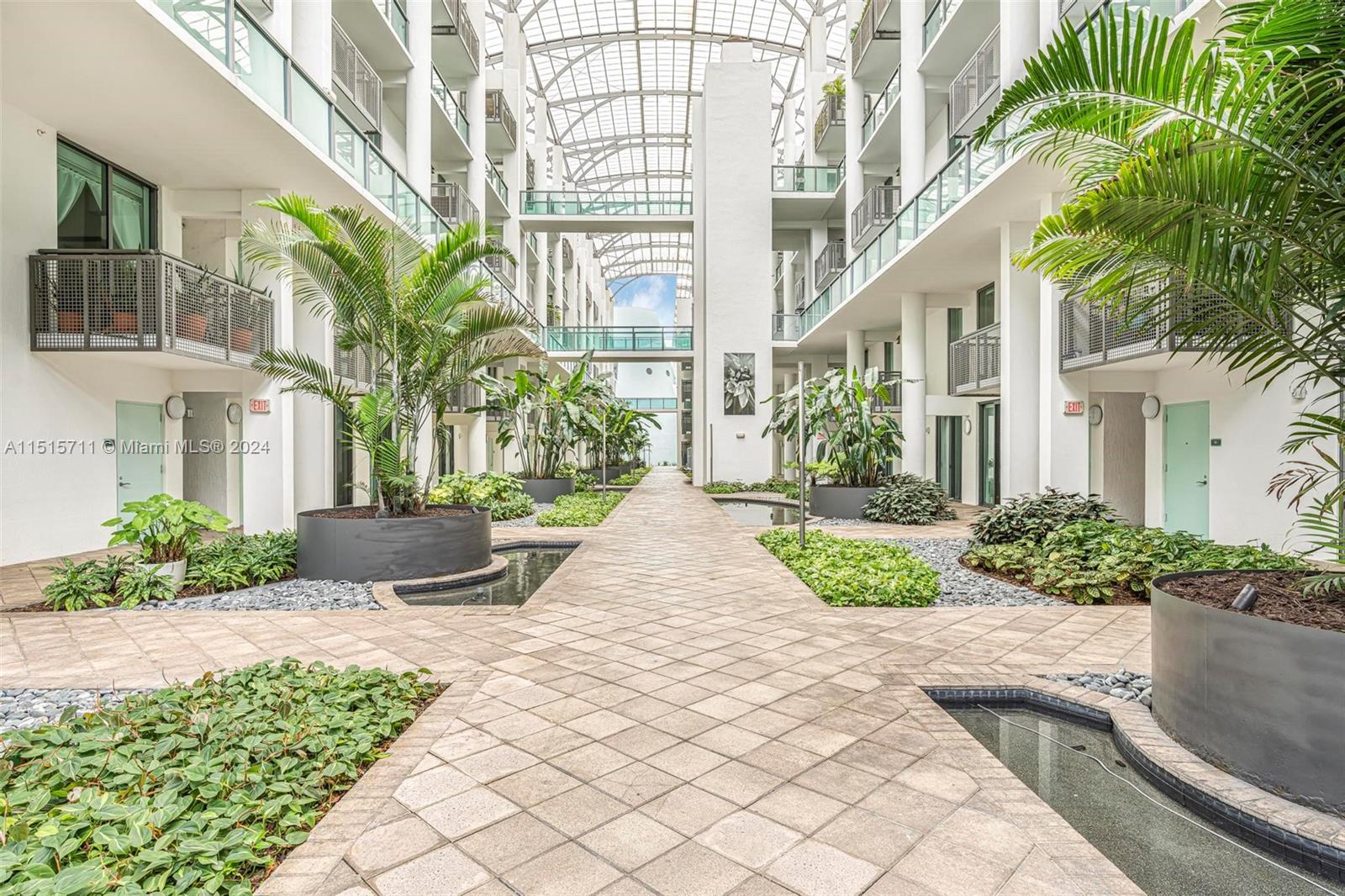 Captivating 2-story loft with thoughtfully designed interiors including Swarovski custom wallpaper from London adorned with over 100 crystals and LED lights, a Crystal Chandelier imported from Italy and illuminated hallways. First floor residence with an outdoor garden accessible directly from the living room leading out to the street and floor-to-ceiling hurricane impact windows complete with electric shades and a custom-designed kitchen. Living space and a guest suite conveniently located on the lower level, while the upper level houses the primary suite and enclosed den, perfect for a home office or third bedroom. Terra Beachside amenities include a swimming pool, fitness center, and lounge.