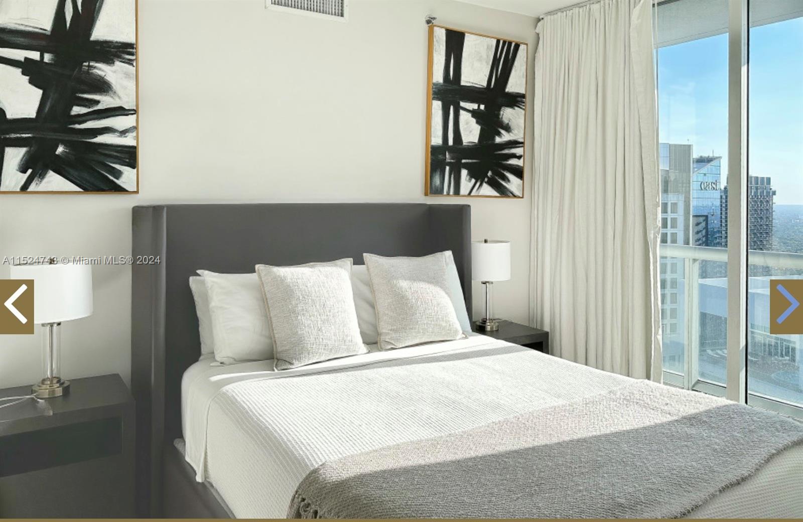 Prestigious corner unit in the best line of airbnb Icon Brickell Tower 3. Enjoy breathtaking views of the Biscayne Bay, Miami River and Brickell/Downtown Skyline from floor to ceiling windows. Unit has been professionally styled by high end designer and is ready to move in with your suitcase. Perfect PIED-À-TERRE in Miami that can generate airbnb come while you are away. Superb airbnb management in place. Italian kitchen, Subzero Wolf Bosh stainless appliances, Designed by Philippe Stark, world class amenities, famous 28000 sqft SPA Fitness Center with thermal hot tub, steam room, olympic size Infinity Pool overlooking Biscayne Bay, outdoor fireplace, movie theater, lushly landscaping and outdoor living. Fine dining with Cipriani & LaVeinte in the building. In the heart of Brickell.
