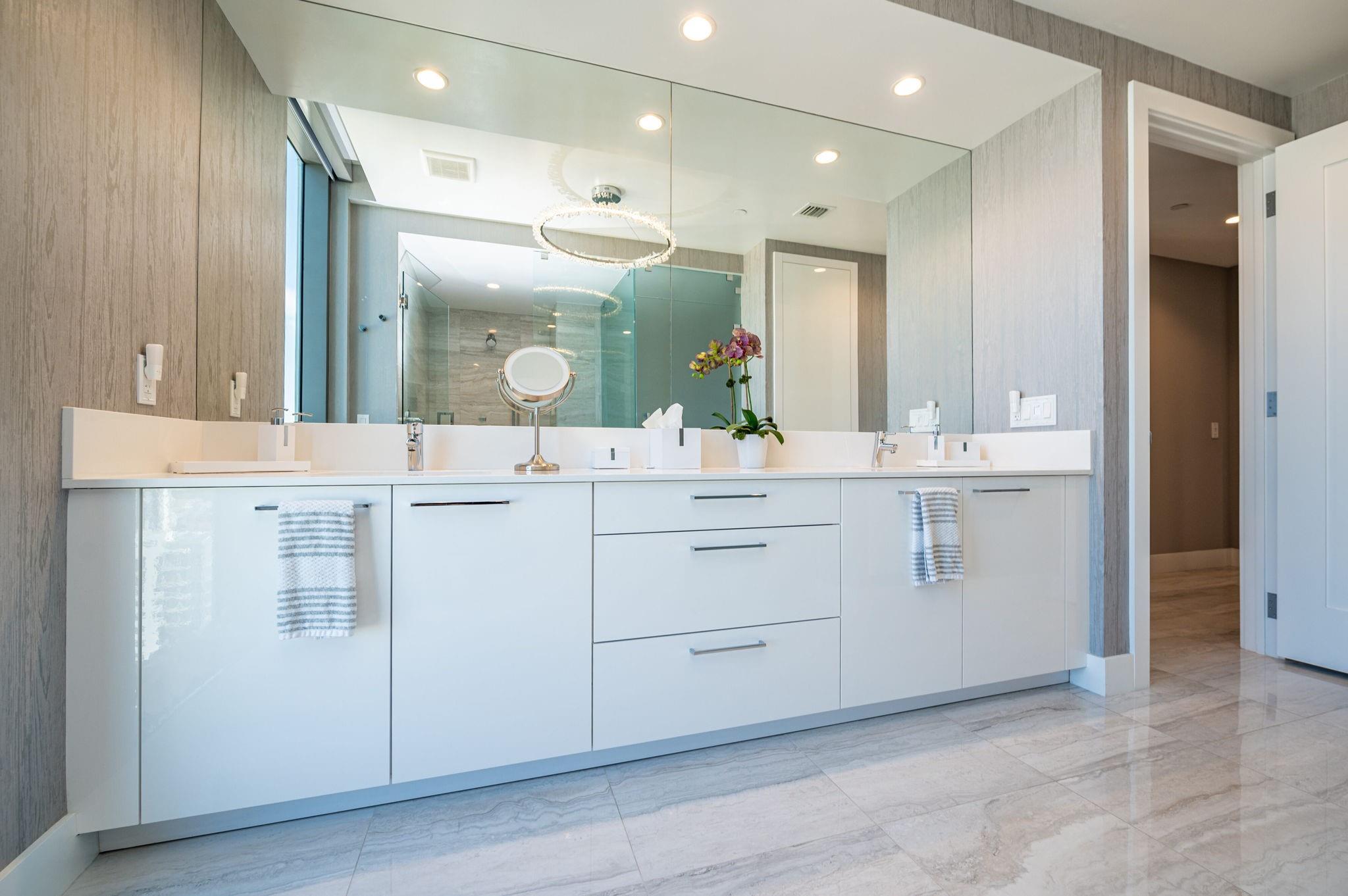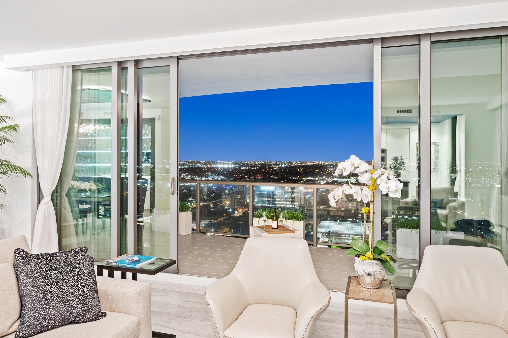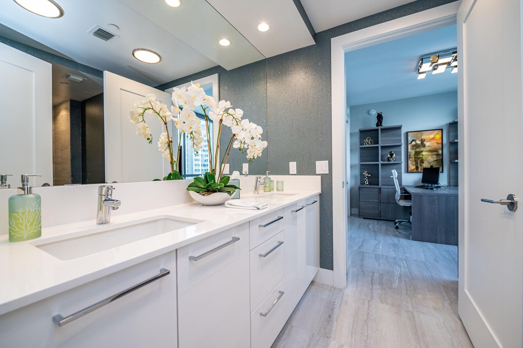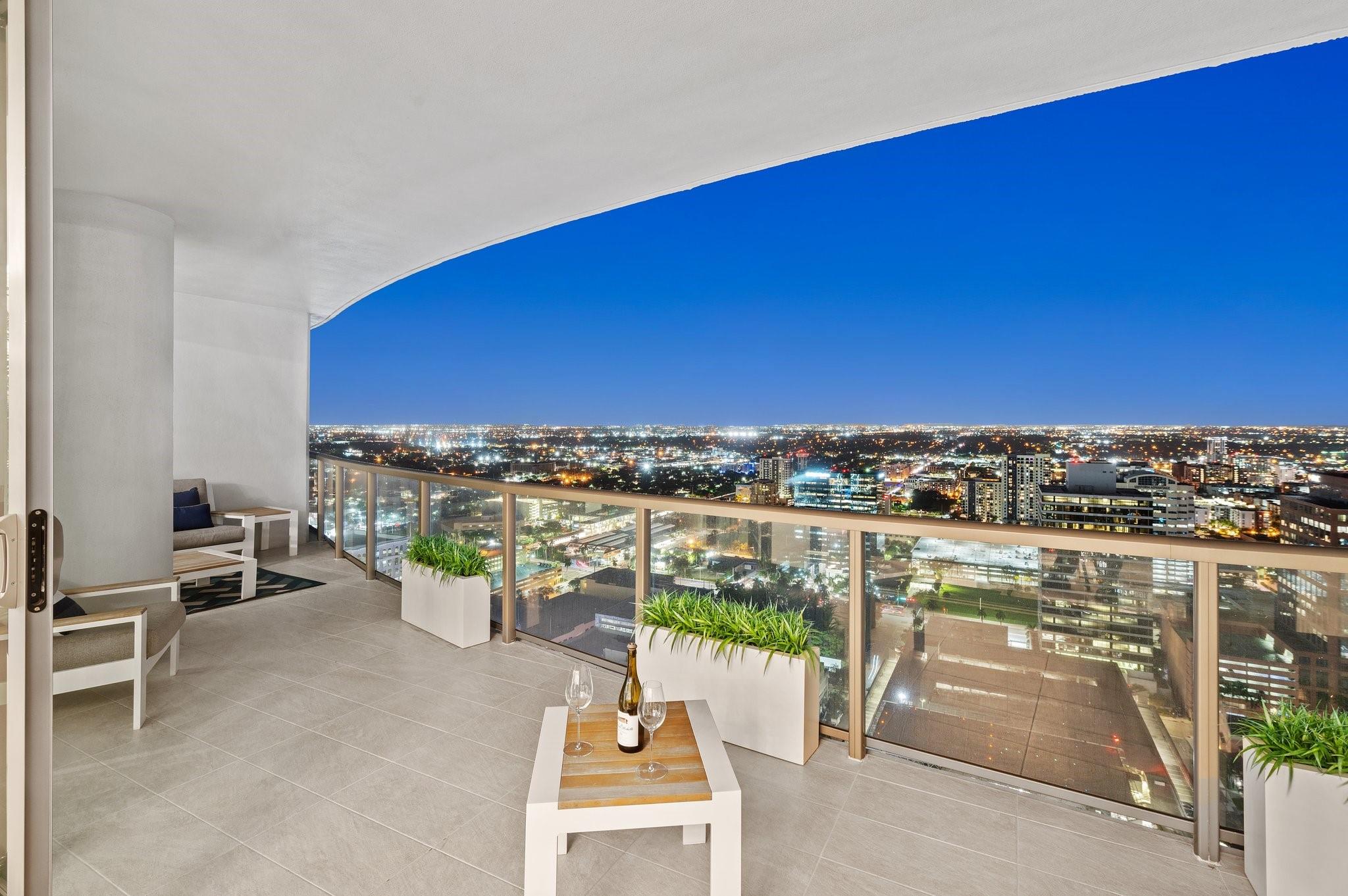 Turnkey custom designed condo in Fort Lauderdale's most iconic, newer & tallest downtown address 100 Las Olas is framed by an unobstructed panoramic backdrop of the city skyline, canals, Intracoastal, New River to the ocean from every corner of your home. Enjoy best of both worlds from early sunrises to late sunsets. Magical night views. This great open layout with the best views from floor to ceiling windows, primary bedroom balcony and expansive wrap around curved terrace with tri-fold sliders is what makes this "A" model floorplan so unique & desirable. Top of the line gourmet kitchen, appliances, fixtures, furniture, custom built-in Onyx lit bar and more. This residence is an urban oasis of luxury. Smart technology. Resort style living & amenities. Restaurants, shops, theatre, ocean.