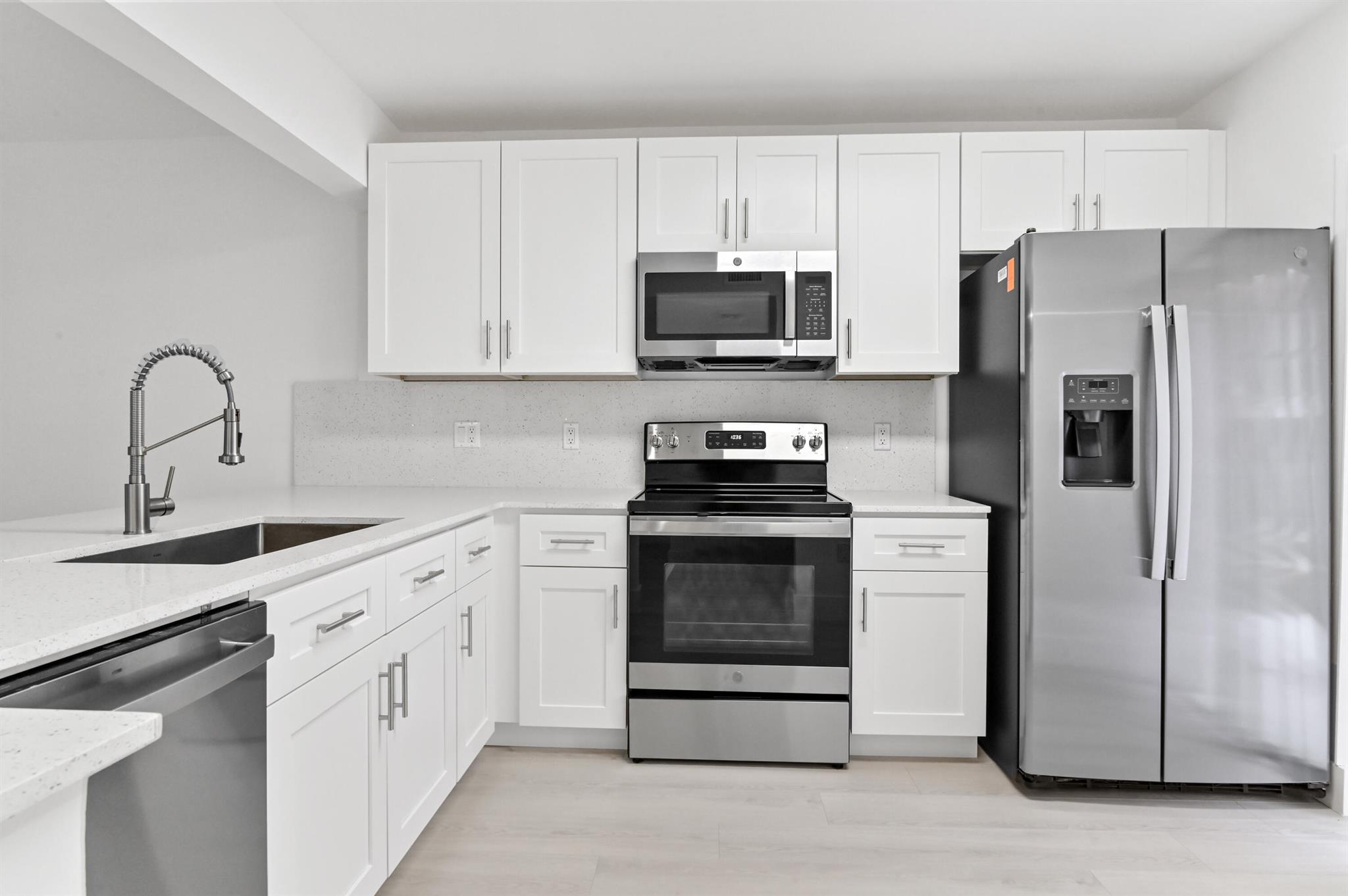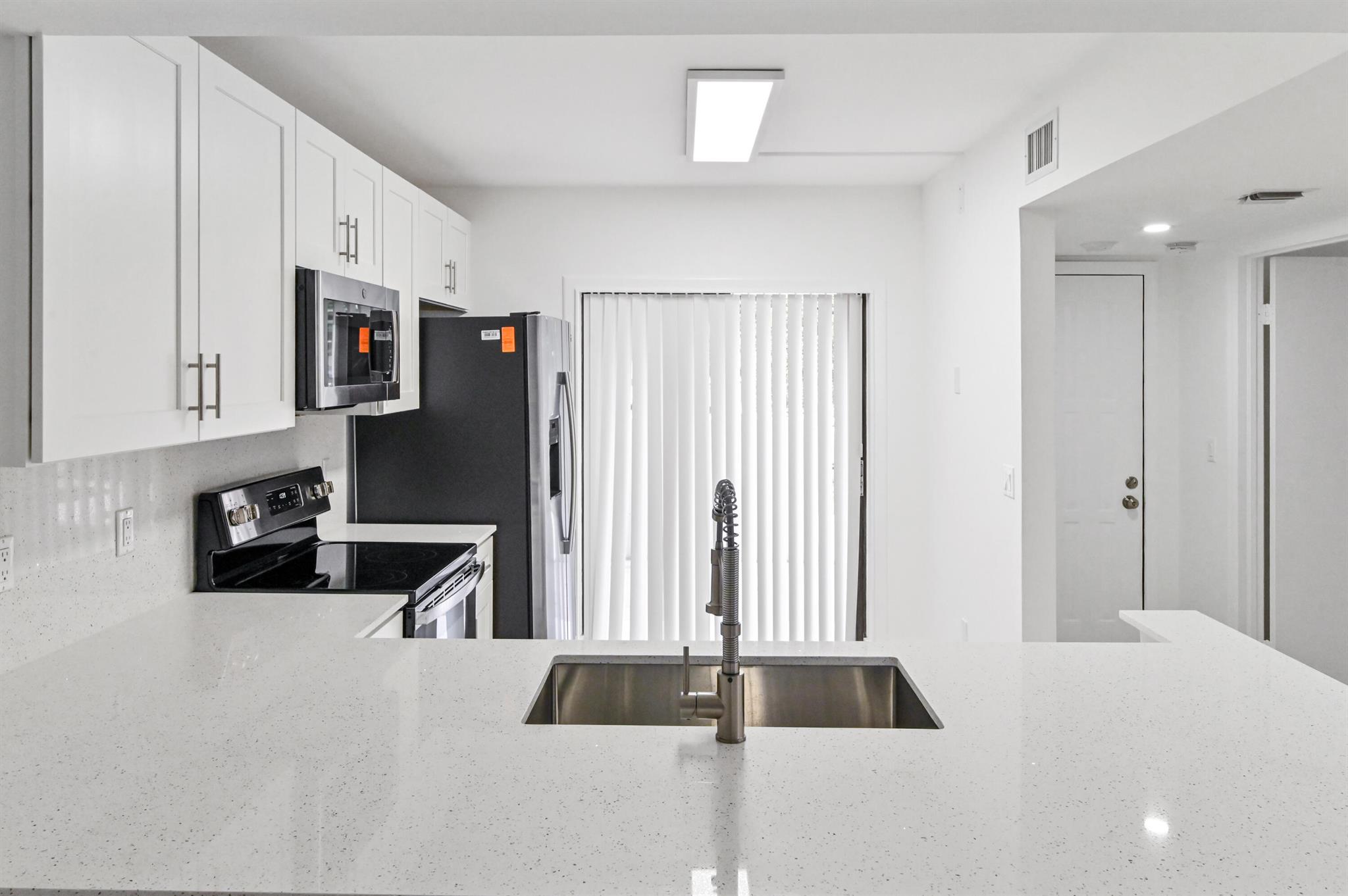 This stunning 2BR/2BA condo in Boca's San Remo Golf & Tennis has undergone a complete, permitted renovation! The beautiful kitchen features new wood cabinets, quartz countertops w/a stylish backsplash, & all-new appliances. Both bathrooms have been upgraded w/new plumbing, electrical, contemporary tile, & fixtures. The primary bath showcases a brand-new frameless tempered glass shower door system. Enjoy a seamless flow throughout the living areas w/the addition of all-new LVP flooring. The unit has been freshly painted, new pipes installed & HVAC system has been meticulously cleaned & sanitized for optimal functionality. Convenience is key with a washer/dryer included in the unit. Full hurricane protection.