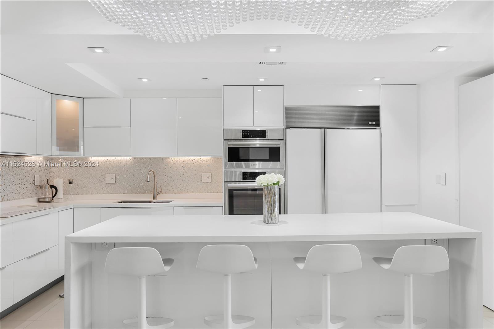 This flow-through unit offers beautiful SUNRISES and breathtaking SUNSETS everyday from its two expansive balconies! This fully remodeled 3-bedroom, 3-bath residence features convenient Murphy bed in the living room. The heart of this home is its stylish kitchen, equipped with Subzero and Bosch appliances, complemented by all-electric blinds. Experience the ultimate in oceanfront living with resort-style pools, a tennis club, restaurants, a kids' play area, attended lobby and full security. Walk to new paddle and tennis courts, and enjoy the convenience of valet and supercharges for electric vehicles. Embrace the epitome of the luxurious lifestyle!
