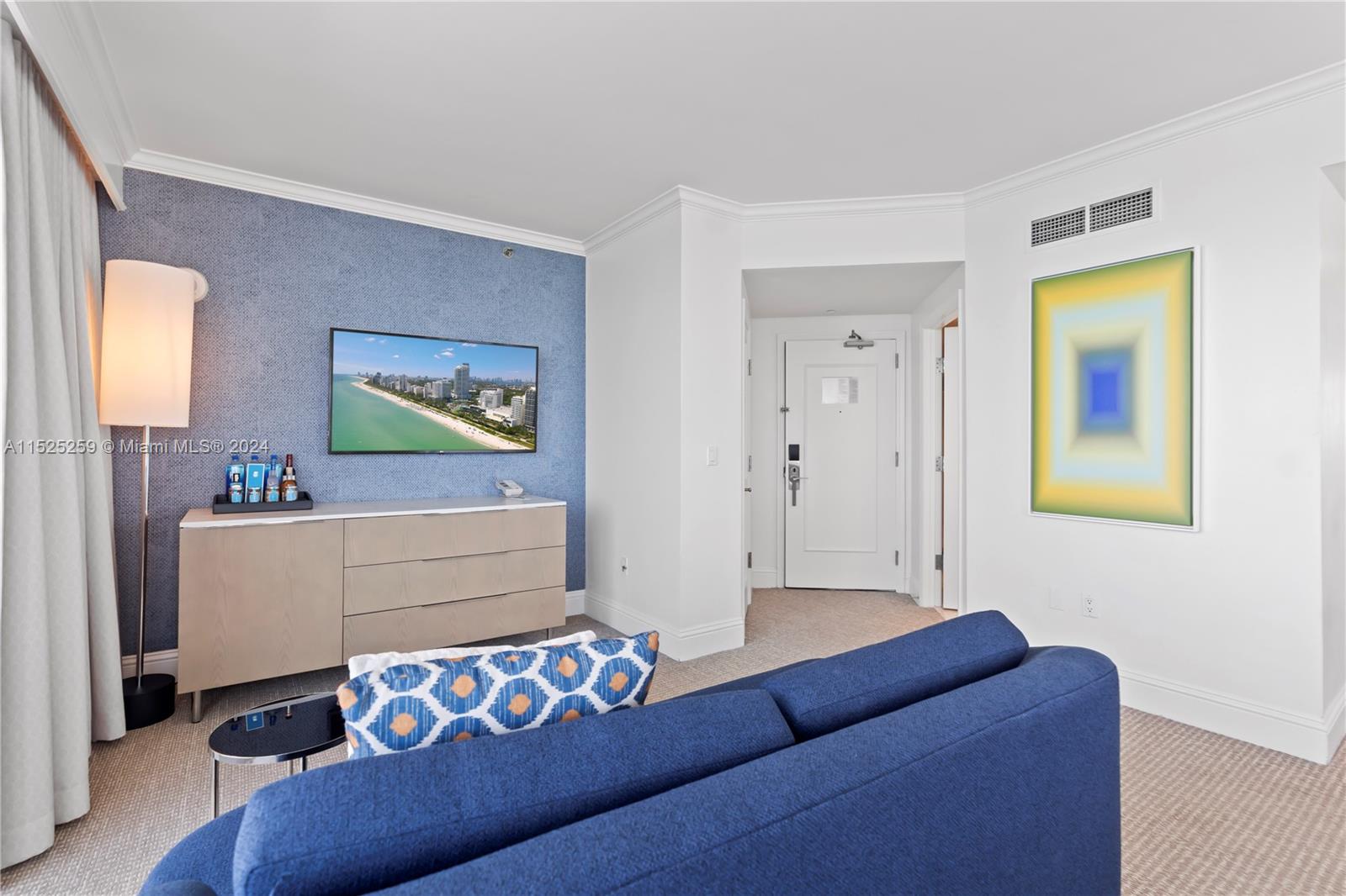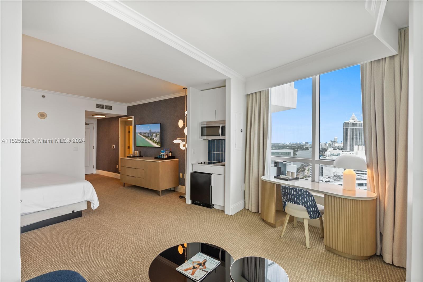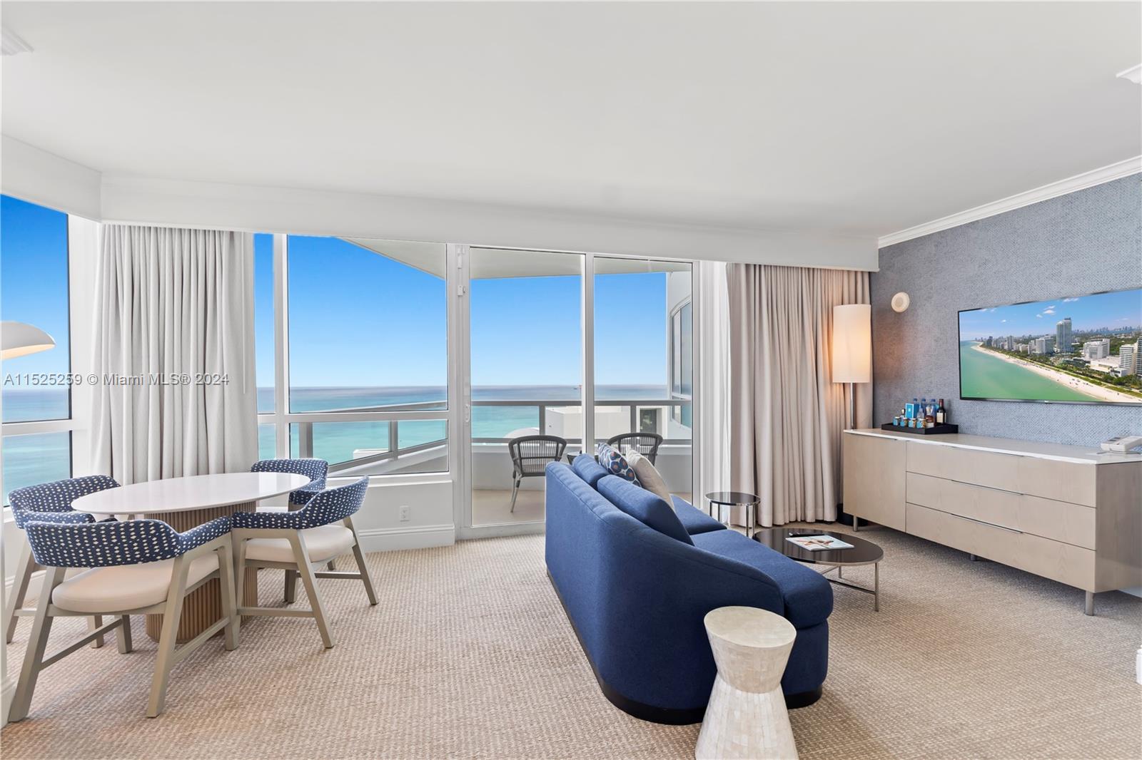 Spectacular seldom on the market, remodeled 1 bed/2 bath unit at Fontainebleau II boasts unobstructed direct ocean, bay, and hotel pool ground views. Experience vacation-style living with full-service amenities in this furnished turnkey unit offering a full kitchen, king bed, sleeper sofa, 2 balconies, washer/dryer, and additional comforts. Enroll in hotel rental program & receive income while away! The Fontainebleau resort offers award-winning restaurants, LIV night club, Lapis spa & state-of-the-art fitness center, bakery, shops, full-service salon and more. Maintenance fees includes all utilities: AC, internet, cable, local calls, electricity, valet + daily free breakfast in owner's lounge. Please click the virtual tour link to see video of property.