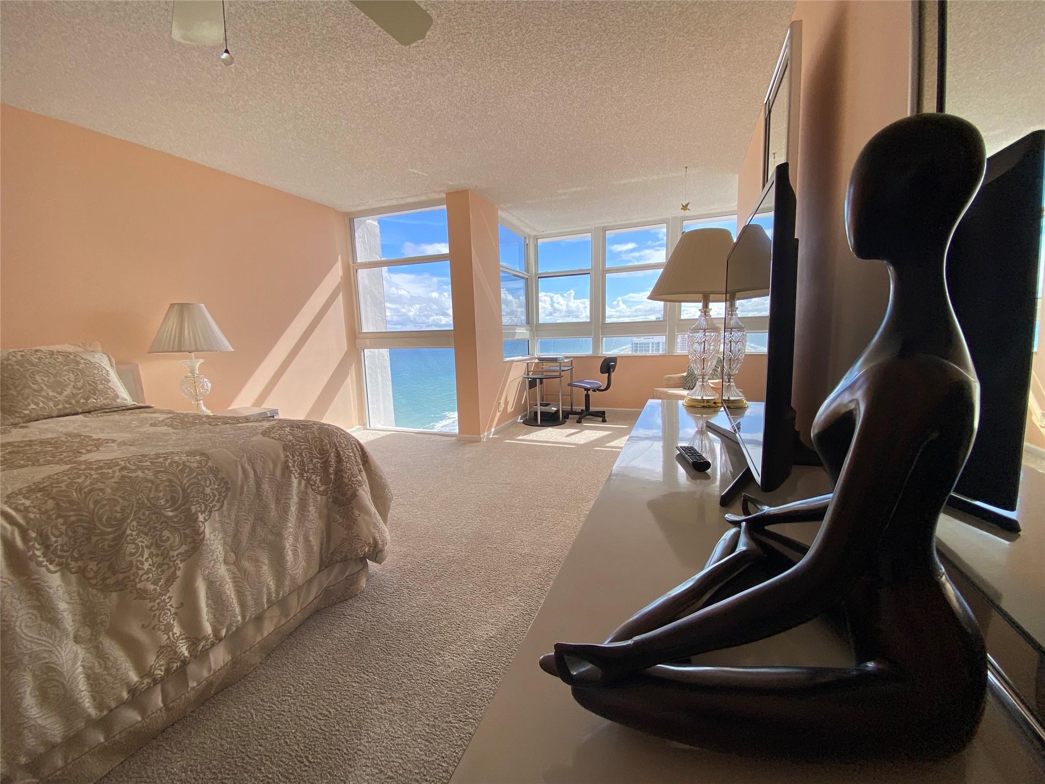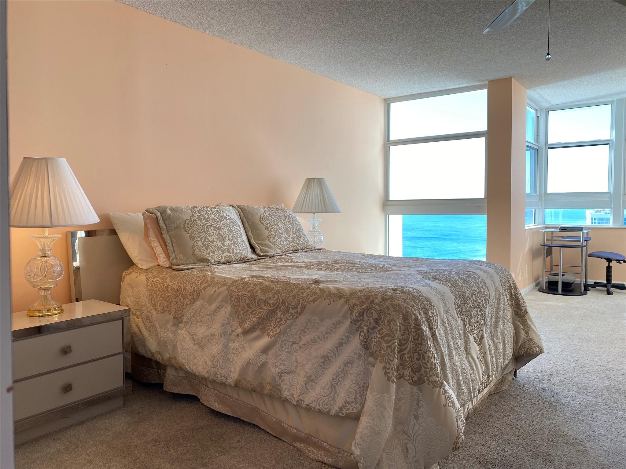 BREATHTAKING OCEAN VIEW from this FURNISHED 2 beds /2 baths 23rd FLOOR unit! Right on the sand! The bright and SPACIOUS primary bedroom with its South-East Ocean view offers a cute office/relax area and a huge walk-in closet. STORAGE throughout the property with WASHER and DRYER in the unit. Floor to ceiling IMPACT WINDOWS everywhere with sliding glass door leading to a large open balcony. This 1,600 sqft unit features also a generously sized second bedroom. This well manage building offers many amenities : a heated ocean front pool with spa, tennis court, fitness center with sauna, library, bike storage, secured lobby and garage! You will also be able to benefit from a SKY LOUNGE wit panoramic views of the ocean on the 28th floor! Cable / internet included in the maintenance fee. NO PETS