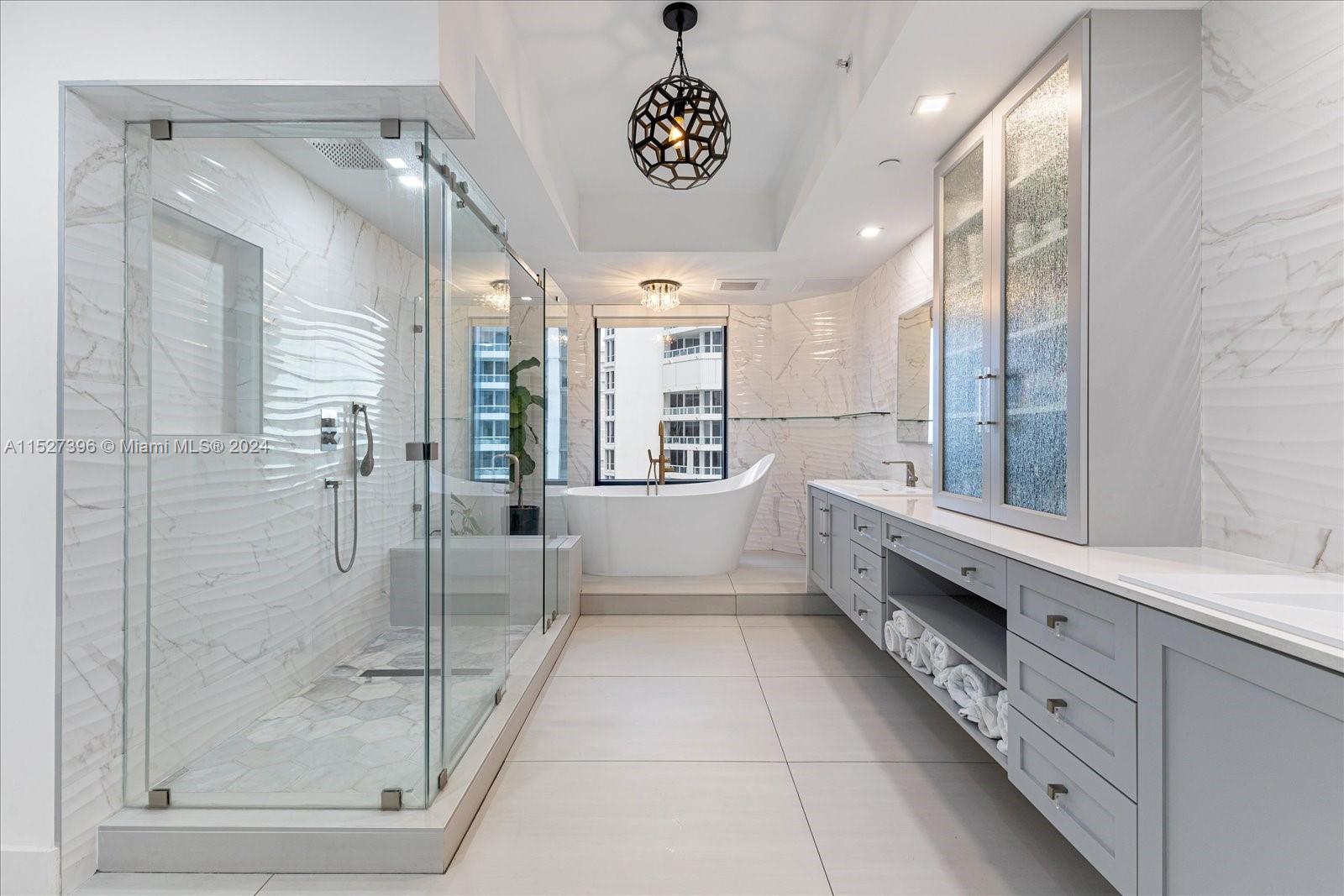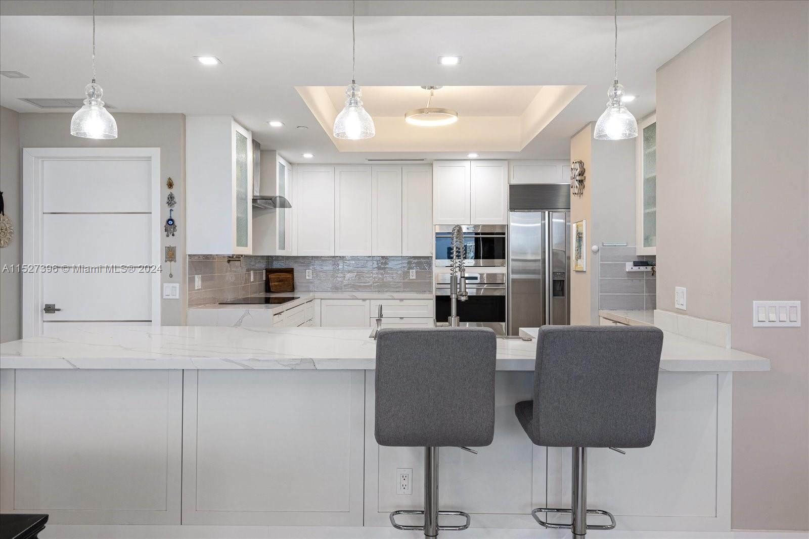 Luxury living in Aventura's premier high-rise condo. This fully renovated turnkey residence w/ a private elevator entrance, offers the epitome of sophistication & comfort. Step into elegance w/ breathtaking 360-degree exposure views showcasing the vibrant cityscape & tranquil waterways. This meticulously upgraded 3-bed, 3.5-bath condo boasts top-of-the-line features like Wolf & Sub-Zero appliances, Italian porcelain floors, convenient pot filler & Miele washer/dryer. Indulge in opulence w/ custom doors, while the primary bathroom offers a touch of luxury w/ a Toto toilet. Enjoy resort-style living w/ amenities including 3 tennis courts, spa, fitness center, community room & wine storage. Embrace outdoor enjoyment w/ 3 pools & BBQ areas, perfect for soaking up the sun & outdoor gatherings.