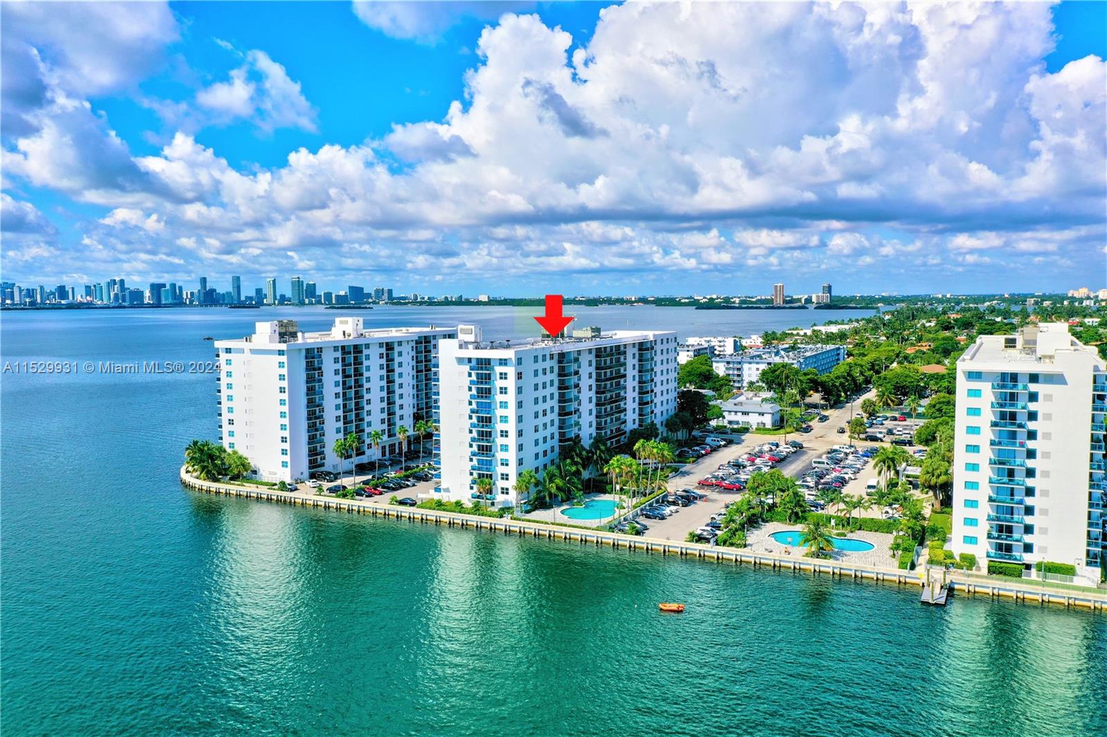 PENTHOUSE. Absolutely electric views over the bay, ocean, pool & the sparkling Miami & Miami Beach skylines. Situated on the penthouse floor with a massive private balcony, the unit is completely turnkey, sporting impact windows & doors throughout, a gleaming stainless steel & quartz kitchen replete w a breakfast bar overlooking the view, a perfect split floorplan w ample walk-in closets, gorgeous baths w floor-to ceiling tile & fresh custom paint. Currently rented for $3,000/month through 11/1/24, this unit is a shoe-in for any investor or any end-user who wants to earn while the tenant is in place. The building is spectacular with 3 Bay-front pools w BBQ's, new 5-star gym & 24/7 valet & security. Incredible location just 5 min to the beach & across from the new Publix & park. Call today.