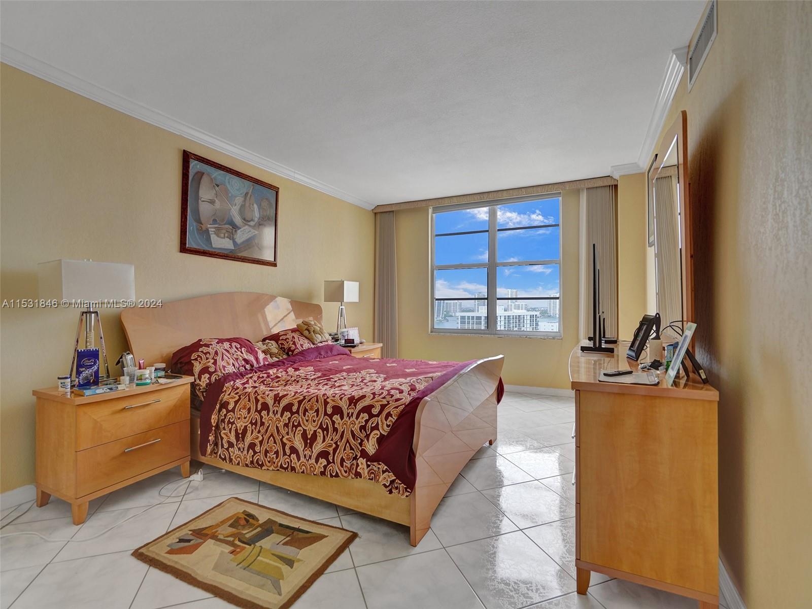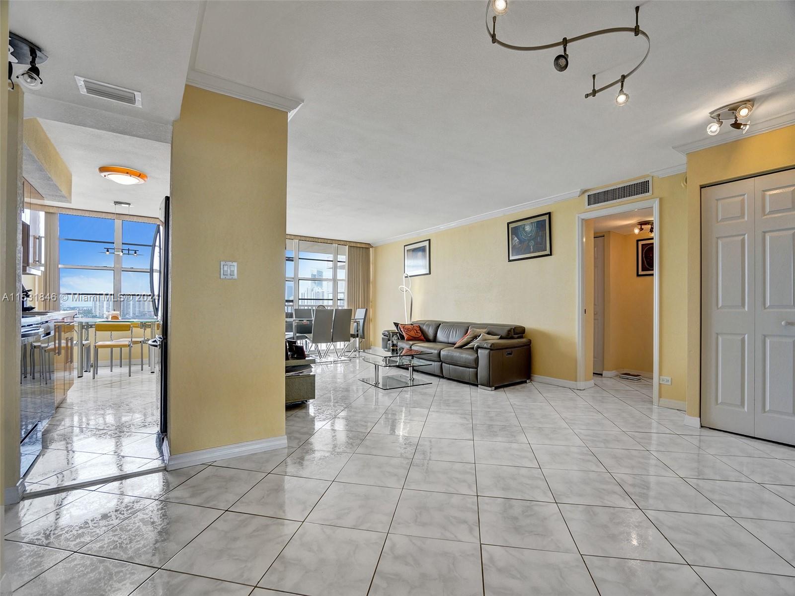 Great Location! Sunny Isles Beach! Bright & spacious 2 bedrooms, 2 bath condo. Split floor plan. Eat-in kitchen, a lot of closets. Just across the street from the Ocean beach and parks. North exposure. Amenities include a 24-hr security concierge parking pool sauna gym game and card rooms, auditorium, and Walking distance to school, shopping, and restaurants. 10 minutes away from the famous Aventura and Bal Harbor Malls. Internet, cable, repair of appliances, air conditioning system, electrical, and plumbing are part of the maintenance.