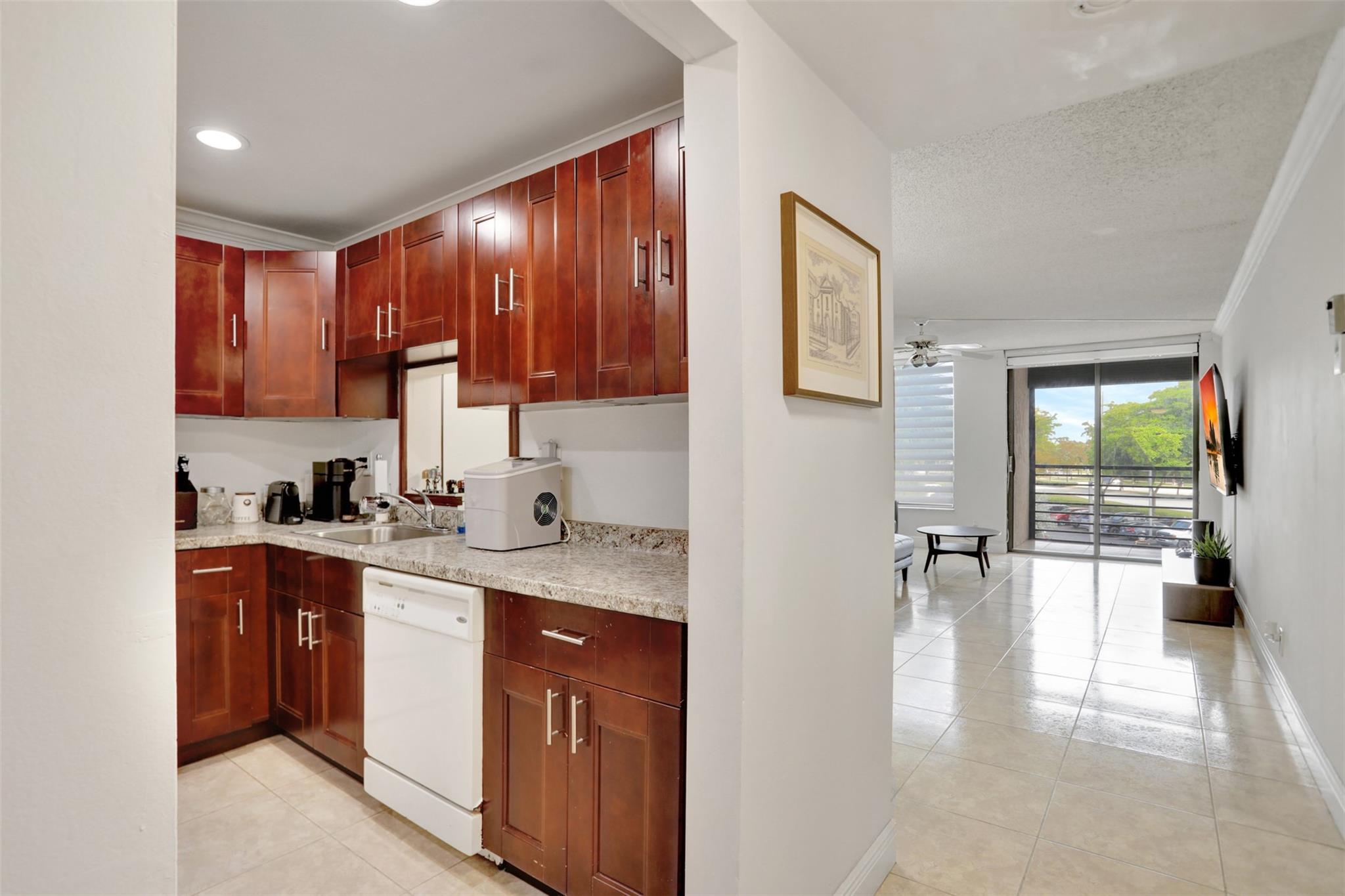 Beautiful move in ready 2 bedroom, 2 bath unit in an amazing location! Freshly painted, with renovated kitchen and new cabinets, crown molding, baseboards, and tile floor throughout. Screened patio, Hurricane shutters. Community pool and club house. Good for investors! Special Assessment $294 monthly for 12 years.