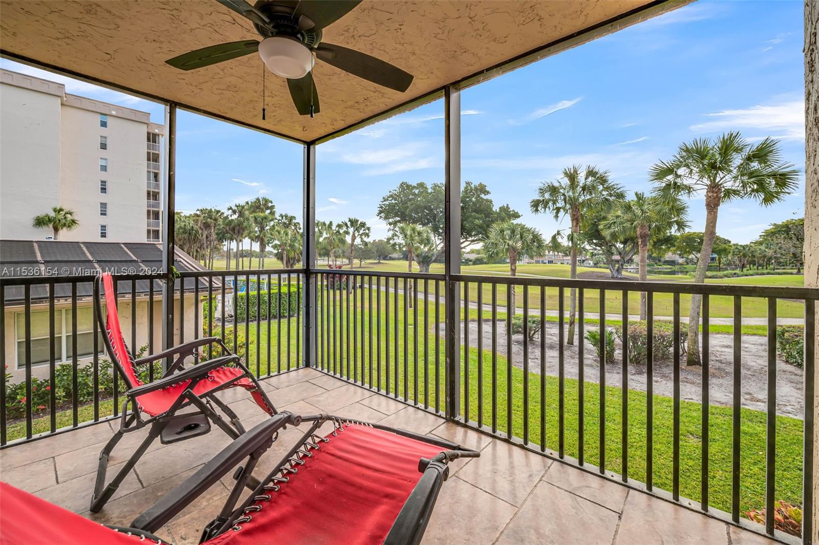 Step into comfortable living with this stunning 1 bed, 1 bath condo in the heart of Plantation. Boasting a spacious entryway, the unit welcomes you into a generous dining/living room area, perfect for entertaining. Enjoy breathtaking views from the ample screened balcony overlooking Jacaranda Golf Course. The very comfortable kitchen features a pantry for added storage convenience. Retreat to the spacious bedroom with balcony access and stunning golf course views. Ample closets throughout, including extra storage. The renovated bathroom adds modern elegance. Elevate your lifestyle in this meticulously maintained building with a small, exclusive community feel. Don't miss the opportunity to call this gem home. Can be rented right away.