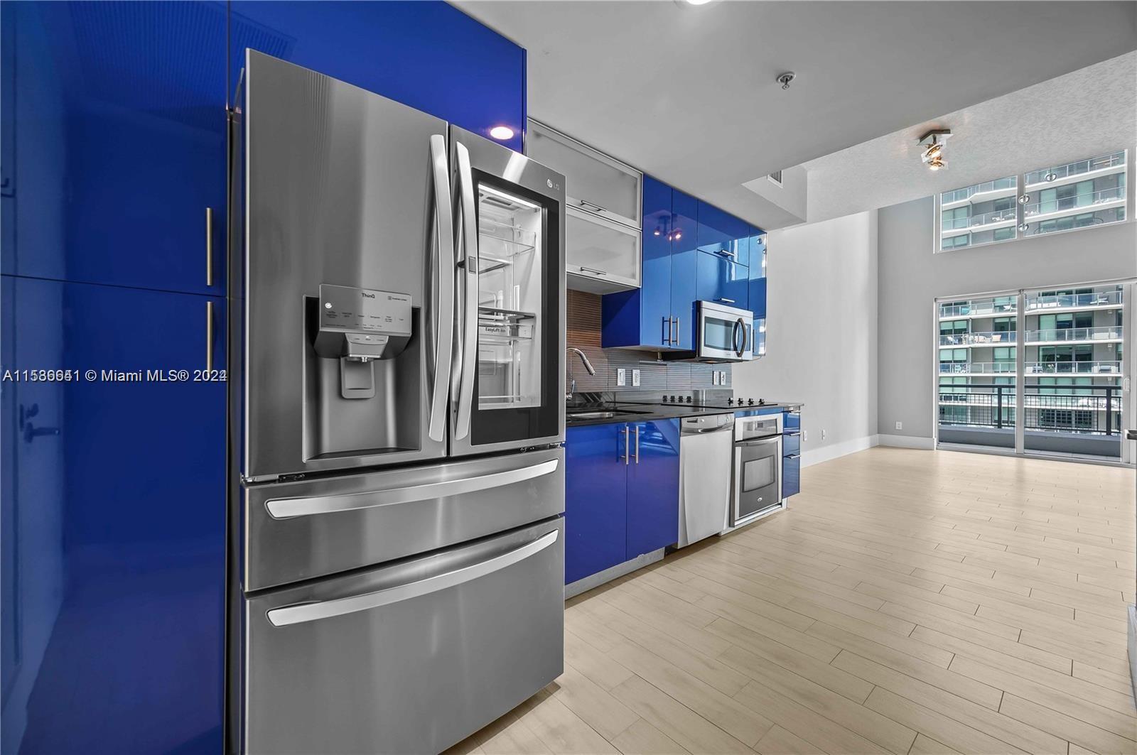 Sharp and sophisticated two-bedroom unit available at Infinity at Brickell. Located in the heart of Brickell. This "flow through" unit features dynamic eastern views of Biscayne Bay, while the upstairs bedroom enjoys majestic western views of Miami in all of its magic majesty. Unit has recently been equipped with state of the state of the art appliances including a brand new LG refrigerator & Washer/Dryer with Wifi capability. Entire unit has been freshly painted and all tile floors refinished. The open kitchen concept and bold, blue kitchen cabinetry further enhance the edgy, cosmopolitan style of this loft-like space. Infinity at Brickell is a first-class condo complex with 24-hour security and resort-like amenities. Tenant occupied until May 31, 2024.