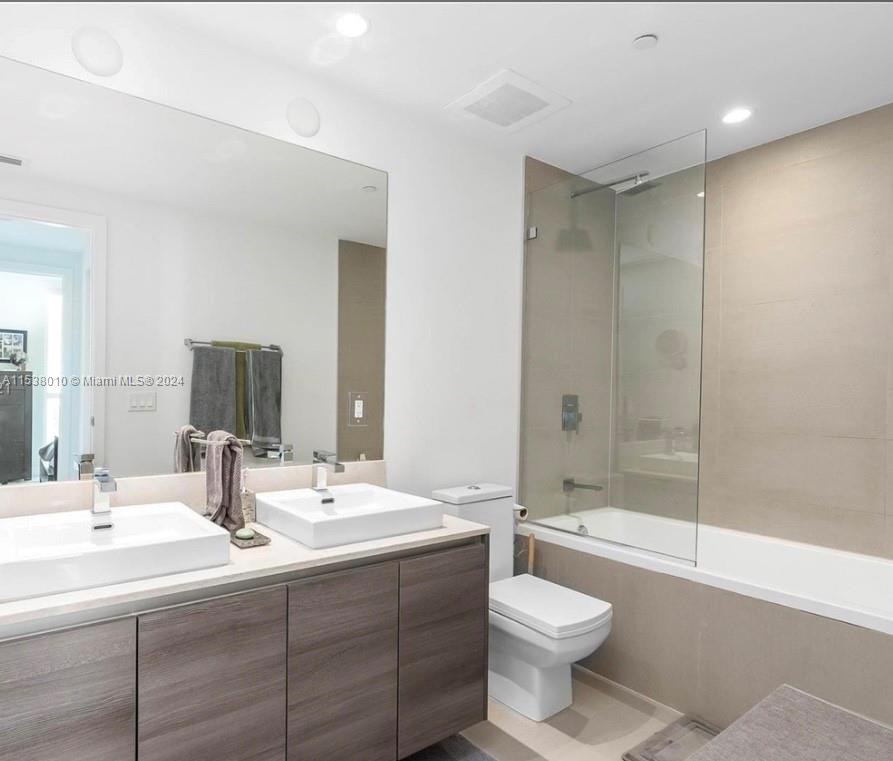 This Beautiful one bedroom plus Den unit with City and Sunset views to the West with 9-foot ceilings, floor-to-ceiling windows, and a private terrace.The building also has a great fitness center, business center, Kid's playroom, a clubroom, and a lounge with a screening room. The Bond is located in Brickell, a short walk from a variety of restaurants, shops, and bars at the Brickell City Centre, and Mary Brickell Village. Other features of this unit include: Bosch kitchen appliances, stilestone countertops, and a spacious walk-in closet. Enjoy a number of amenities including a sundeck with lush landscaping, a lap pool, cabanas, an outdoor fireplace, and a BBQ area.