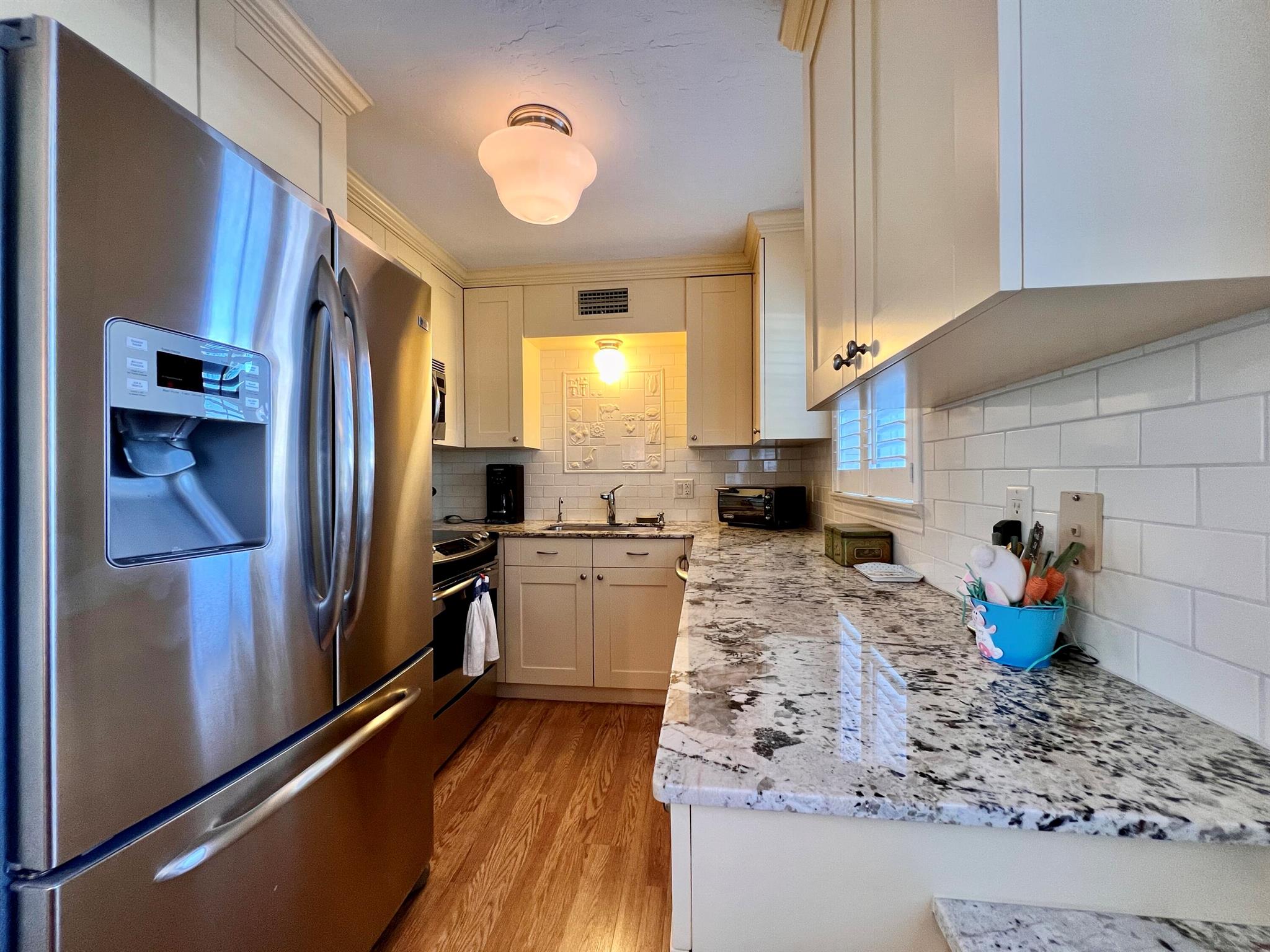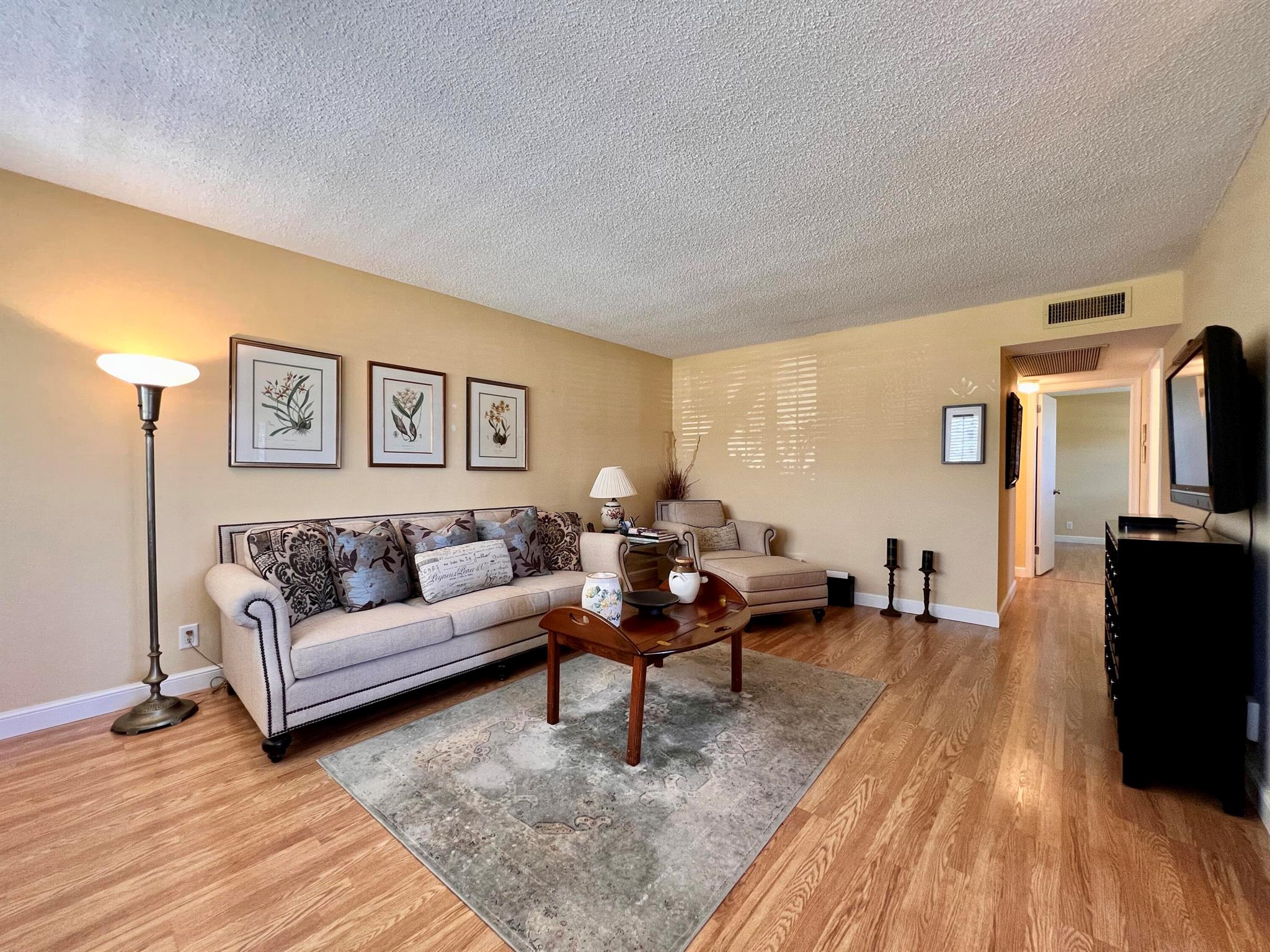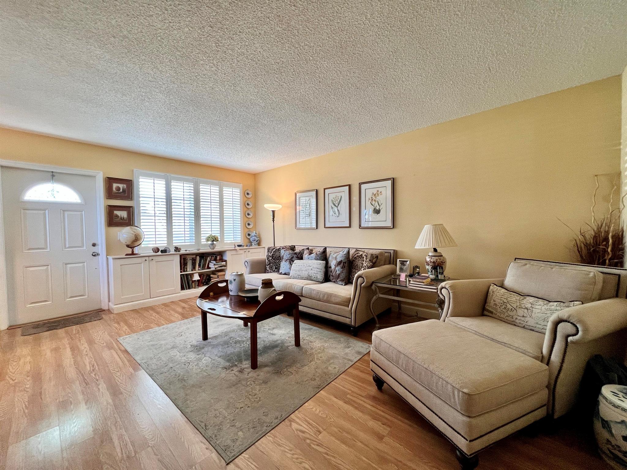 Charming & Updated In 55+ Century Village! Move Right Into This FIRST FLOOR CORNER 2/1.5 With Updates! Pretty Updated Kitchen With White Cabinets, Granite Counters, Designer Subway Tile Backsplash, and Upgraded Stainless Appliances. Updated Baths; Full Bath Features A Step-in Shower. Extra Built-in Cabinets In Dining Area, Living Area, and Guest Room Maximizes Storage. Designer California Shutters On Windows. Lovely Wood Look Laminate Flooring With Updated Baseboard Throughout. Closet Systems. Accordion Shutters All Around. Sold AS IS. Building Features A New Roof in 2022 and A Tiki Hut Resident Patio For Outdoor Enjoyment. Century Village Is A Resort Style 55+ Community With So Much To Offer...