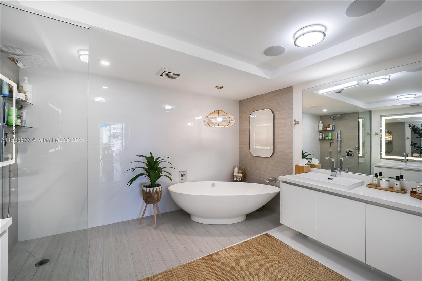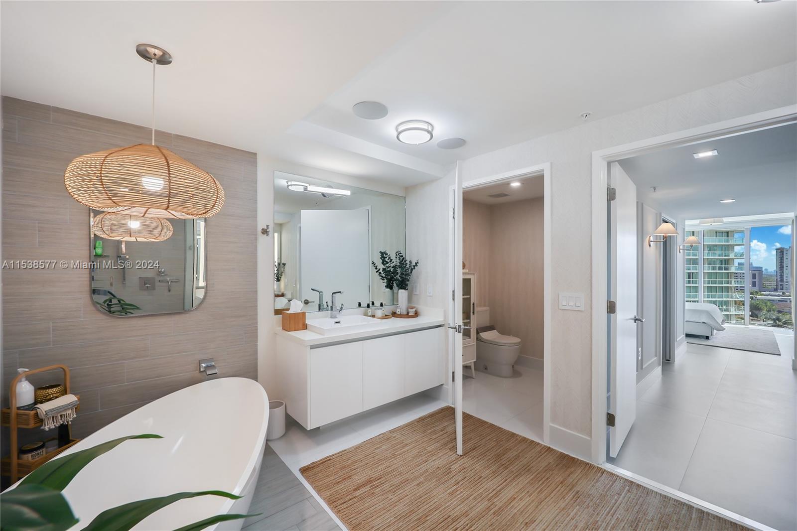 3 Bed, 3.5 Bath Condo in Parque Towers. This stunning residence is a masterpiece of design and comfort, offering breathtaking views of the water and an array of sophisticated finishes. The apartment features crown moldings and wall molding designs. Guest Bathroom redesigned with beautiful wallpapers, a chic mirror, and elegant new lighting. Enjoy blackouts and curtains in each room, with the living room curtains operated by a remote control. The living room boasts a custom bar and wine cooler. The ceilings have been refined to remove knockdown finishes, presenting a smooth, modern aesthetic. Master bathroom features elegant wallpapers, built-in speakers, and a built-in TV within the mirror, blending luxury with relaxation. A fully equipped laundry room. Panoramic Water Views.