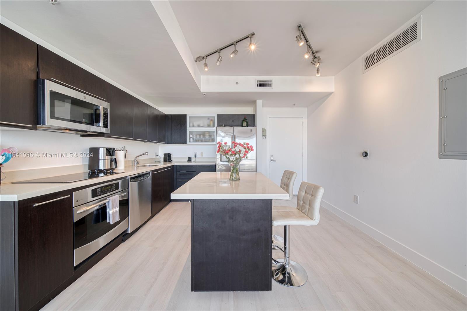 The Ivy is situated by the Miami River, offering residents convenient access to the riverwalk and close proximity to Brickell. The unit has a 2-bedroom, 2-bathroom split floor plan, enhancing the spaciousness of the living and kitchen area. The unit features include new flooring, refinished bathrooms, dual closets in the primary bedroom, and a brand-new washer/dryer. The kitchen is equipped with sleek stainless steel appliances and a rollaway kitchen island. One of the highlights of the condo is its large balcony, providing a perfect outdoor space to relax and enjoy stunning views of the city and the Miami River. Tenant Occupied until April 18, 2024. The unit can be sold furnished or unfurnished.