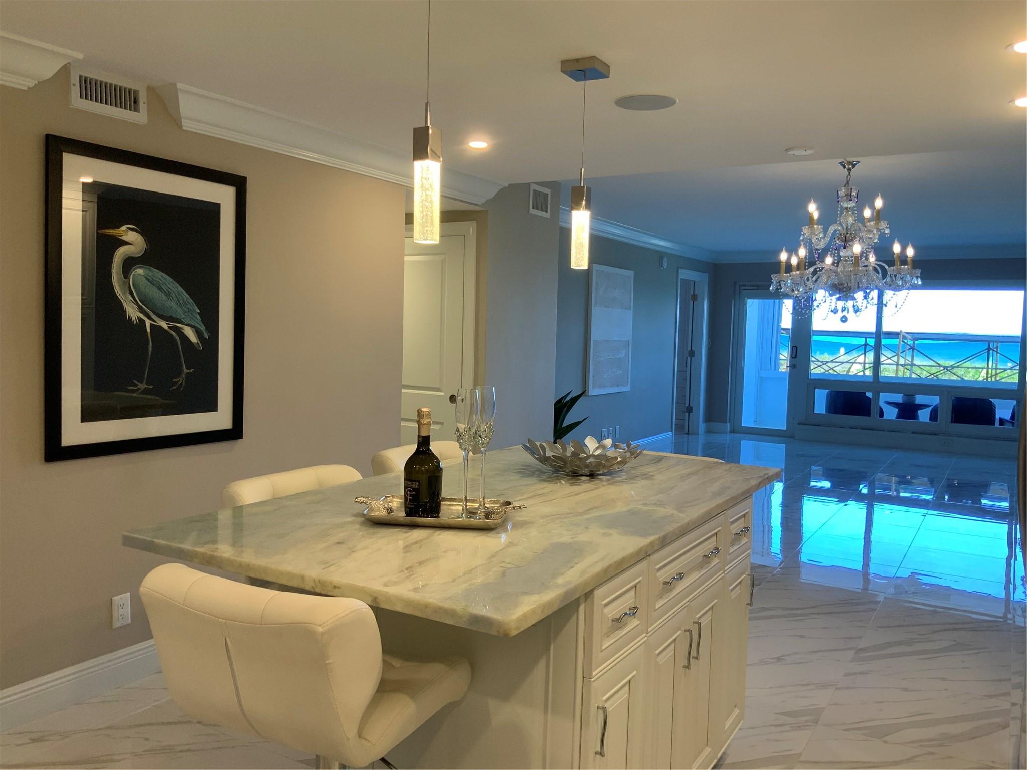 Directly on the Sand! Crane Crest is a newly renovated & currently being painted oceanfront building. Immaculate & elegant 2/2 with unobstructed ocean views from the living room & master bedroom! Rarely available NE corner unit gutted to the studs w/ all new electrical & plumbing. Impact windows & doors with picture windows for direct ocean views. High-end finishes throughout. Master has built-in desk flanked by cabinetry for clothes and storage. Walk-in closet w/ organizers. Guest bedroom with Murphy bed. White wood kitchen cabinets w/quartzite tops and backsplash. SS appliances. Large center island w/ seating perfect for entertaining. Porcelain tile throughout. Both baths with quartzite tops, custom cabinetry. Private beach access. One covered parking spot w/guest parking. Secured bldg.