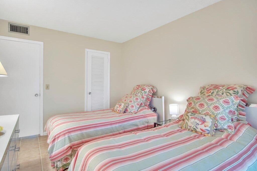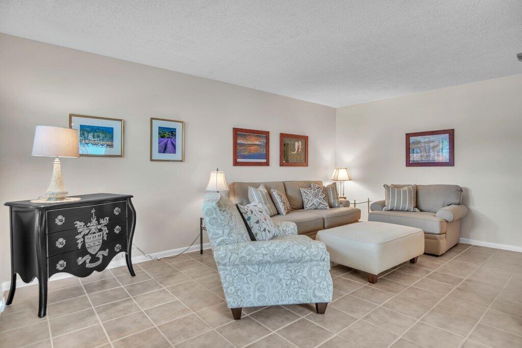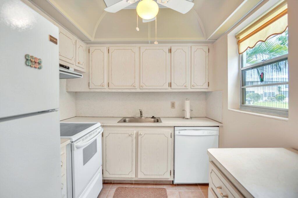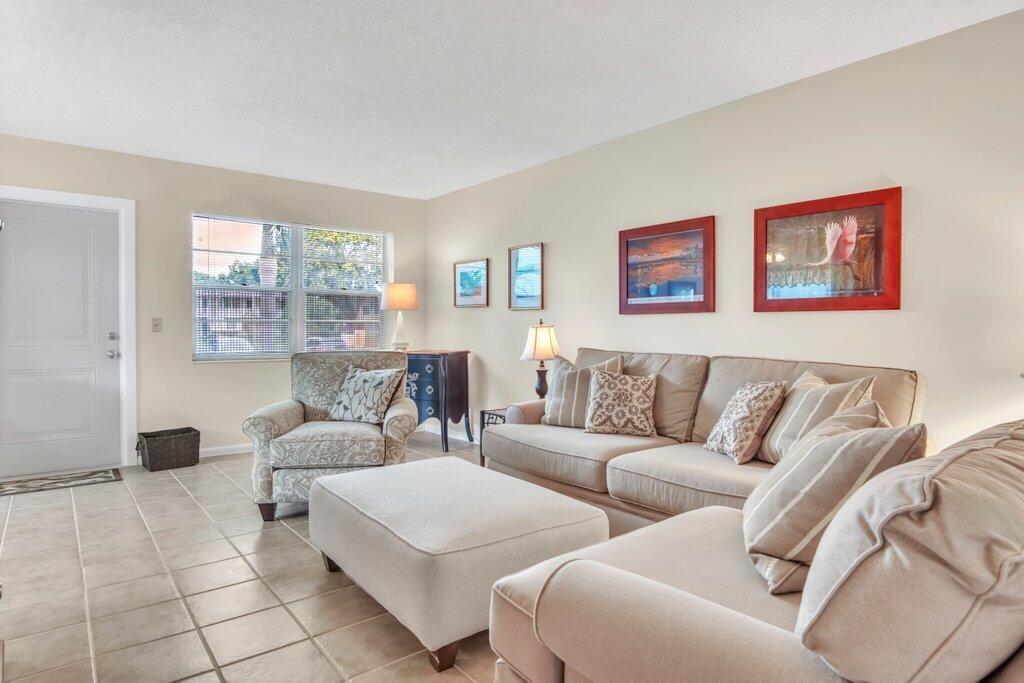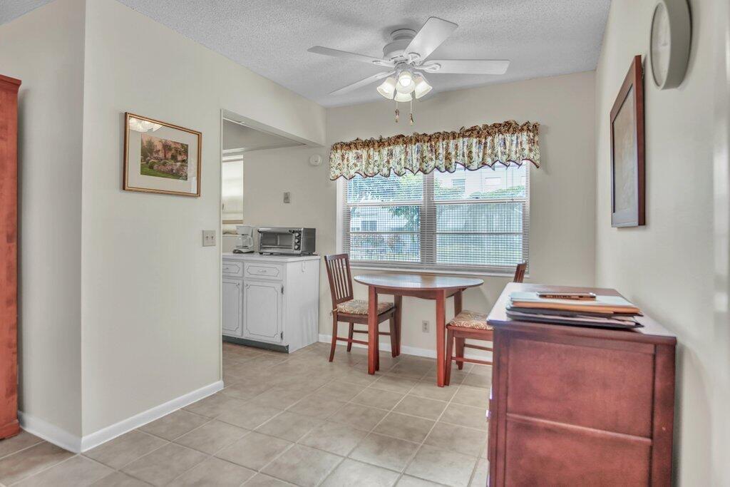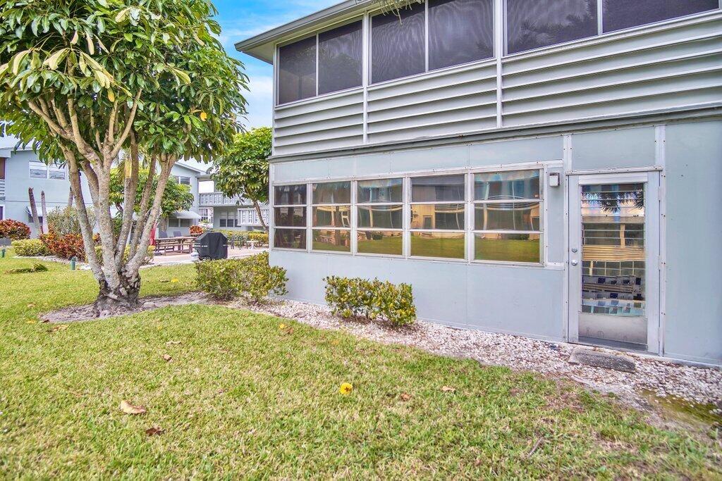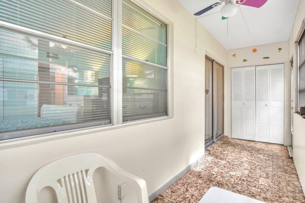 Rare opportunity to own a ground floor CORNER MOVE-IN ready condo! This immaculate condo, used seasonally, is beautifully appointed with lovely furnishings; brings in lots of natural light, and offers a walk in shower; newer AC (2021); neutral ceramic tile and a neutral color palette throughout,. The enclosed back patio adds more space to enjoy and faces an open green area.. Dorchester B is well run and well maintained, The building recently replaced the roof, painted the exterior & completed concrete restoration on common walkways and stairs. A satellite pool is nearby. Century Village offers a state-of-the-art clubhouse hosting many activities, such as shows, movies, billiards, exercise, and many ways to make friends and enjoy all the amenities. This gem of a condo is a must see!