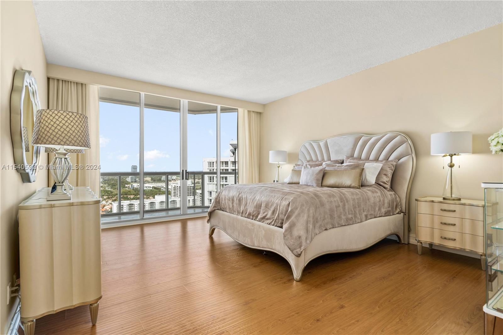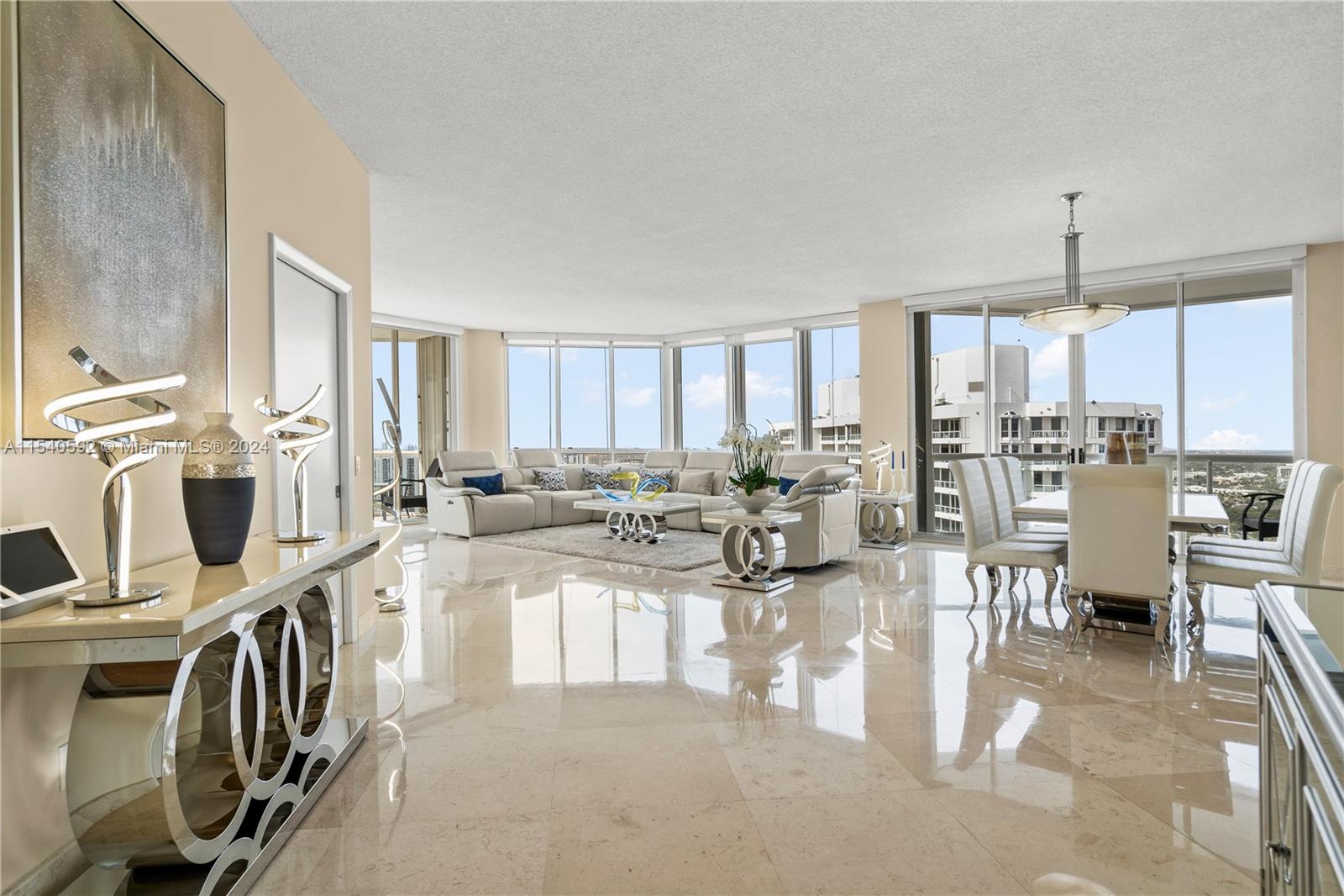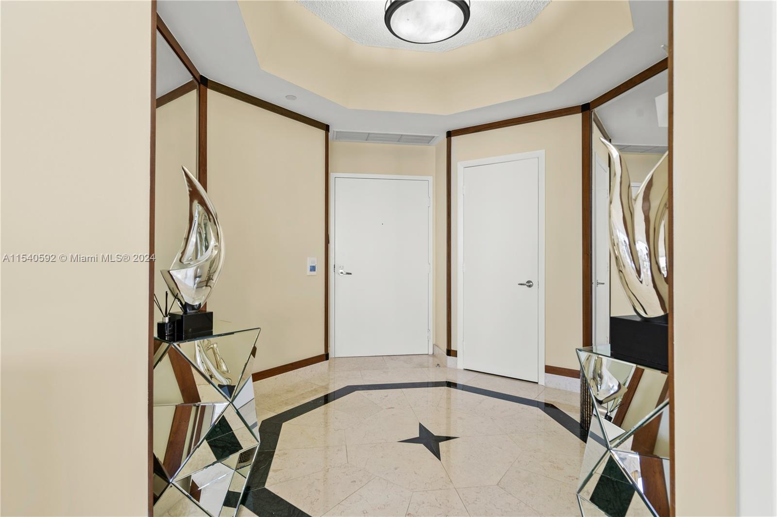 Spacious lower penthouse, tastefully renovated, featuring 2 bedrooms, 2.5 baths, with potential for a third bedroom. Enjoy stunning views of the Intracoastal and the city skyline. This residence boasts 10 foot ceilings and three private balconies. Inside, discover contemporary hardwood and marble flooring, complementing the stylish furnishings.
