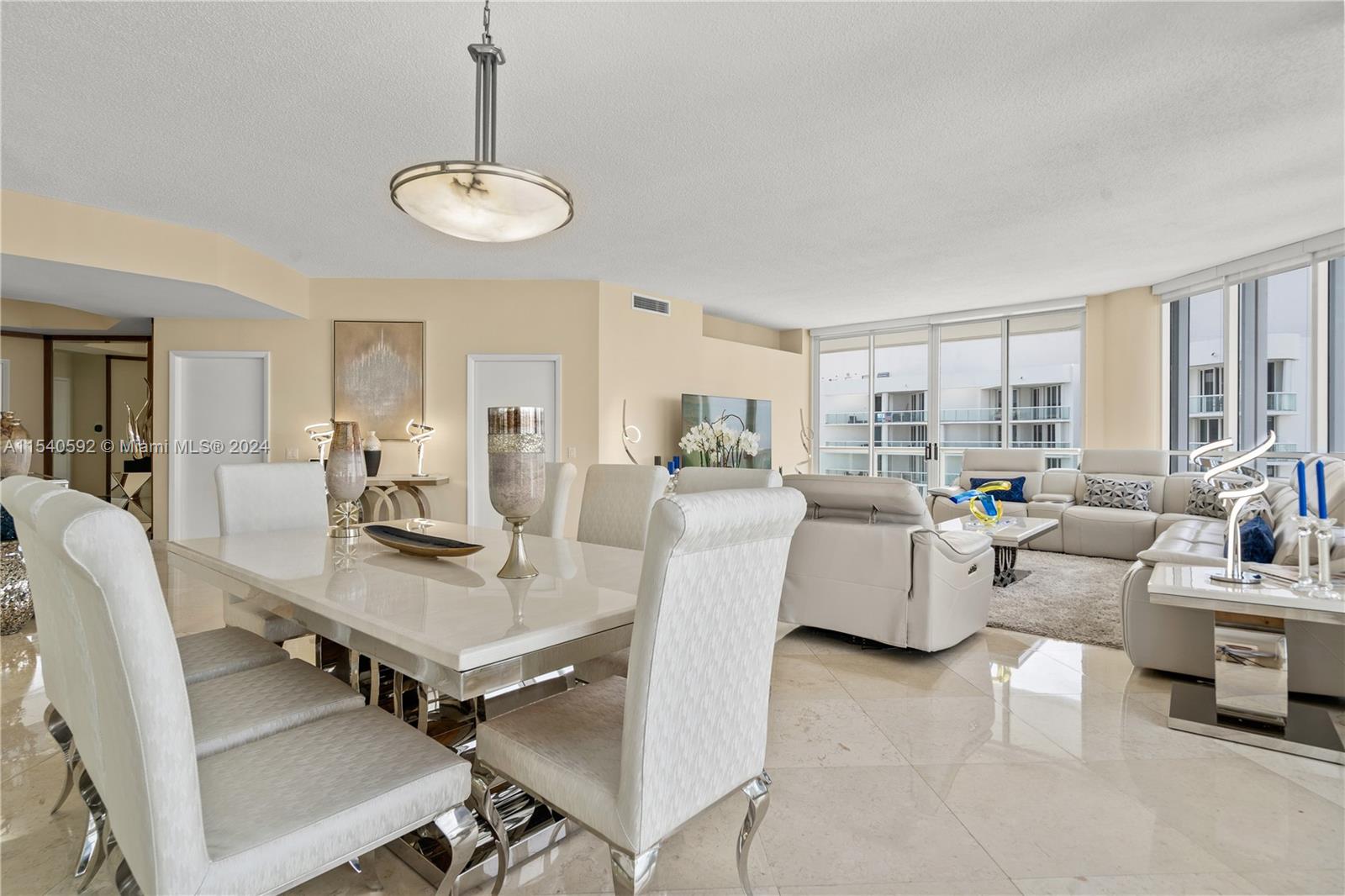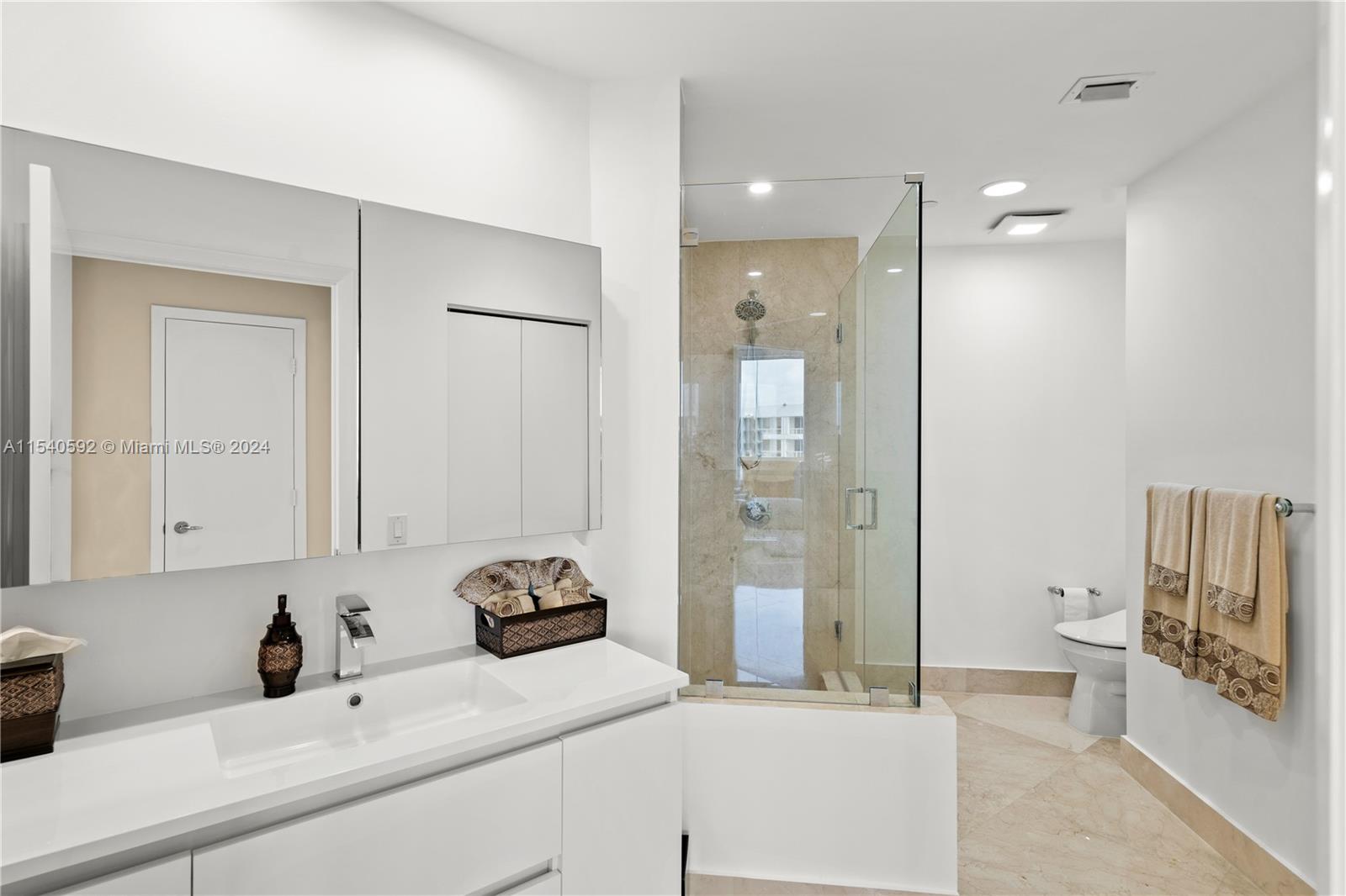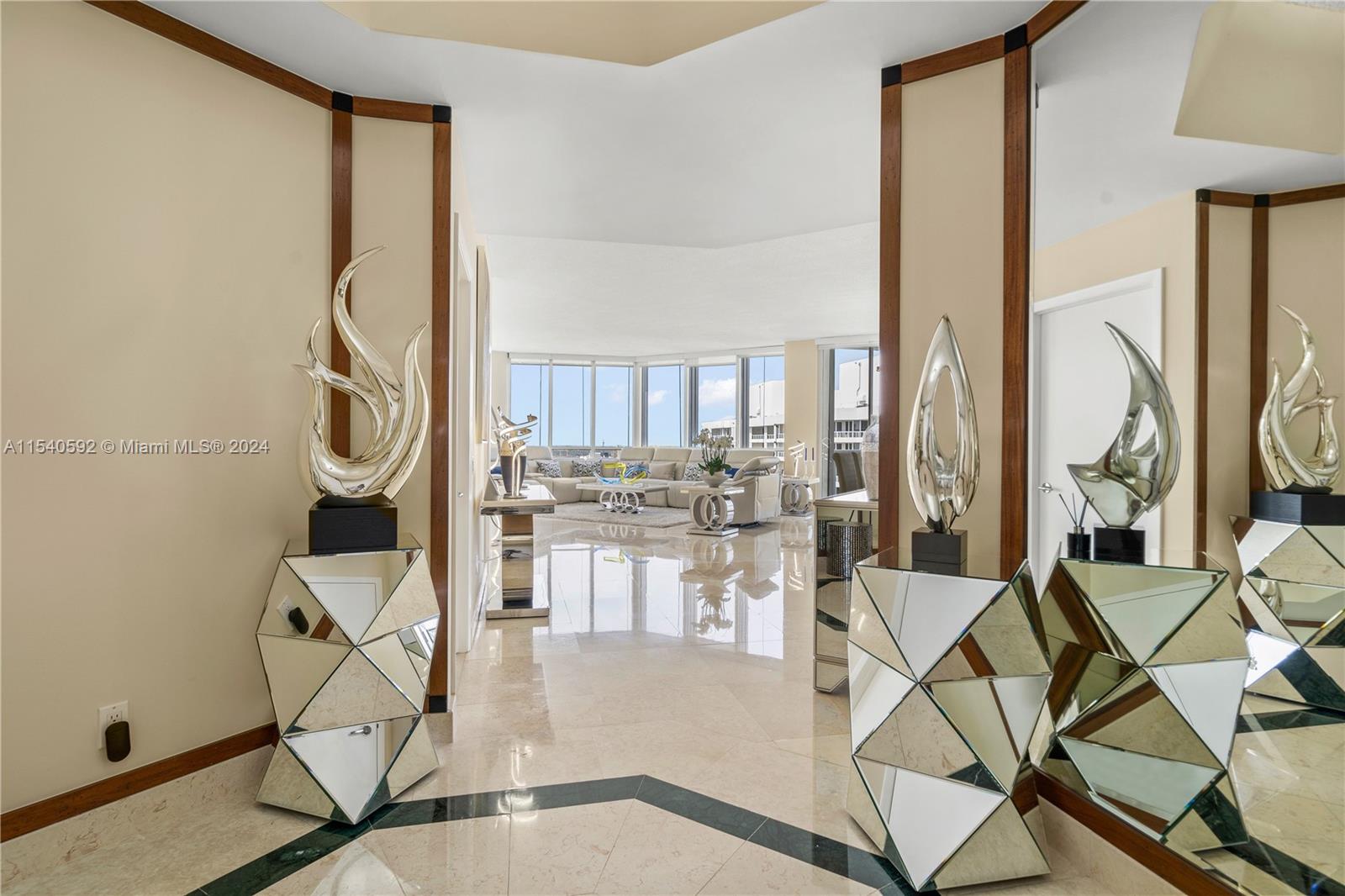 Spacious lower penthouse, tastefully renovated, featuring 2 bedrooms, 2.5 baths, with potential for a third bedroom. Enjoy stunning views of the Intracoastal and the city skyline. This residence boasts 10 foot ceilings and three private balconies. Inside, discover contemporary hardwood and marble flooring, complementing the stylish furnishings.