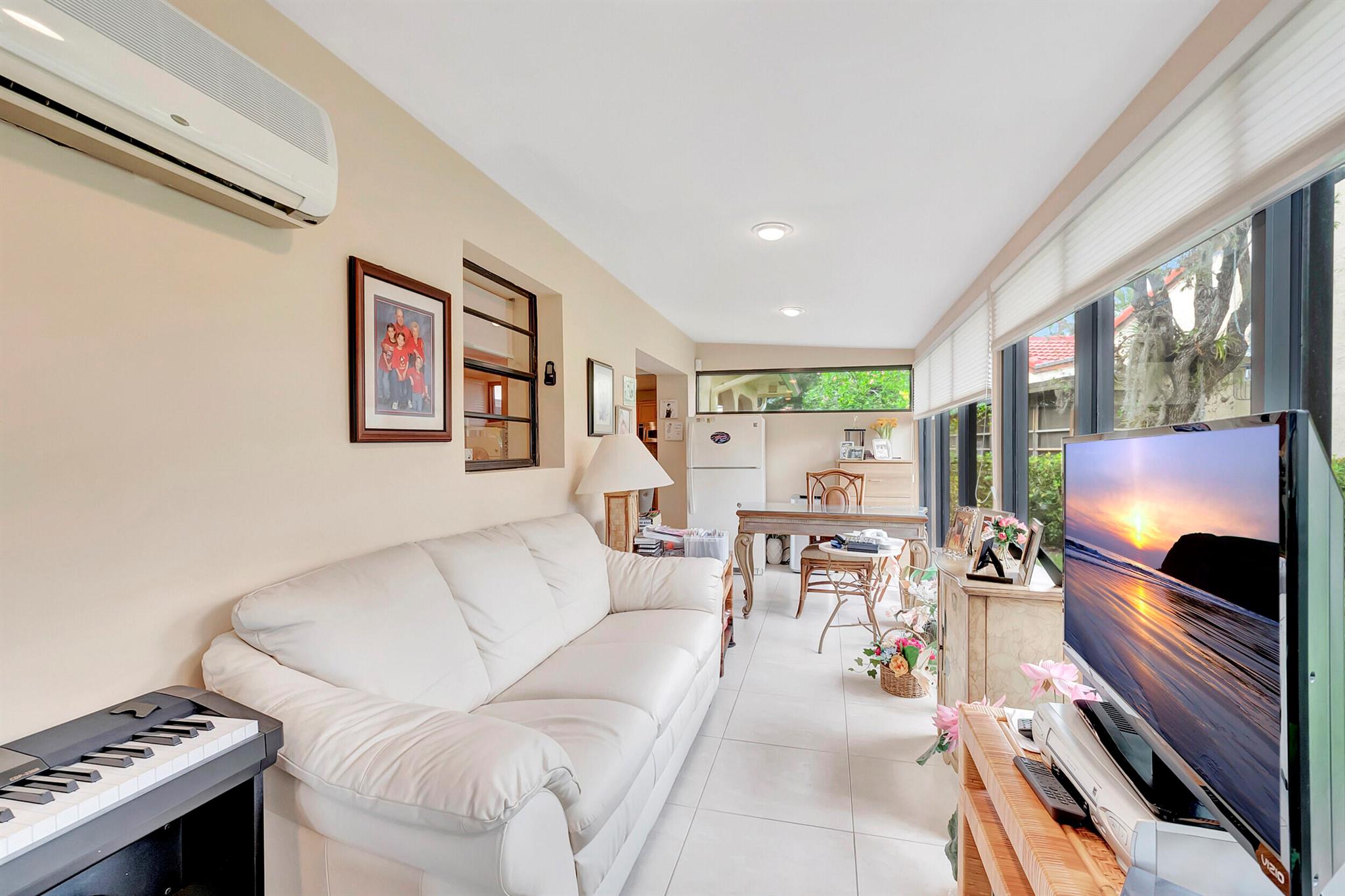 Rare find alert! This stunning 2 bedroom, 2 bathroom villa is located on a picturesque lake with a golf course view. No membership required! Stainless steel appliances, granite counter tops, custom cabinet. High volume ceiling this home is sure to impress. Enjoy the sunset views from the enormous glass enclosed patio with one of the best water views. Plenty of closet space and ample storage this home has everything you need. A/c 2020, water .heater 2020, NEW ROOF .Club membership is available but NOT required! Must see!
