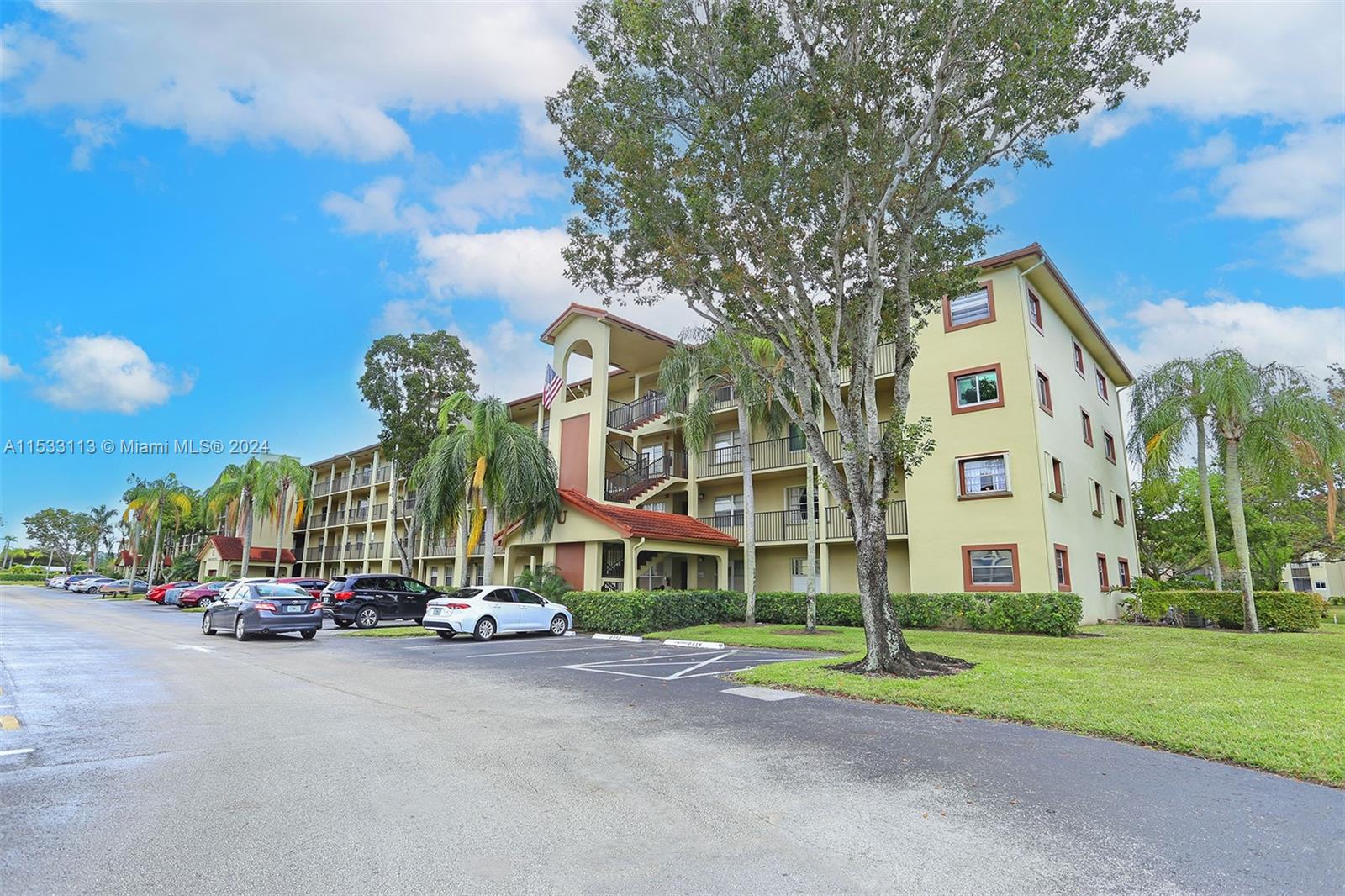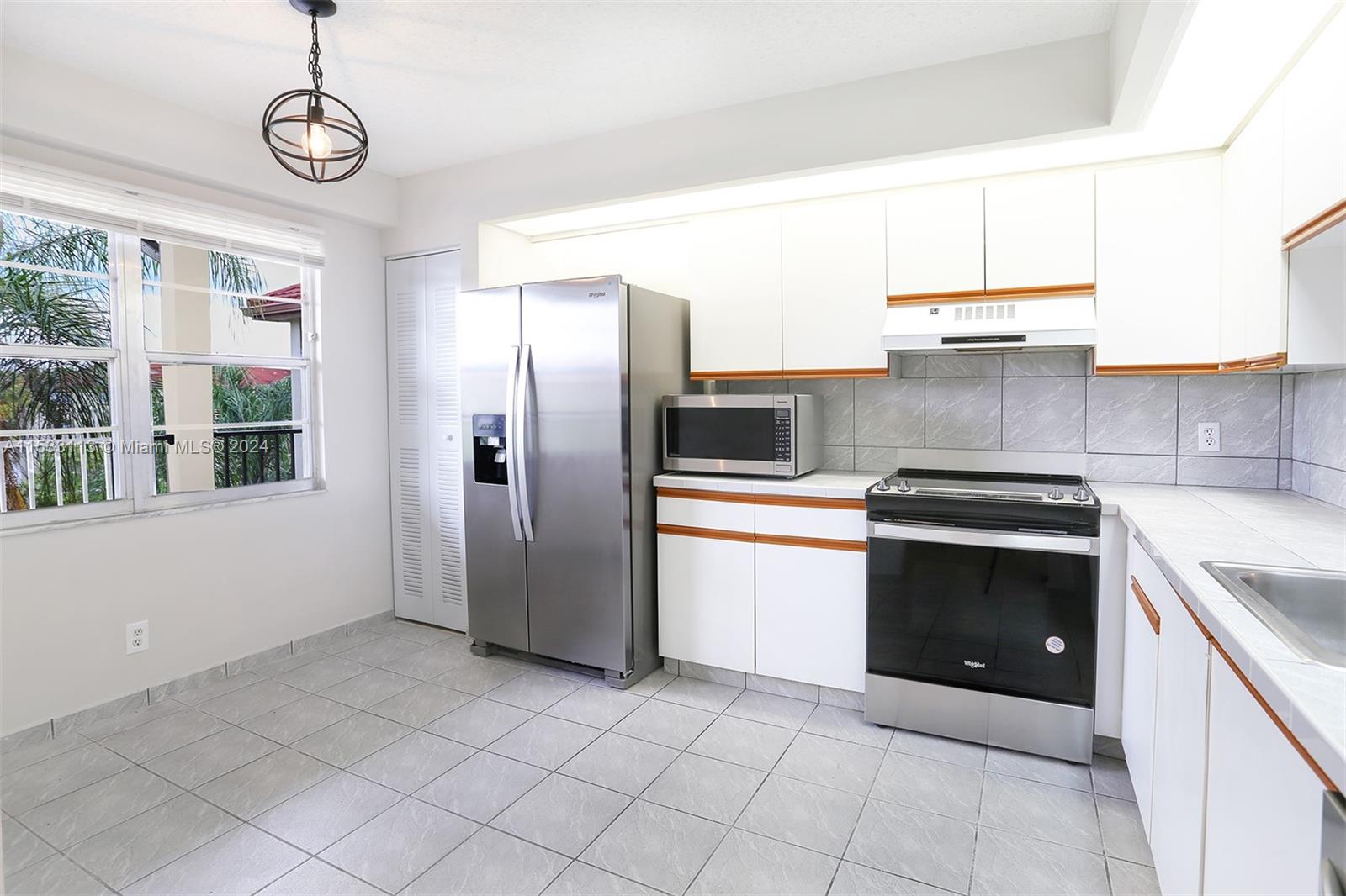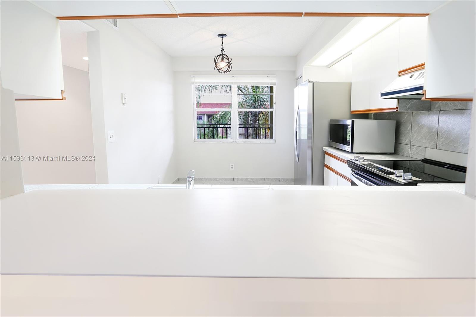 Welcome to your Beautiful freshly painted New Home on the top Floor overlooking a tranquil garden view. Featuring new Stainless Steel Kitchen appliances with an eat-in kitchen setting for your bright morning breakfast or lunch. Serve Dinner from the open kitchen view to your large dinning room area. Enjoy Quality family moments in the expansive living room with Cable and Internet included as one of the many amenities in this 55+ Century Village Community. Ceramic Tile Flooring throughout the entire condo. This condo has newer A/C unit with a Washer & Dryer inside. Large Master bedroom with walk-in closet, vanity and shower. Enjoy the quietness of solid brick walls, large screened balcony for relaxing evening sunsets with hurricane roll-away shutters. Priced to sell fast and wont last long