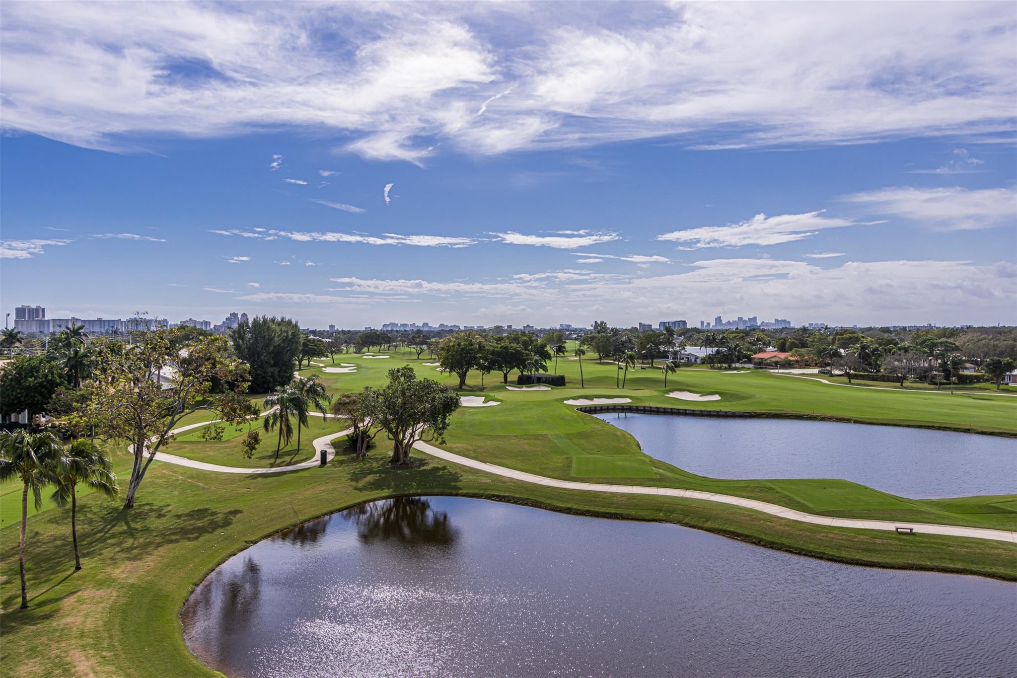 Welcome to this unique corner unit featuring spectacular views of the Coral Ridge Golf course, twin lakes and the Ft Lauderdale skyline. This home has been renovated with luxury high end materials which include hurricane impact windows, a Bosch A/C unit, an air purification system and a Rheem hot water heater. There is Italian tile in the main areas with wood laminate in the bedrooms. The kitchen has Craftmade pull out cabinets with Kohler fixtures in the kitchen as well as the updated baths. Amenities include a facial recognition automatic lobby door, one covered assigned parking space, guest parking, and an inground pool with gorgeous views of the golf course and lakes. It’s a short bike ride or walk to Lauderdale by the Sea with its oceanfront Pavilion, restaurants and shops!