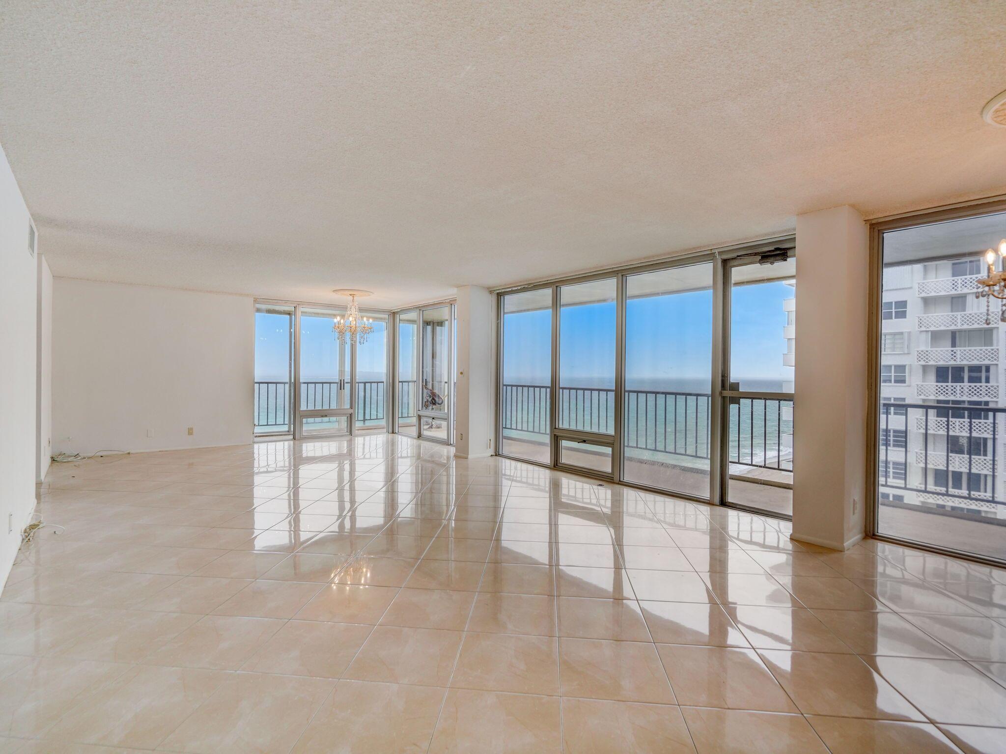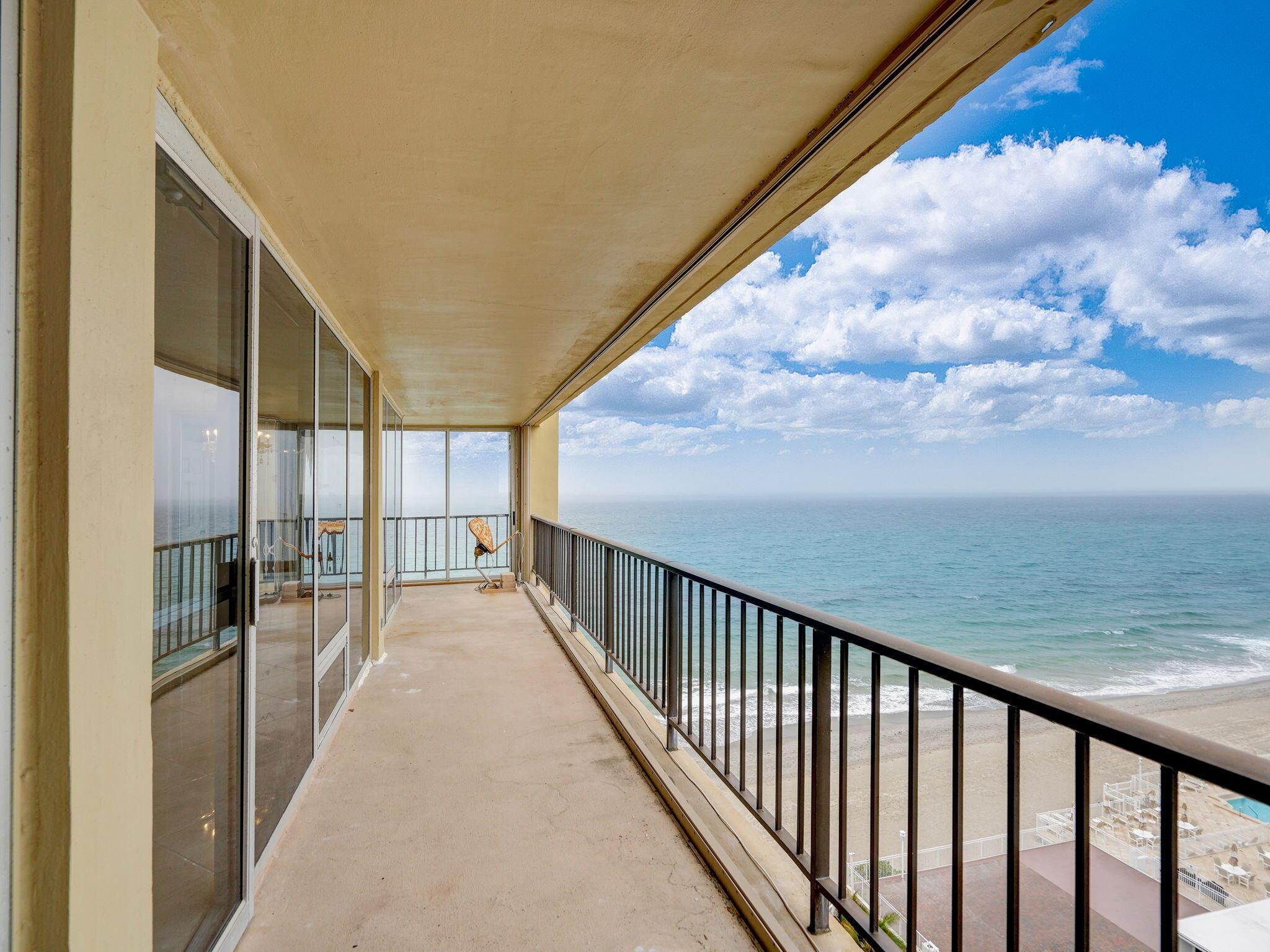 This extraordinary oceanfront unit is strategically positioned to offer one of the most coveted pieces of real estate in Boca Raton and showcases beautiful panoramic views of the Atlantic Ocean and intercoastal from every room within the condo and your wrap-around balcony. The expansive and unobstructed views from the north side showcase neighboring South Inlet State Park and the unmatched beauty of the coastal landscape with no possibility of future development. This 2250 sf unit is accessed through private 2-unit elevator lobby and is crafted with a 3-bedroom, 2 and 1/2 bathroom bright, open floor plan which fosters an atmosphere of warmth and welcome through its porcelain finishes and granite kitchen.