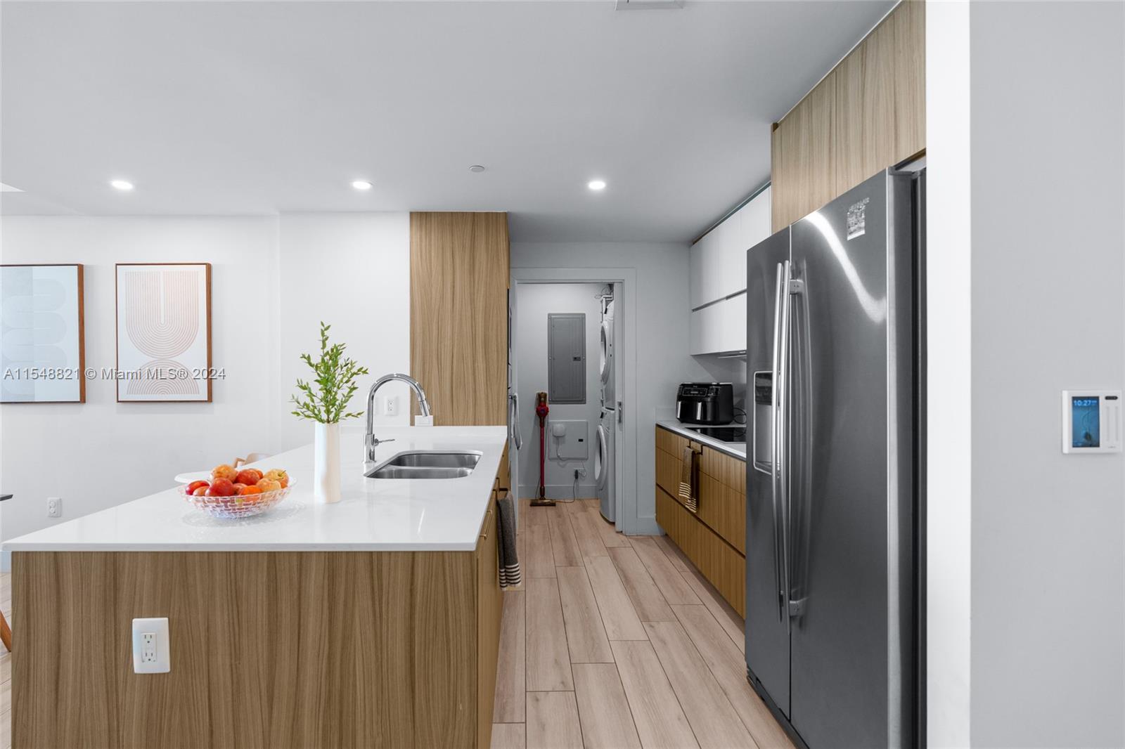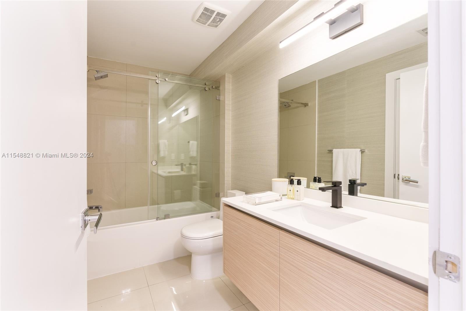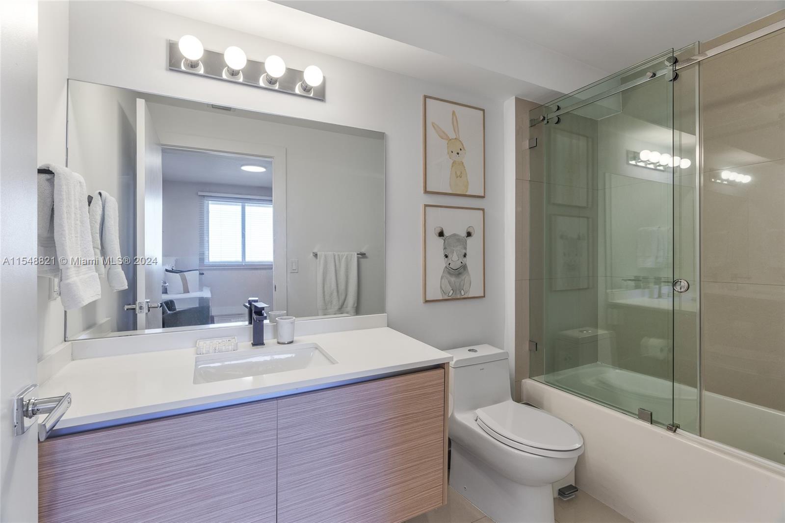 Move-in ready 3bed + 3bath apartment with direct Bay views in the heart of trendy Edgewater. This flow-through unit features a split-level floorpan with an integrated living/dining/kitchen area next to the Master suite and two additional bedrooms in the opposite side, offering privacy and silence, making it ideal for kids or a home office. All bedrooms have built-out closets and en-suite bathrooms. Additional upgrades include porcelain tile floors, designer wallpaper, custom-closets and two deeded parking spots. About Bay House: Built in 2015, Bay House is a low-density high-end building filled with amenities, including: an expansive pool deck with pool and hot tub, a business center, a fitness center, 24-hour valet parking, 24-hour security, a children’s playroom, and pool club room.