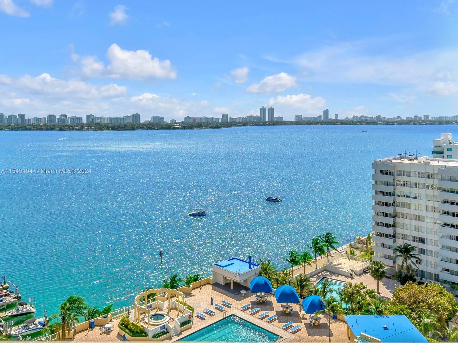 Luxurious 2 bedroom and 2 bathroom condominium. This condo has marble flooring and marble counter tops. With entrances to the balcony from living room and each room. Upon stepping outside, you will see the luxurious Miami Skyline and Biscayne Bay views. It comes with two parking spaces, and pool. At ground level there are restaurants, convenience store, barber, and shops. Also located next to supermarket and great waterfront restaurants. Yearly rentals are allowed, this might have changed to six months. The connection for washer and dryer are provided in a closet located in the master bedroom.
