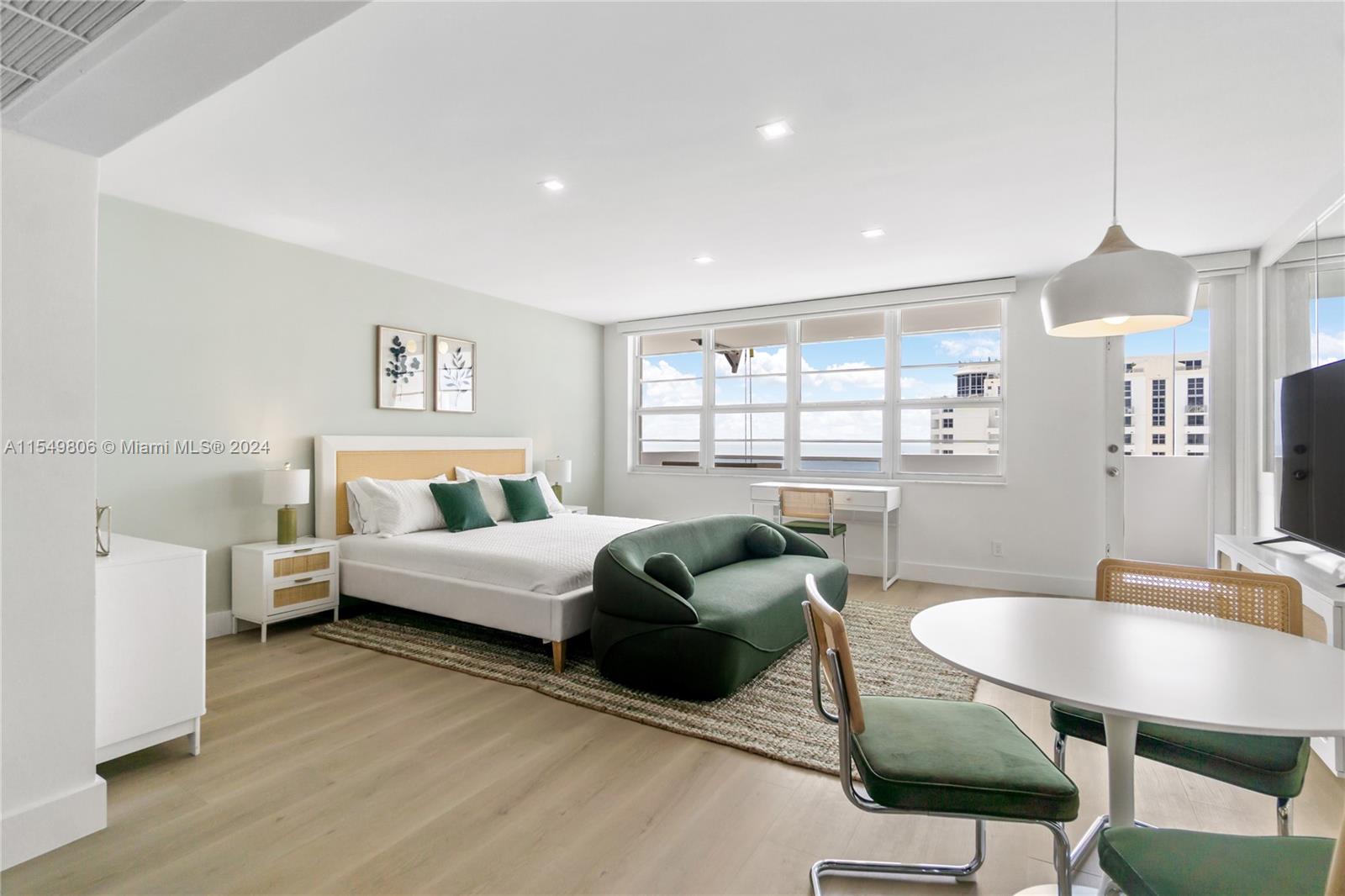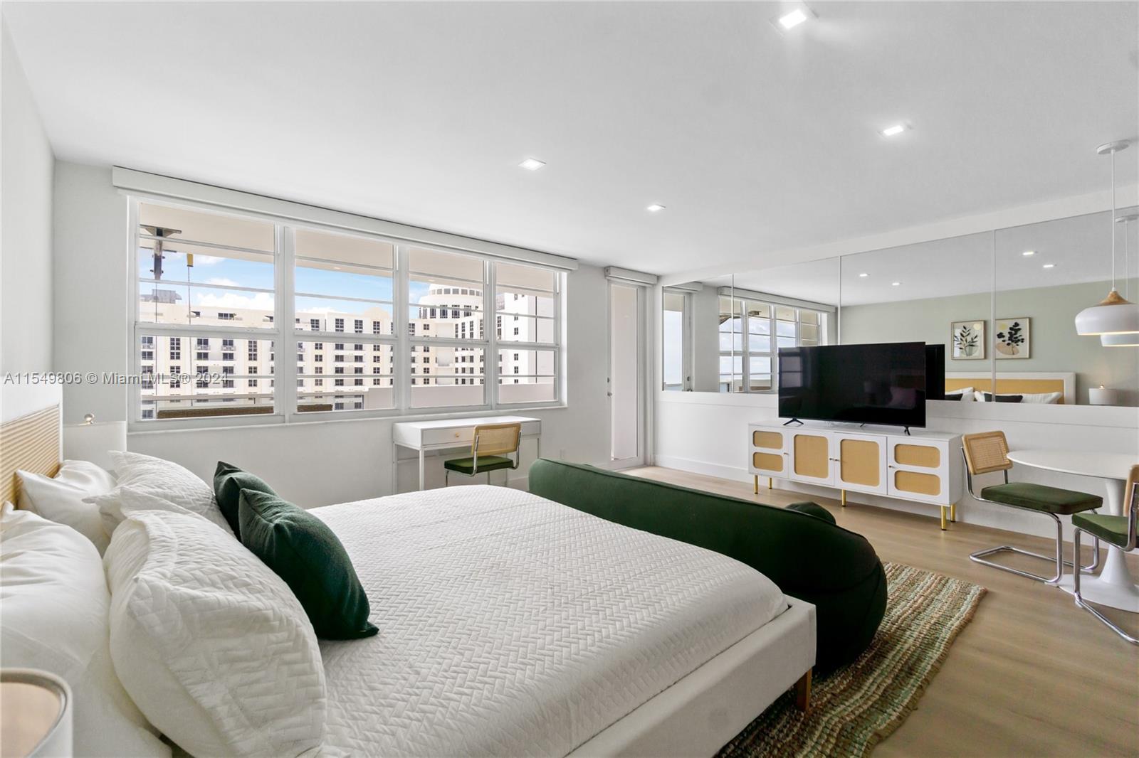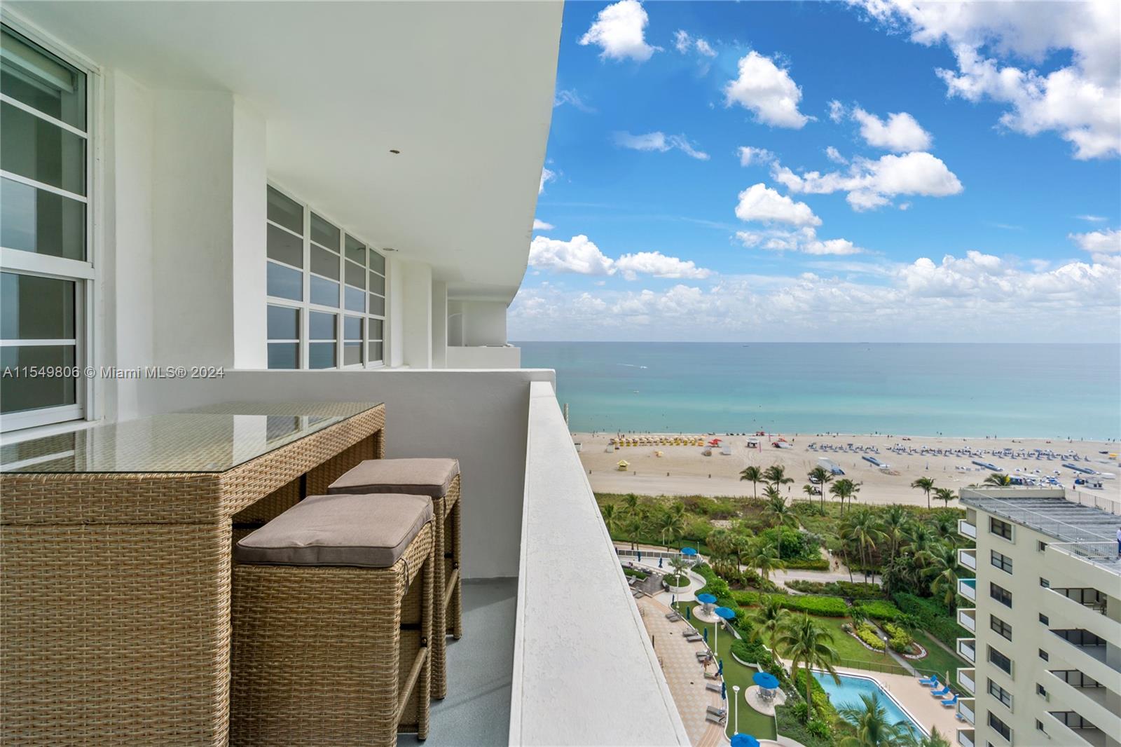 ONE OF A KIND just fully renovated pied-a-terre with oversize balcony and stunning direct ocean view! 16th floor and south exposure make the apartment full of natural light. It features vinyl floor all over, glass shower, recess lights, Samsung appliances, natural stone kitchen counter-backsplash, walk-in closet, electric sheers and blinds. The studio is fully furnished and decorated using natural cane as leitmotif to create an harmonic environment to relax and enjoy the gorgeous ocean view. The building offers 24hr security, valet parking, gym, heated pool. No better location in SoBe, walking distance to every place of interest! The building is under construction to obtain the certification and redo the hallways. Special ass starting on 04/01 has been paid in full (tot of $27,500.00).