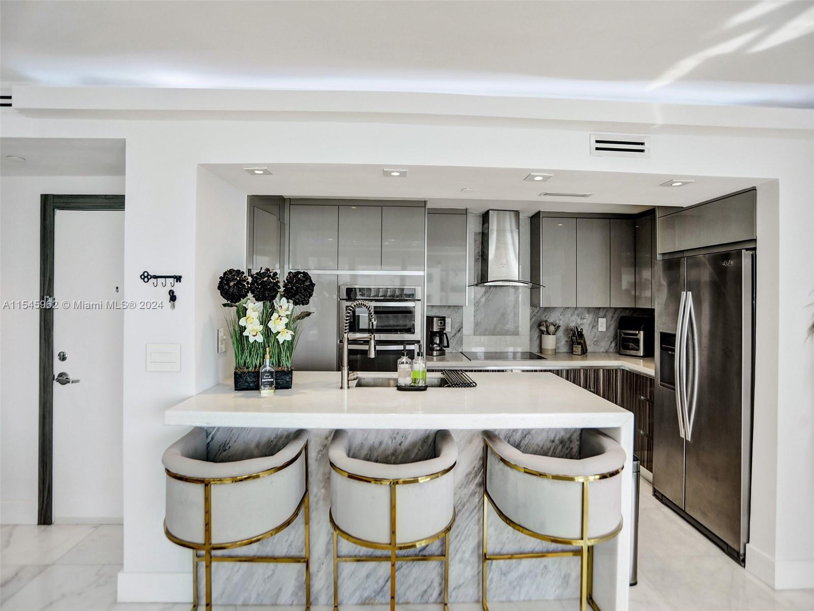 This stunning home is a rare gem and won't remain available long! It can be sold furnished or unfurnished and boasts a spectacular bay view enhanced by modern contemporary decor. It is ideal for singles, families, and investors alike (Available for immediate short-term rentals). It also features a remodeled kitchen w/Quartz countertop, custom cabinetry, marble floors, custom lighting & spacious closets (Walk-in Closet in the Primary Bedroom). Both bathrooms have wall-to-wall marble tile flooring & Quartz countertops. The Community has a security guard, a large swimming pool, and a newly renovated gym. The location is unbeatable, just minutes from the beach, shopping, and restaurants. Commuting is a breeze, with downtown Miami, South Beach, and Bal Harbour all just 15 minutes away.
