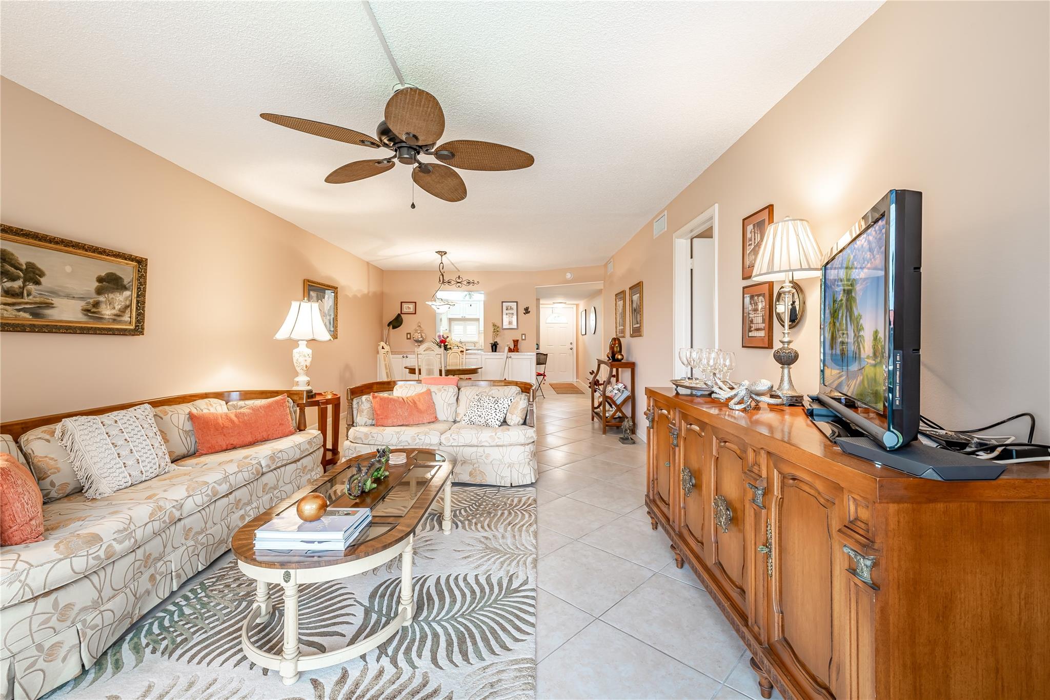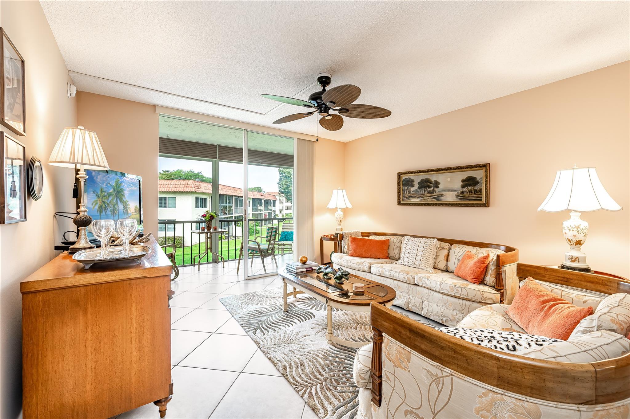 MOVE-IN READY! (near Turnkey) 2BR/2BA w/ lush Par 3, 10th Green view. 22" neutral porcelain tile on an angle throughout. Beautiful upgraded kitchen w/ high ceilings, crown molding; Plantation shutters add to the neutral, warm painted walls. Upgraded kitchen w/ high ceiling and extra counters & storage. Granite vanities in bathrooms. Pool & BBQ across the street. Recreation Lease PAID IN FULL! FREE golf (except cart fees) on two 18 hole courses (PGA & Par3); Amenities include Restaurant, Billiard Room, Bbq/Picnic Area, Clubhouse, Courtesy Bus, Exercise Room, Heated Pool, Library, Putting Green, Sauna, Shuffleboard, Tennis, Pickle Ball, Vehicle Wash Area, Electric Car Charging Station. Close to shopping, dining & highways. 15 min. to beach. Association says 55+ age required; A REAL BEAUTY!