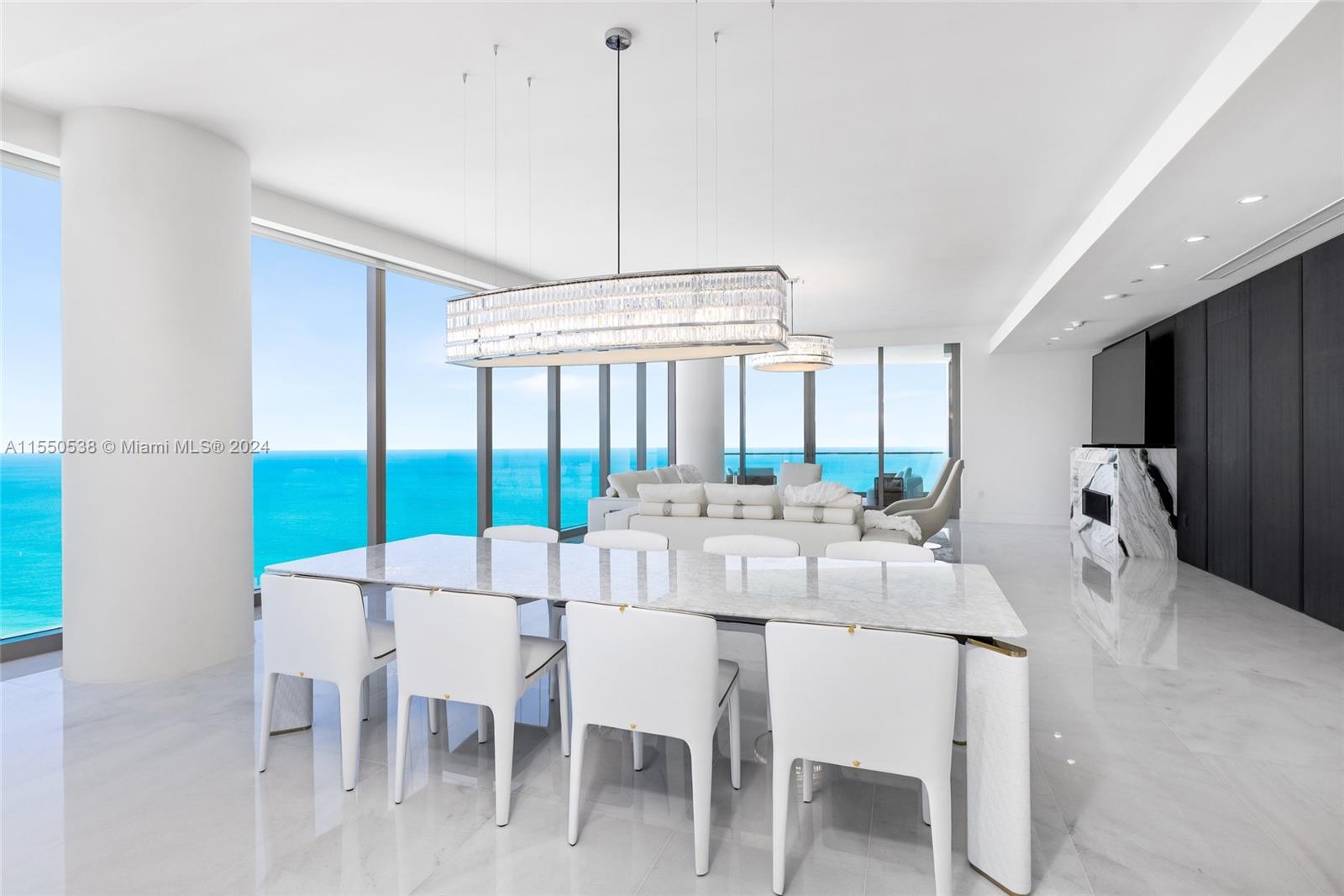 Welcome to this 44th Floor 4-bedroom 5.5-balth flow-through residence with spectacular sunrise and sunset views in the ultra-luxurious and highly sought-after Estates at Acqualina. A 14-foot long island, a gas La Cornue range, a pizza oven, and a steam oven grace the kitchen. Elegant touches like Onyx stone throughout the master bath and marble floors in every room of the home. The back terrace comes with an outdoor kitchen and sauna. Experience 5-star resort-like amenities, including pools, spa and fitness center, restaurant, and more. Fully furnished by Luxury Living: Fendi & Bentley furniture & rugs.