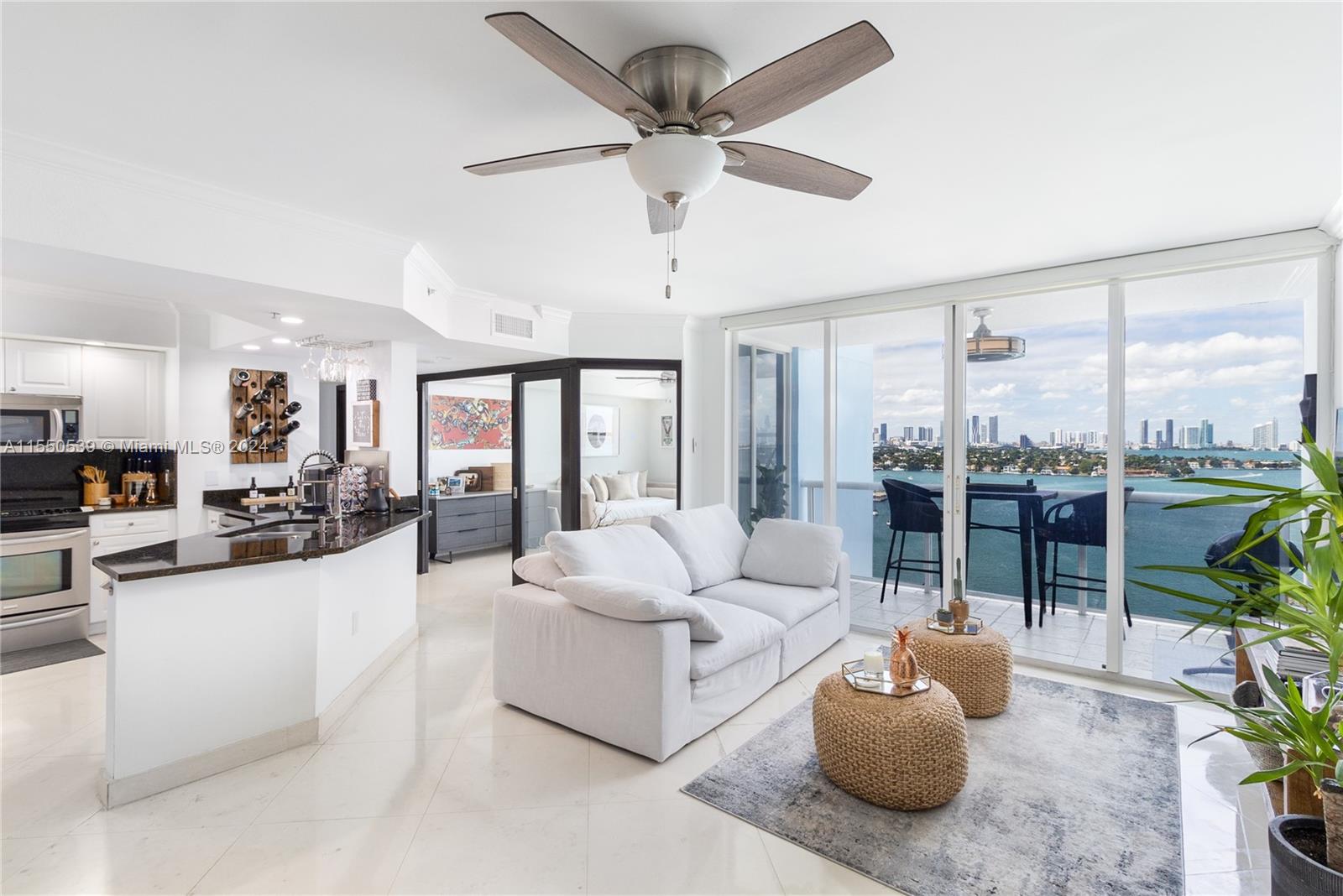 Sunset Lovers - your marina home is ready for you! Biscayne Bay water views from every angle. This high-floor, direct bay retreat is the largest two bedroom in the development's preferred West (marina) side. Large chef's kitchen, and glass interior walls to capture the views. Second bedroom encased in glass walls for the ultimate home office. Large closets + built-ins keep your organized. Outside your doorman lobby, walk to the best restaurants, cafes, art galleries, private marina, bay walk, upscale grocers, The Standard and fitness options for the weekend warrior. 7th floor resort deck pampers you with a heated salt-water pool, hot tub, sauna, day beds and professional gym. Garage + available valet parking to store your ride. Ask your on-site specialist about the secure finances too!