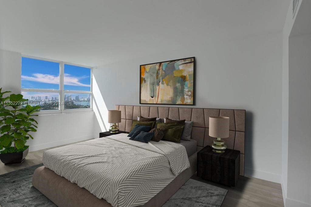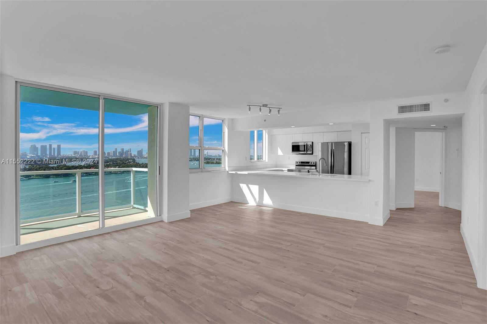 Best line of the building. Enjoy breathtaking views of Biscayne Bay, Star/Palm Island and Miami downtown skyline. This is a fully remodeled 2/2 unit with wrap around balcony, beautiful ceramic tiles throughout, quartz kitchen counter tops, stainless steel appliances, soft close drawers and cabinetry, fully renovated bathrooms. Resort style amenities with 2 pools, tennis & basketball courts, gym, sauna, spa, BBQ area, convenience store and available boat dock. Located on the bay across from the new 3-acre public park, walking distance to trendy restaurants, cafe, supermarket and just a short stroll to the beach.